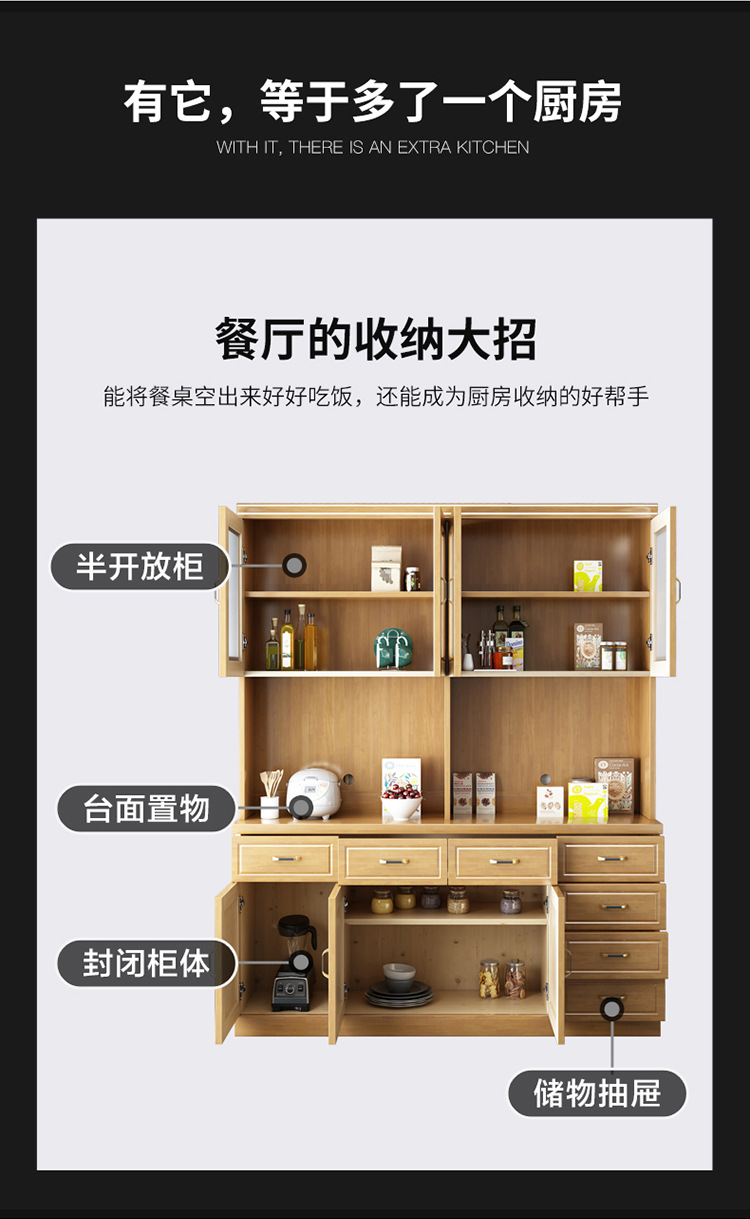 원목 식탁 옆장 일체형 벽걸이형 중국식 조합 유리 서랍장 수납장 넓고 좁은 주방 수납장