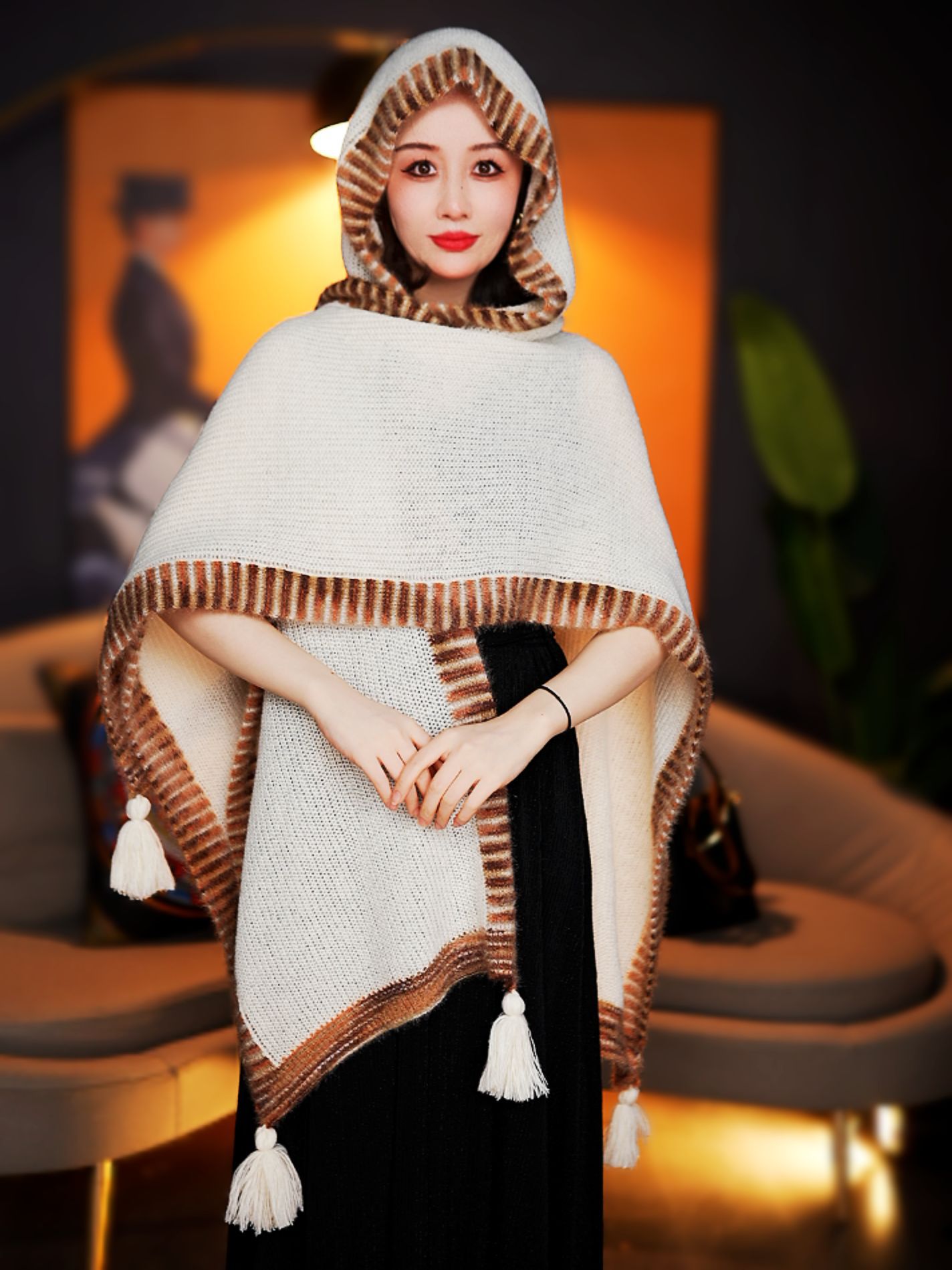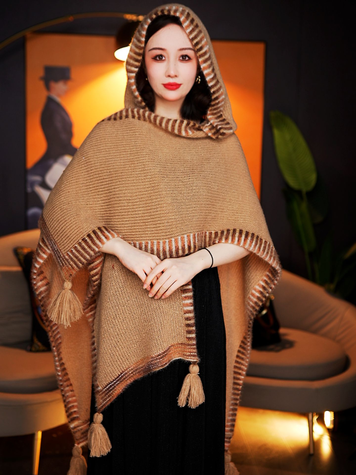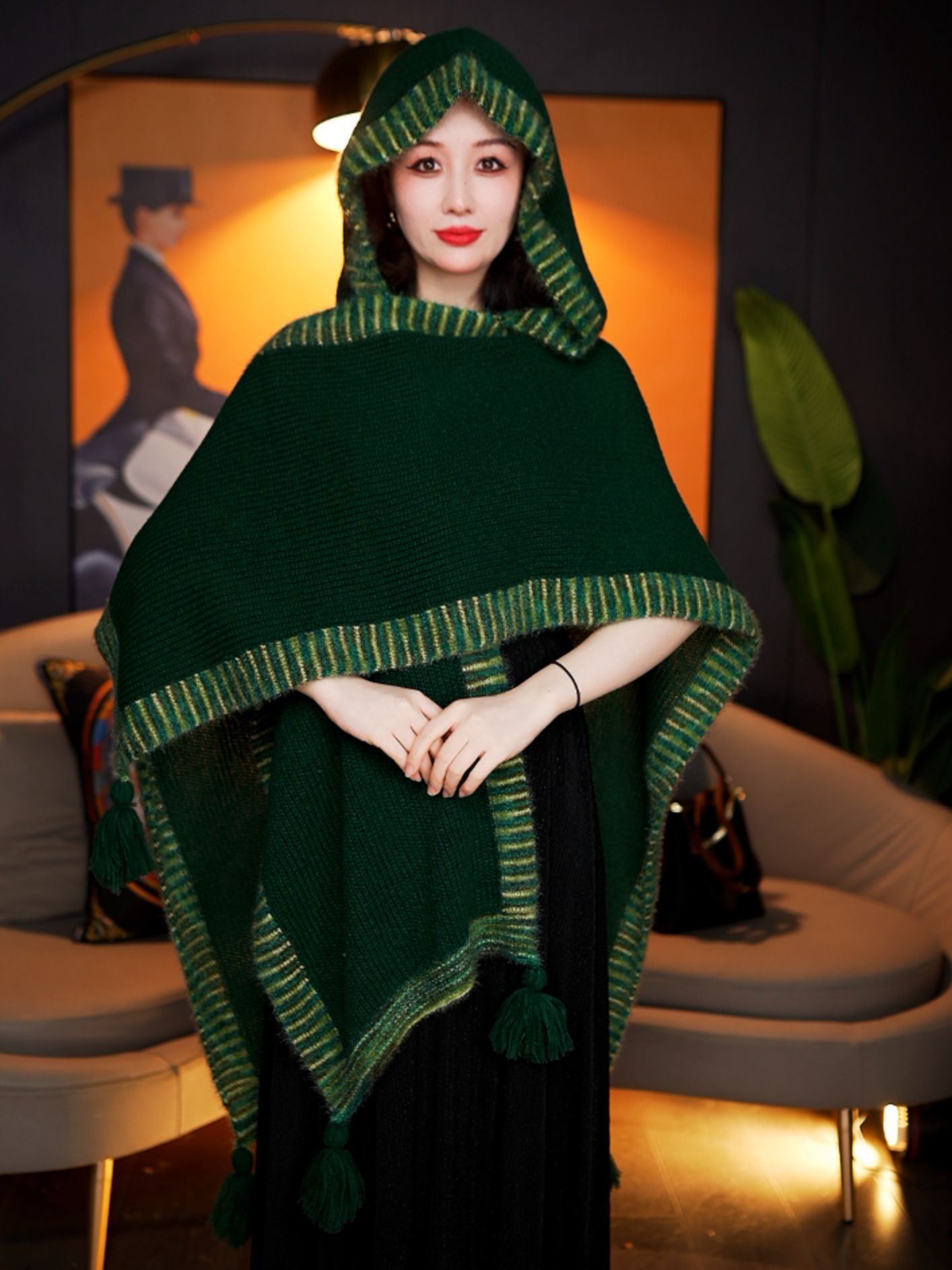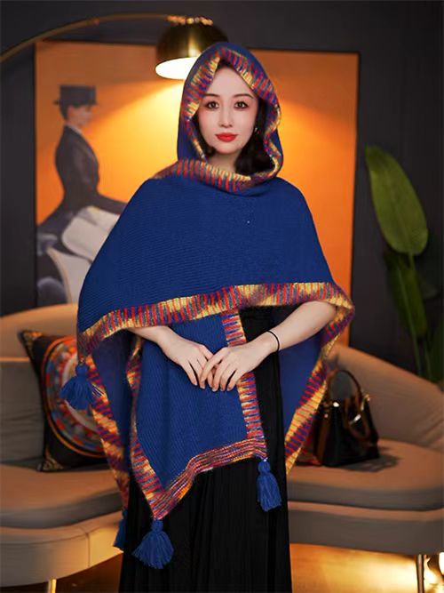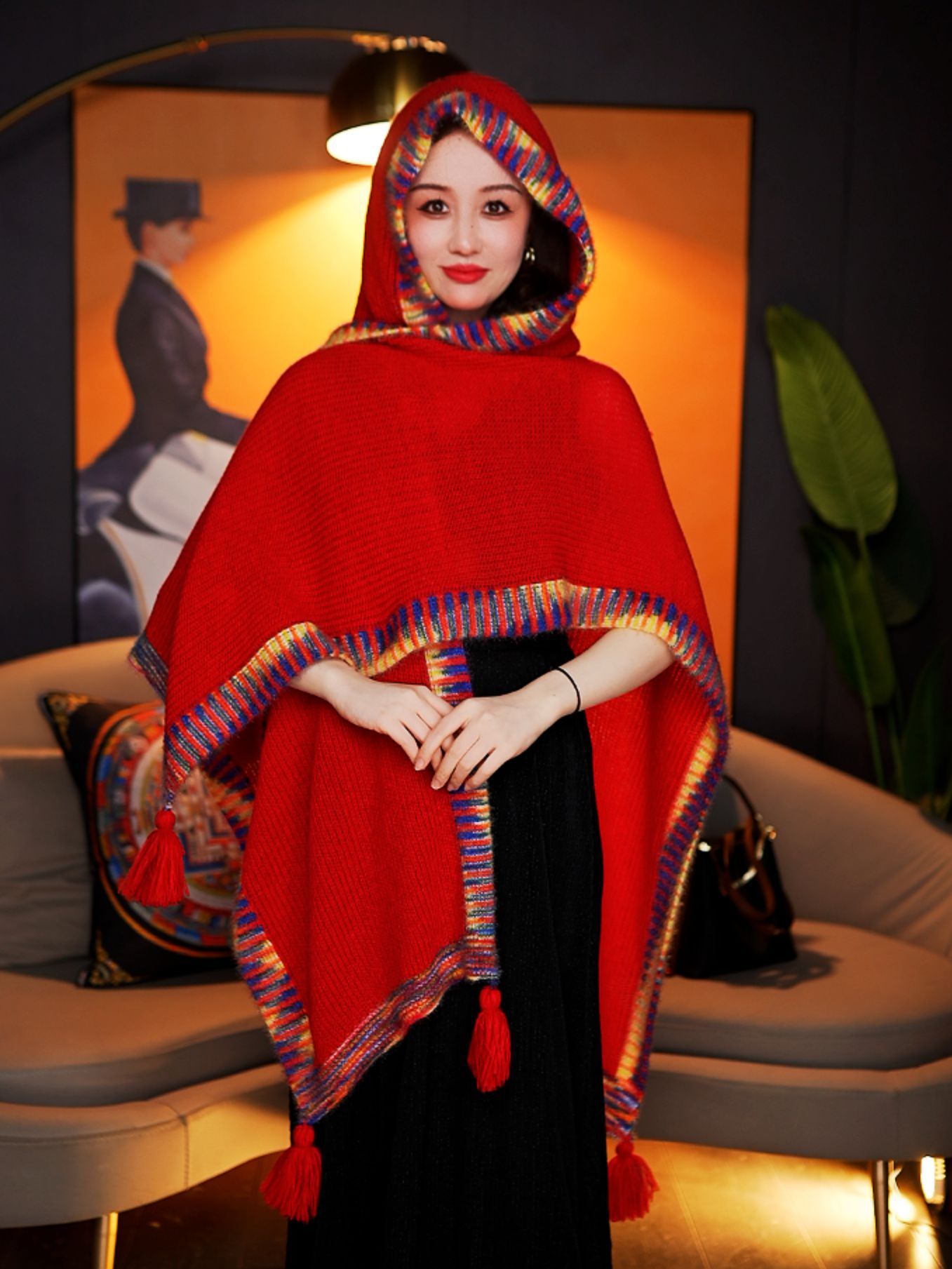 붉은 민족 스타일의 가을과 겨울 목도리 망토 여행 특대 망토 서부 사천 윈난 여행 캐시미어 같은 따뜻한 착용스토어 가기