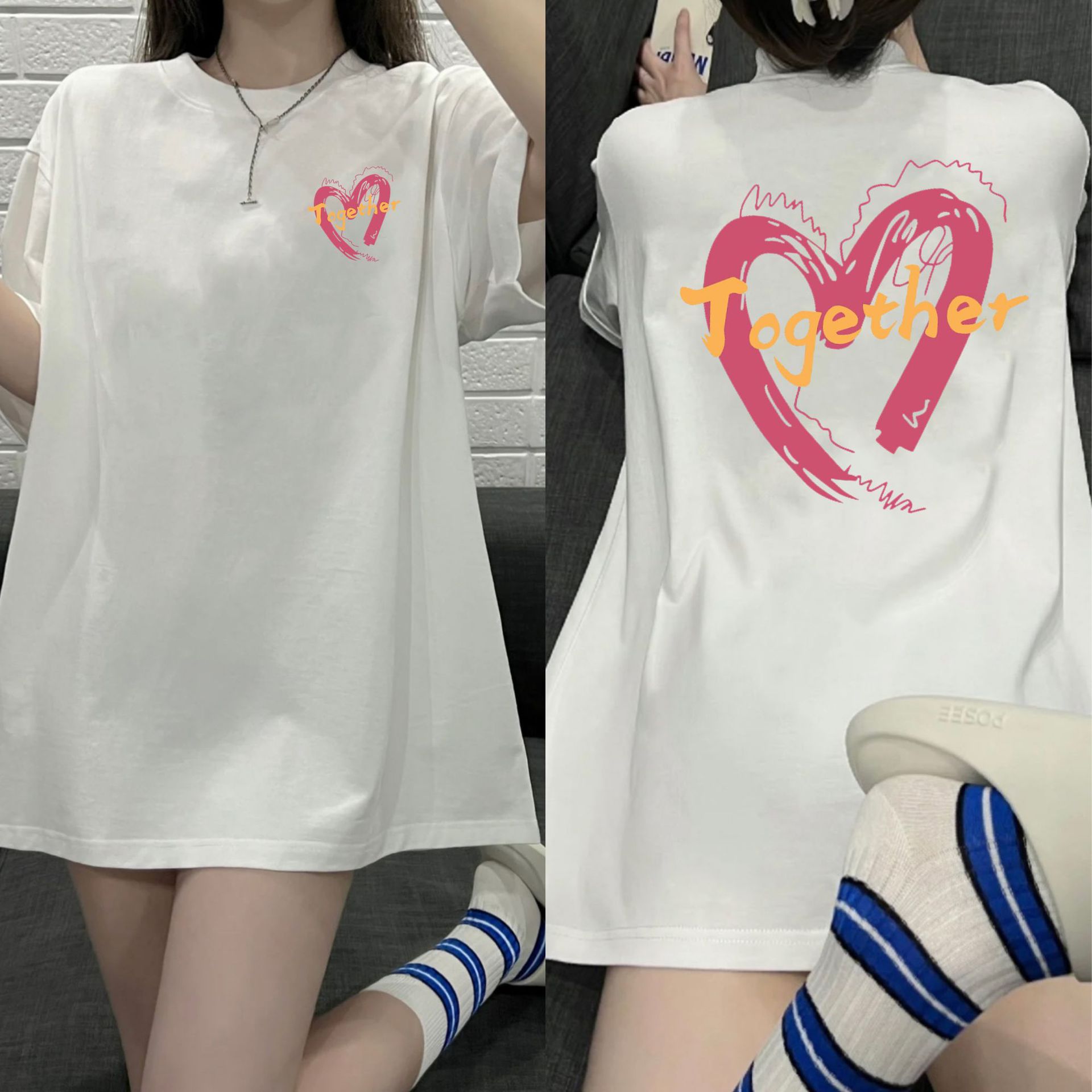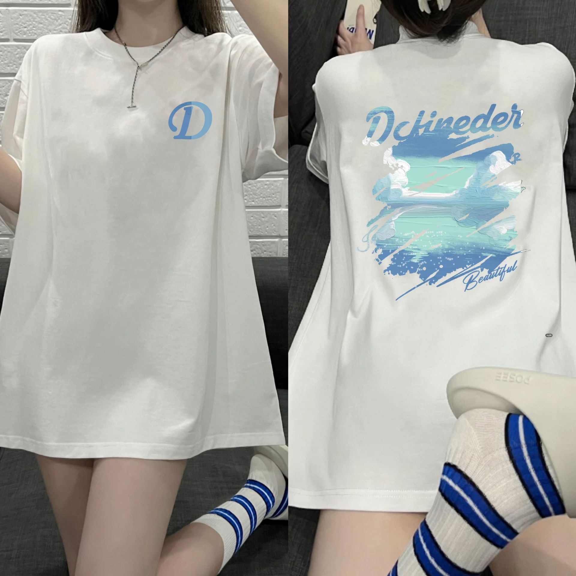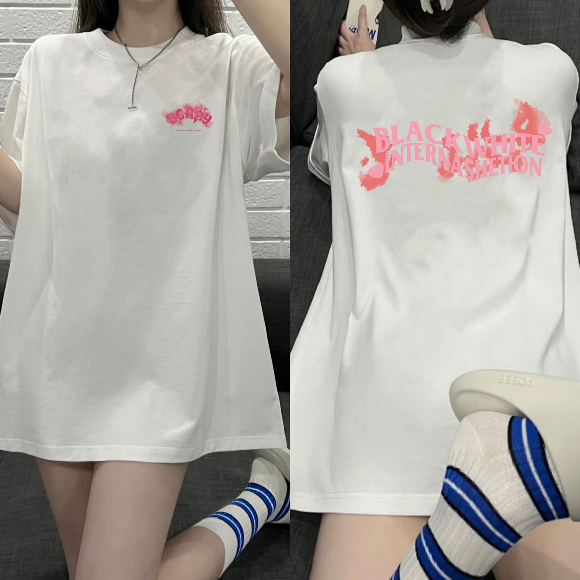 Tiktok 인기있는 230g 헤비 여름 반팔 티셔츠 여성면 느슨한 패션 브랜드 여성의 반소매 올 매치 탑스토어 가기