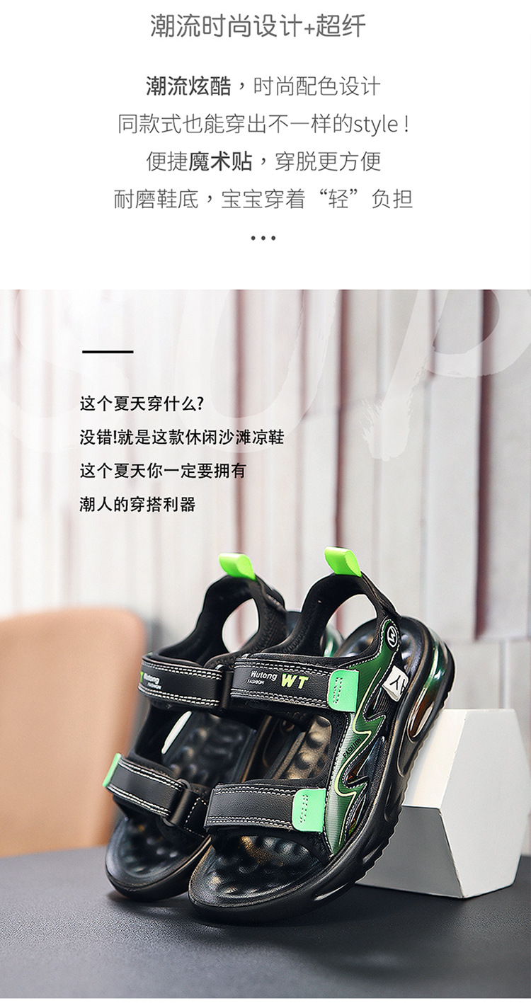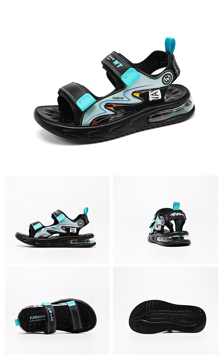 소년 샌들 2024 여름 새 초등학교 학생들 중 큰 아이들 소년 미끄럼 방지 오픈 토 에어 쿠션 어린이 비치 슈즈 라이트