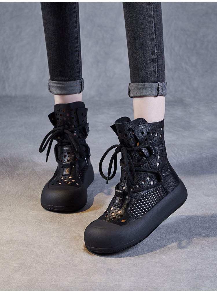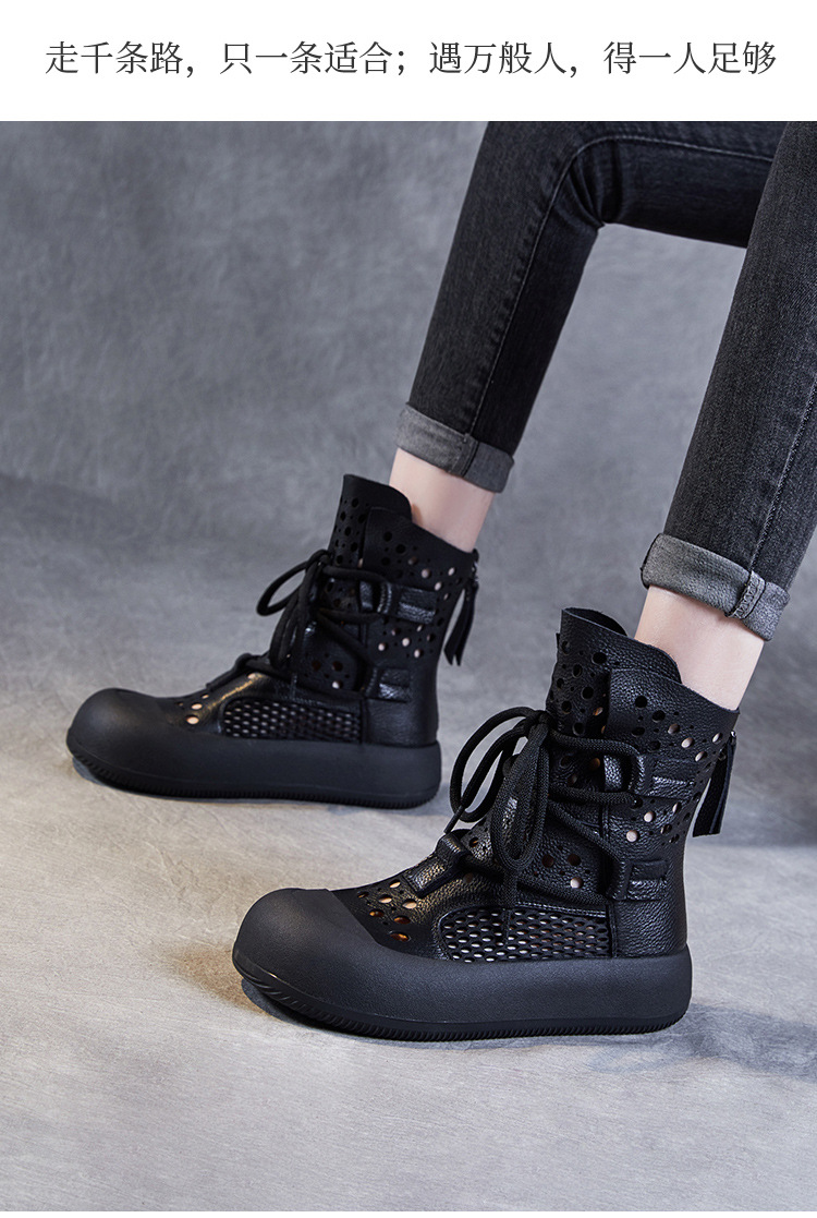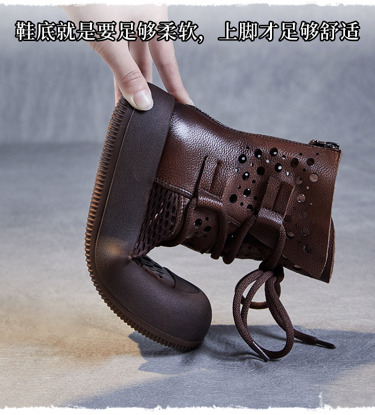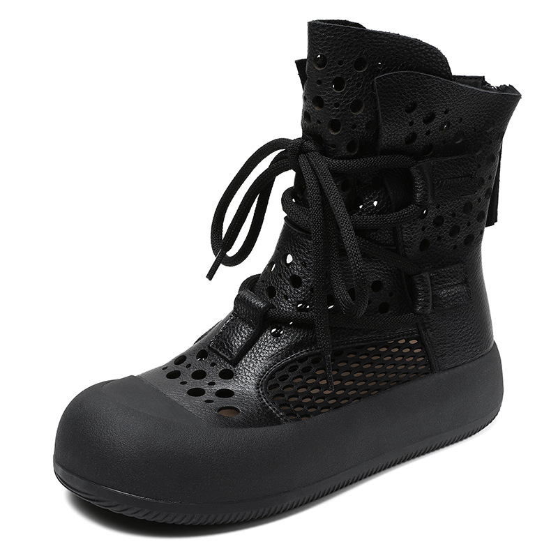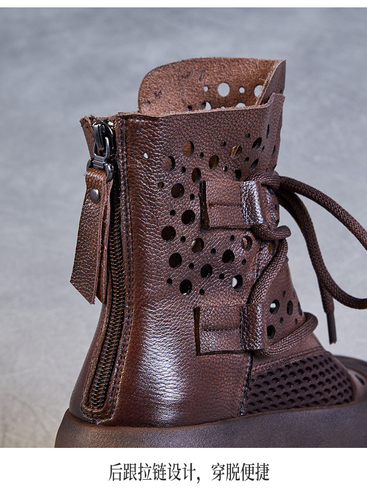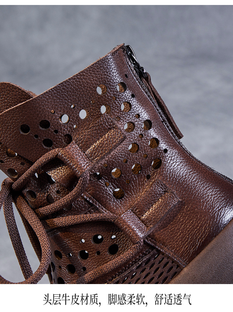 2024 봄과 여름 새로운 정품 가죽 속이 빈 마틴 부츠 여성 통기성 1 층 Cowhide 샌들 두꺼운 바닥 캐주얼 홀 짧은 부츠