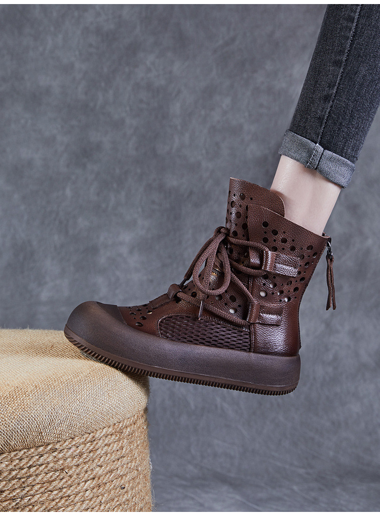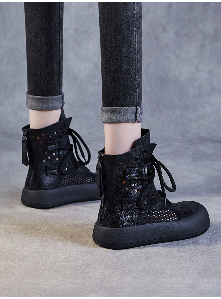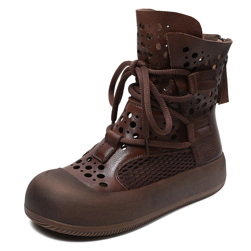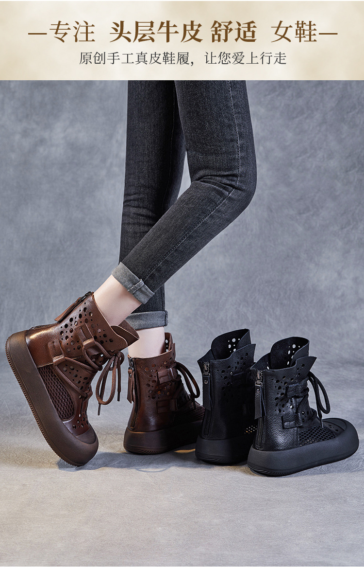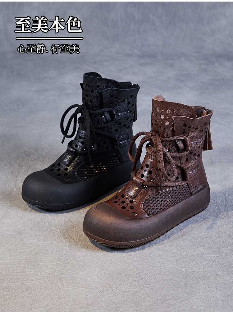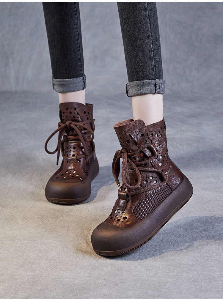 2024 봄과 여름 새로운 정품 가죽 속이 빈 마틴 부츠 여성 통기성 1 층 Cowhide 샌들 두꺼운 바닥 캐주얼 홀 짧은 부츠