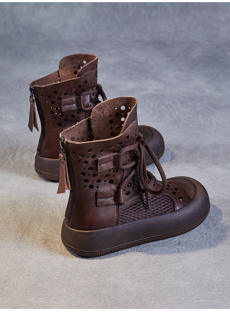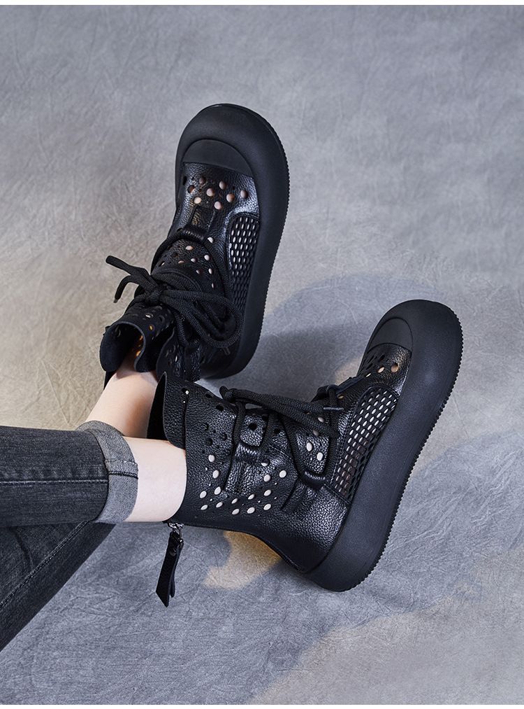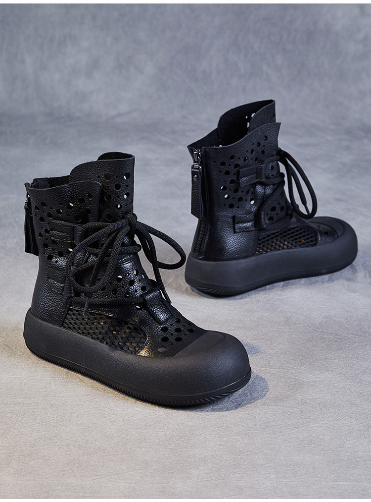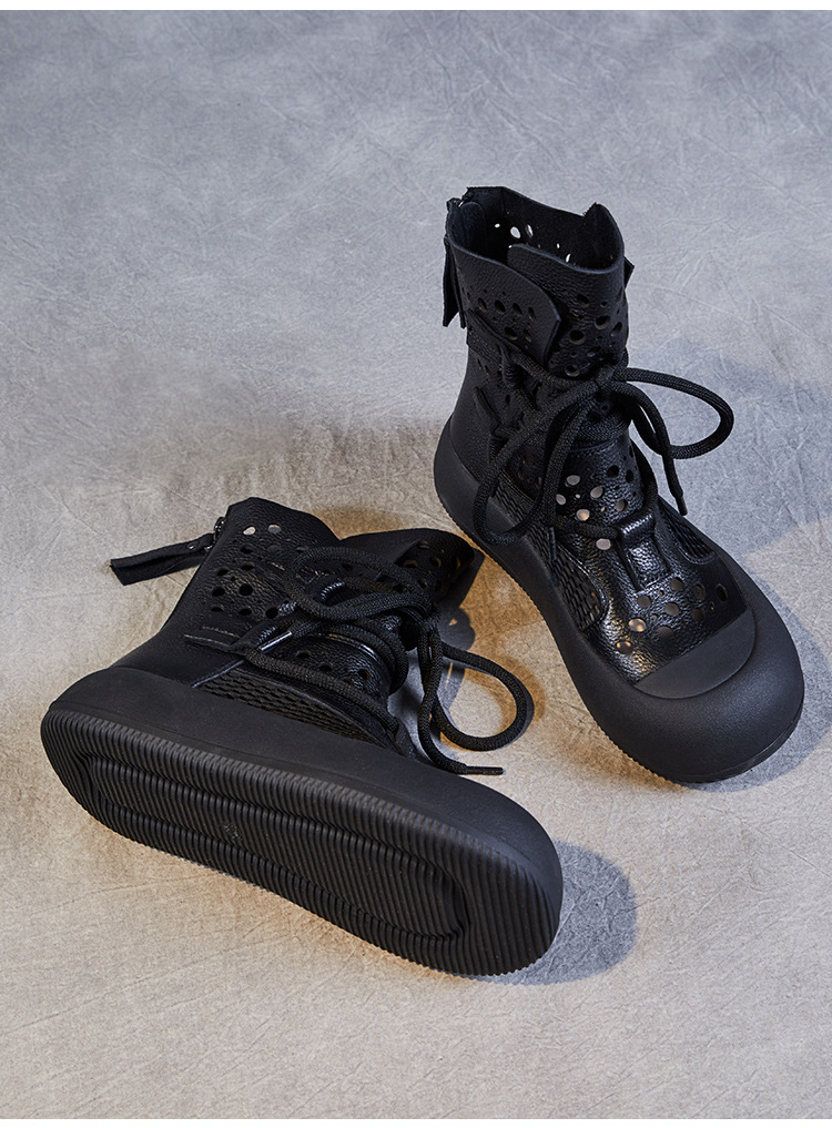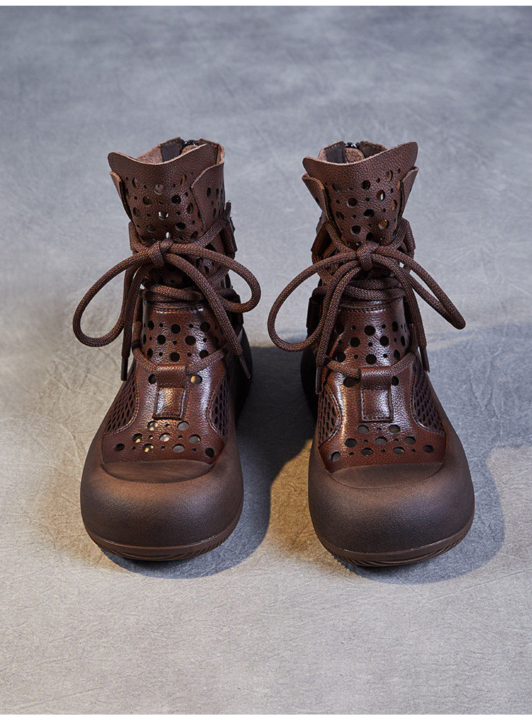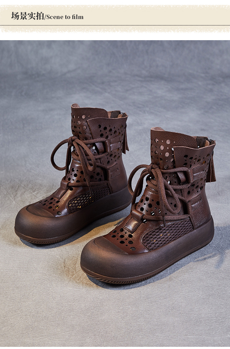 2024 봄과 여름 새로운 정품 가죽 속이 빈 마틴 부츠 여성 통기성 1 층 Cowhide 샌들 두꺼운 바닥 캐주얼 홀 짧은 부츠