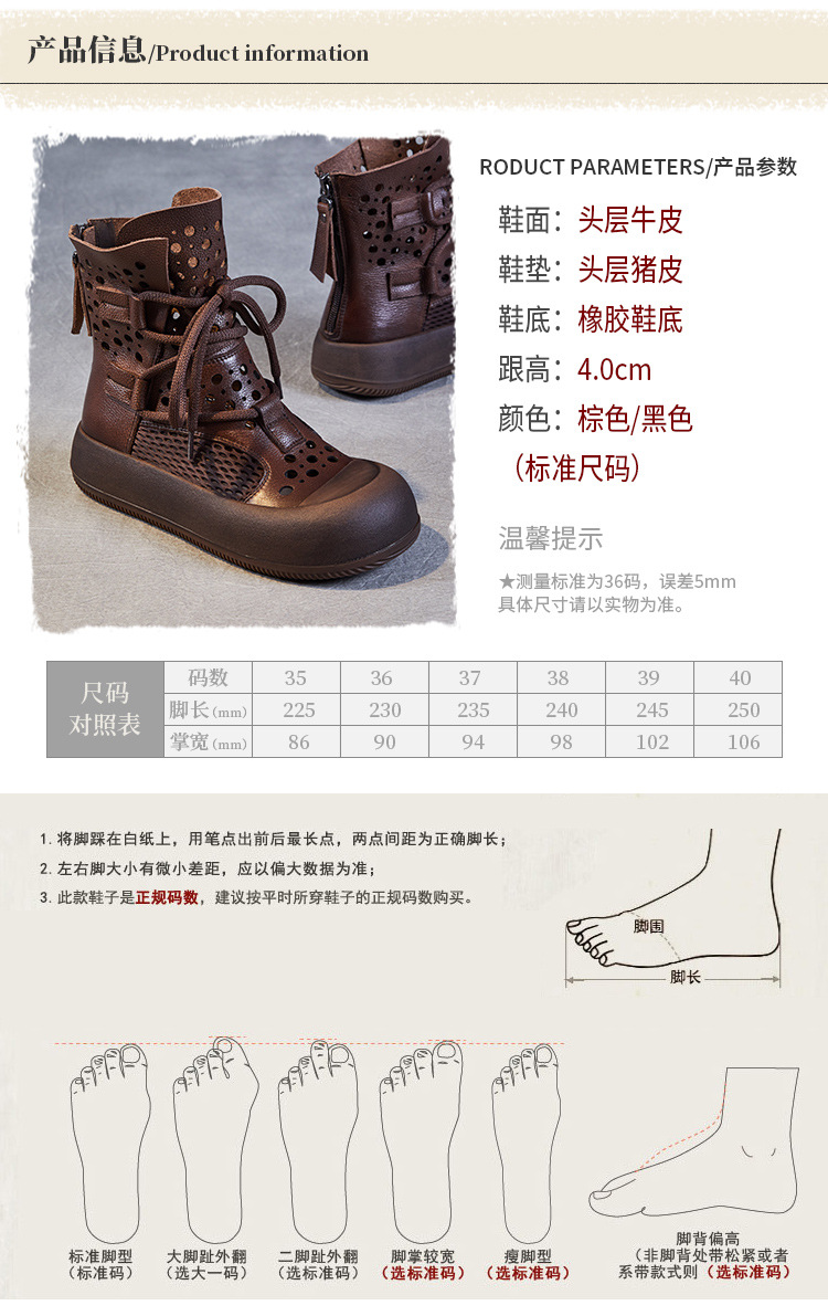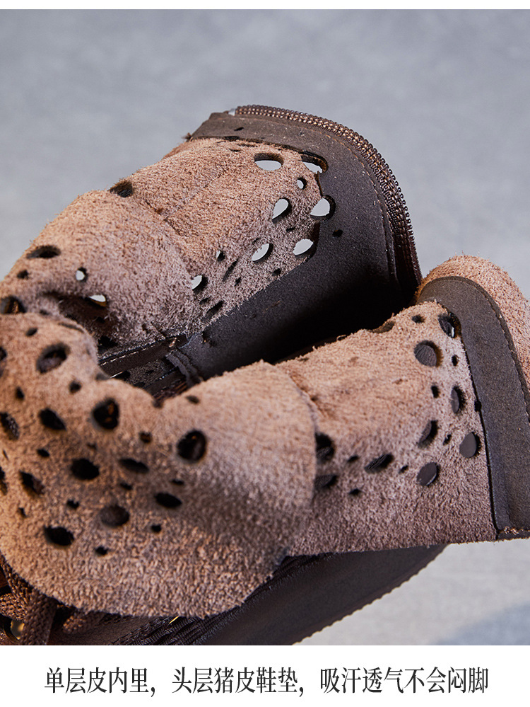 2024 봄과 여름 새로운 정품 가죽 속이 빈 마틴 부츠 여성 통기성 1 층 Cowhide 샌들 두꺼운 바닥 캐주얼 홀 짧은 부츠스토어 가기