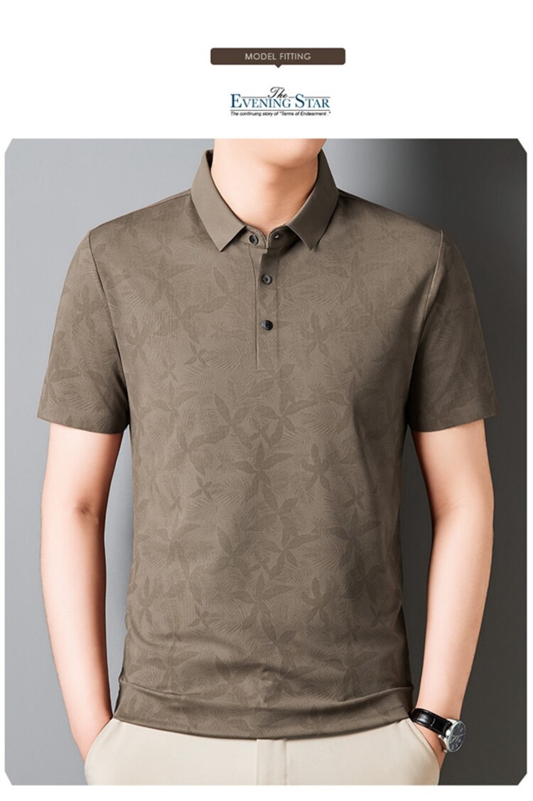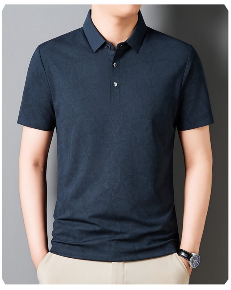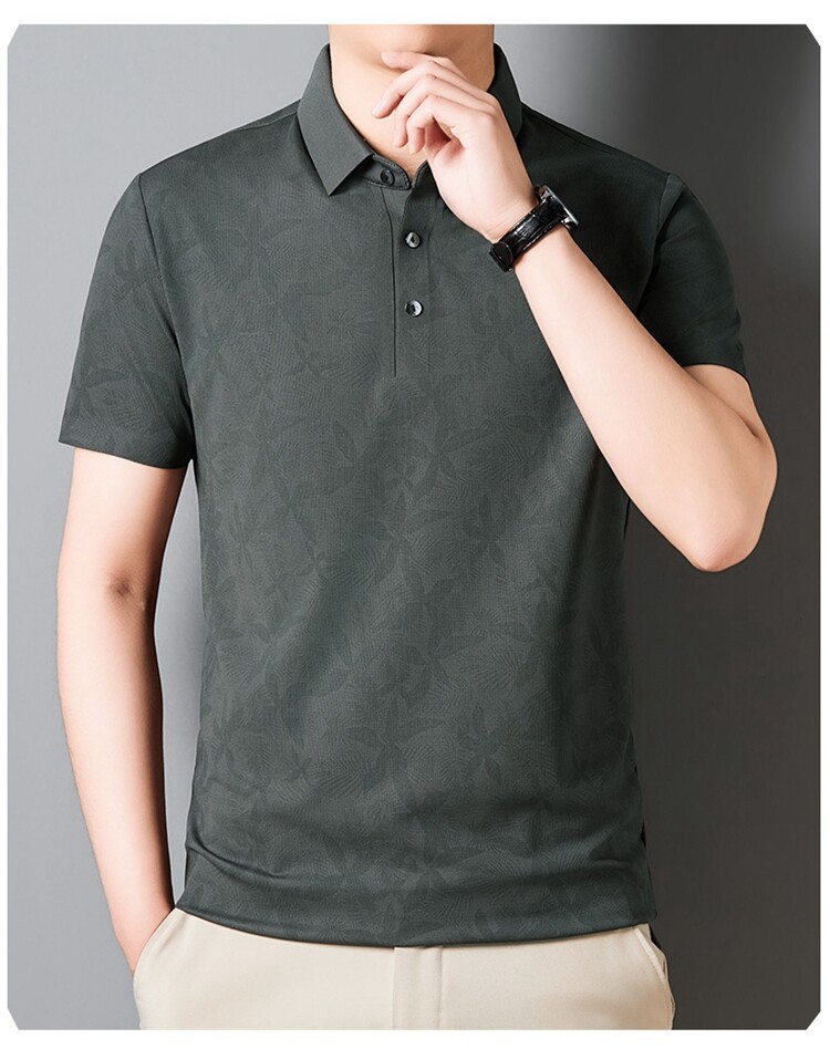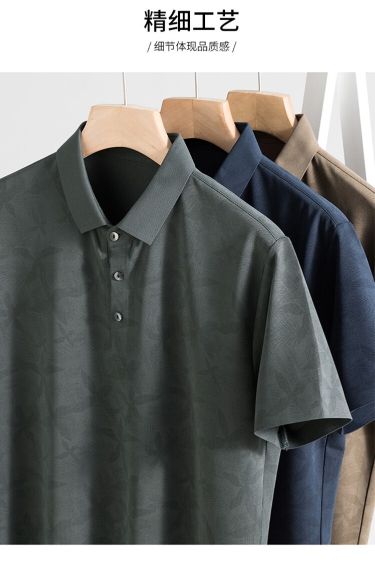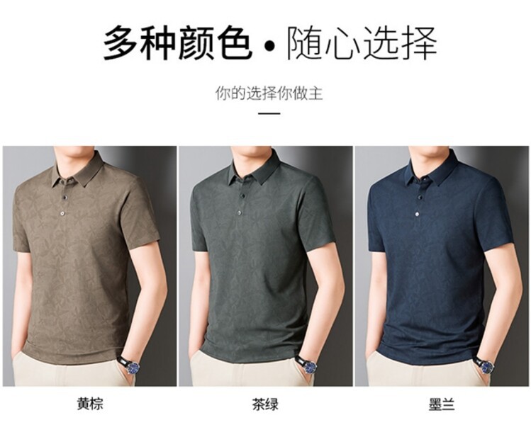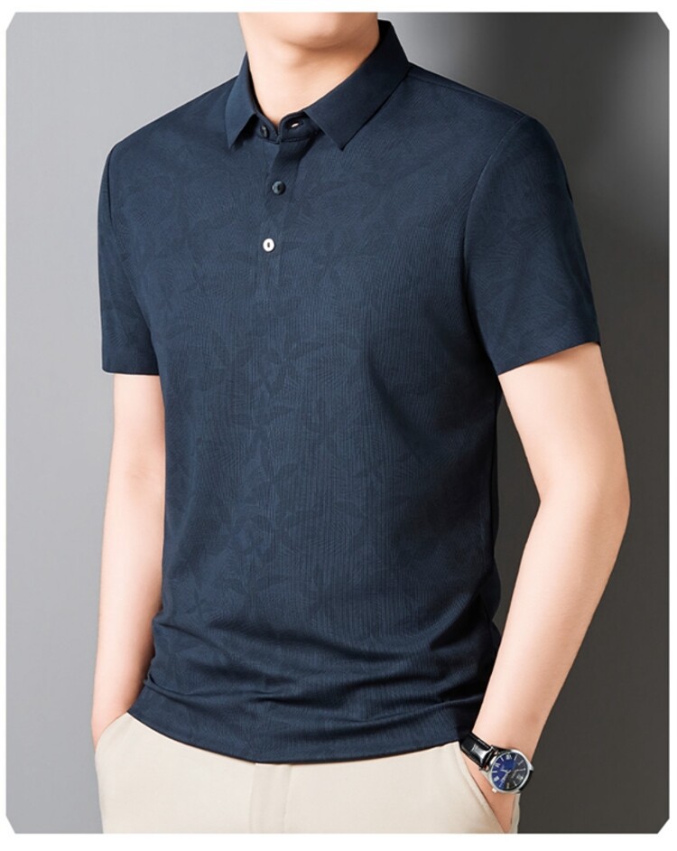 젊고 중년 자카드 반팔 티셔츠 남성용 2024 여름 얇은 트렌디 옷깃 탑 캐주얼 반소매 폴로 셔츠