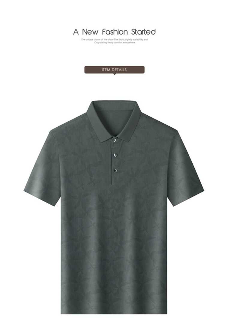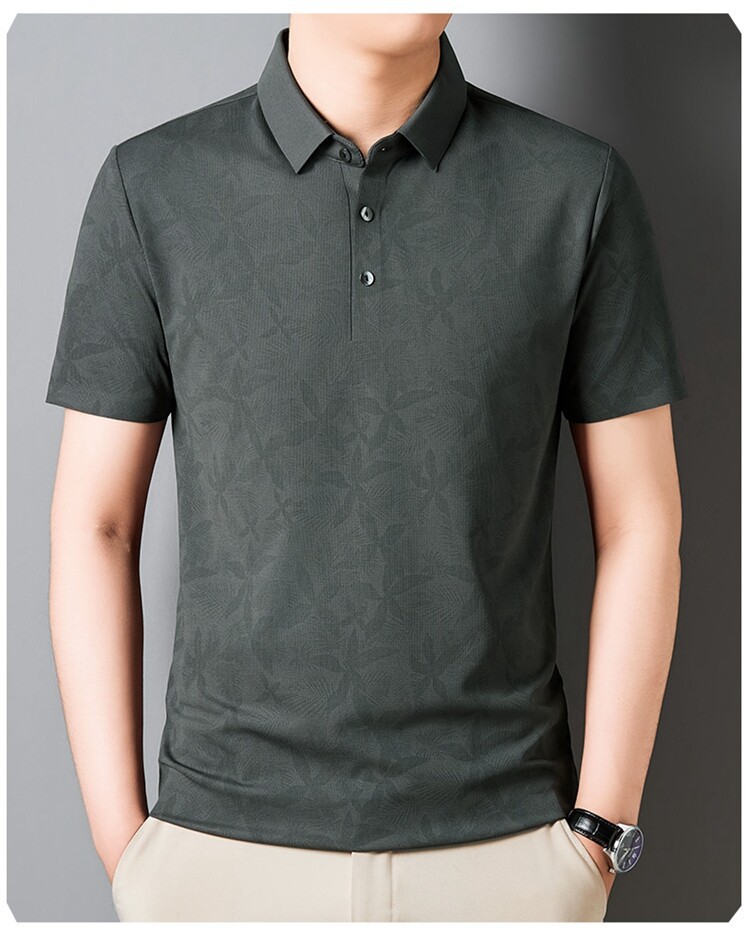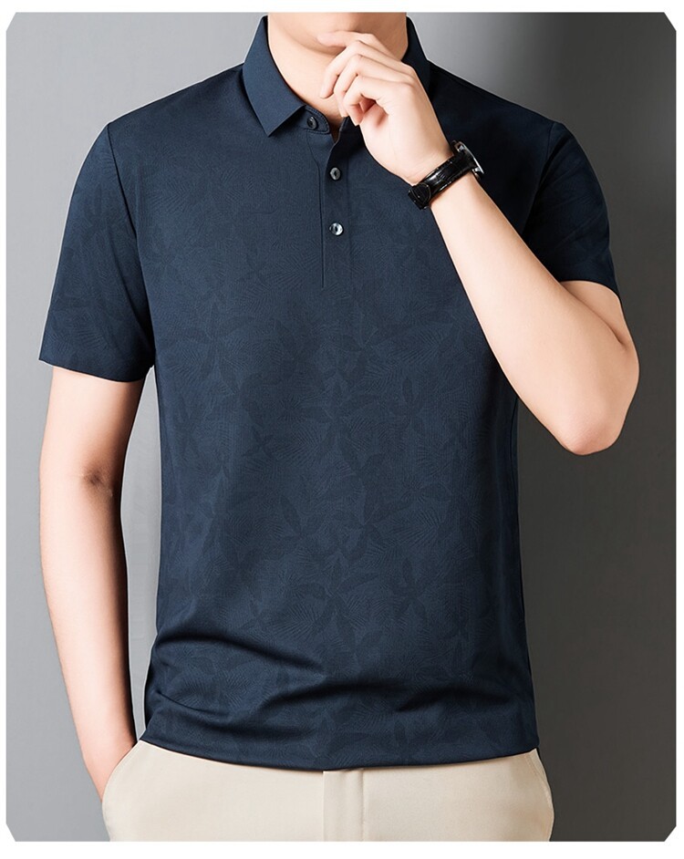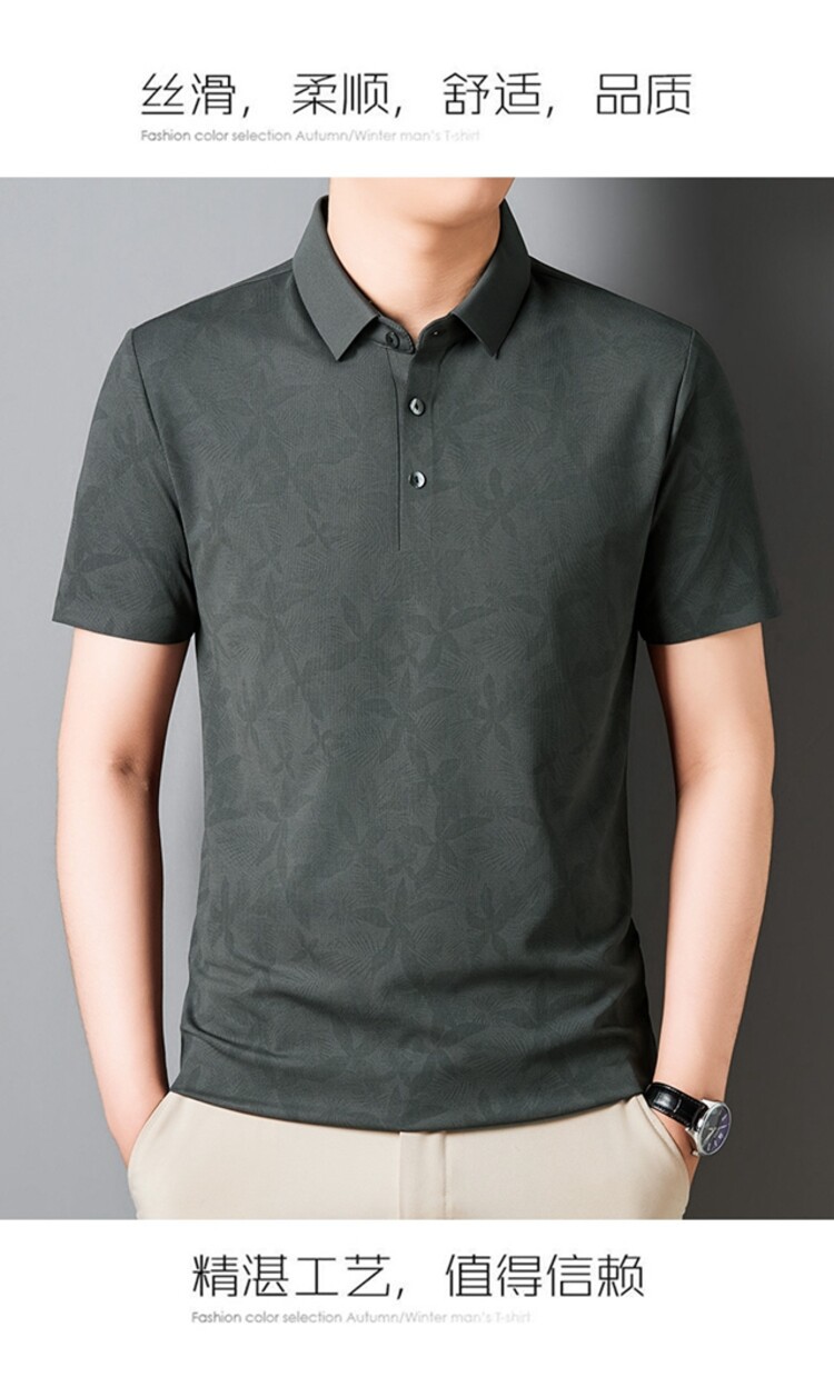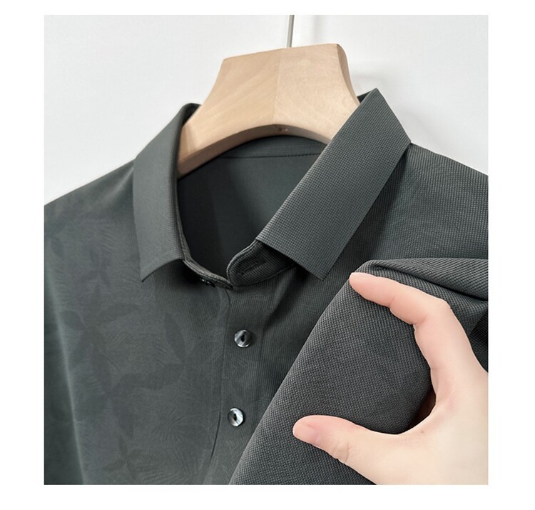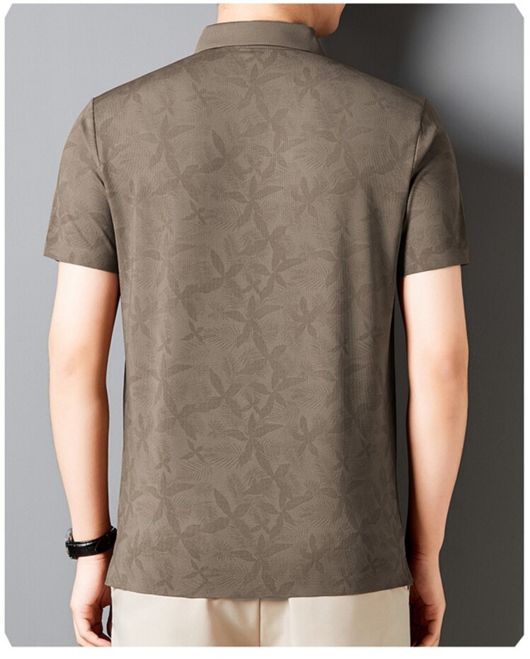 젊고 중년 자카드 반팔 티셔츠 남성용 2024 여름 얇은 트렌디 옷깃 탑 캐주얼 반소매 폴로 셔츠