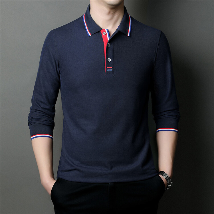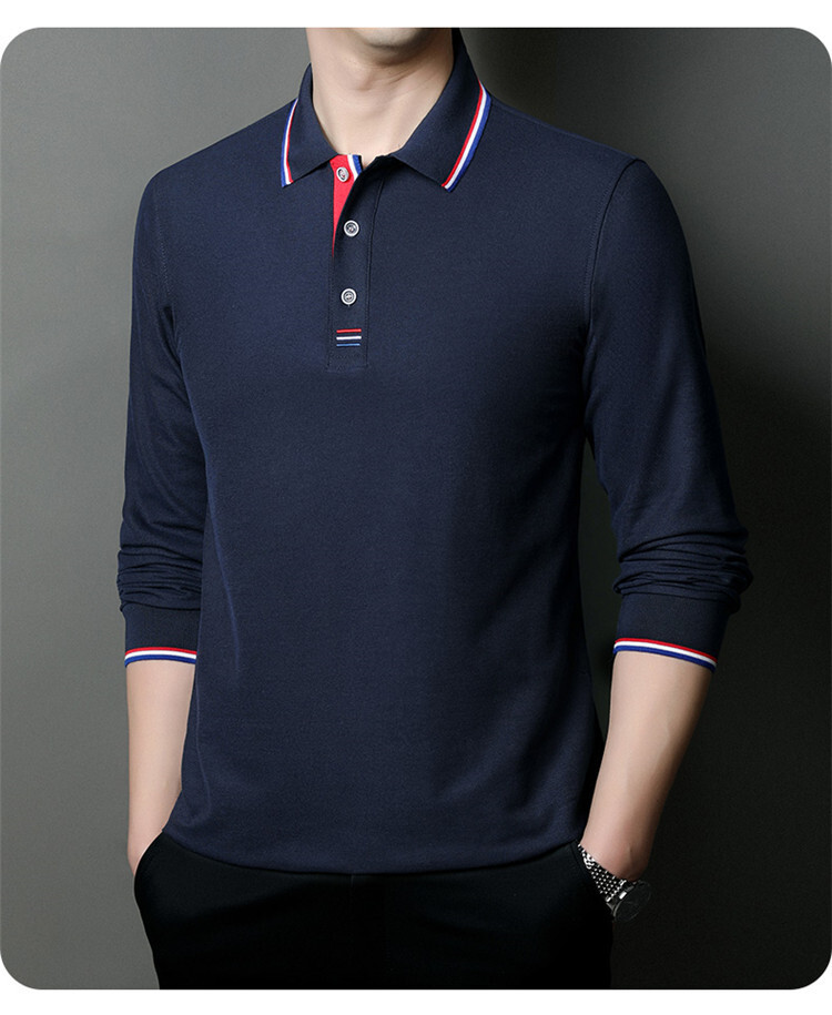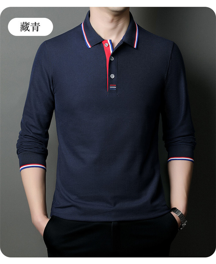 남성용 폴로 칼라 셔츠 긴팔 티셔츠 봄과 가을 남성용 새로운 캐주얼 중년 의류 2024 뉴