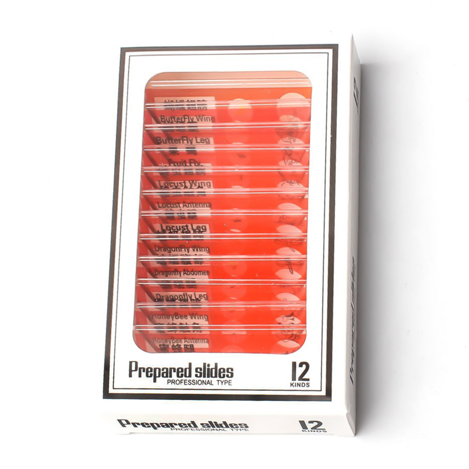 슬라이드 표본 중국어-영어 혼합물, 식물, 동물, 과일, 곤충 현미경 슬라이드 표본