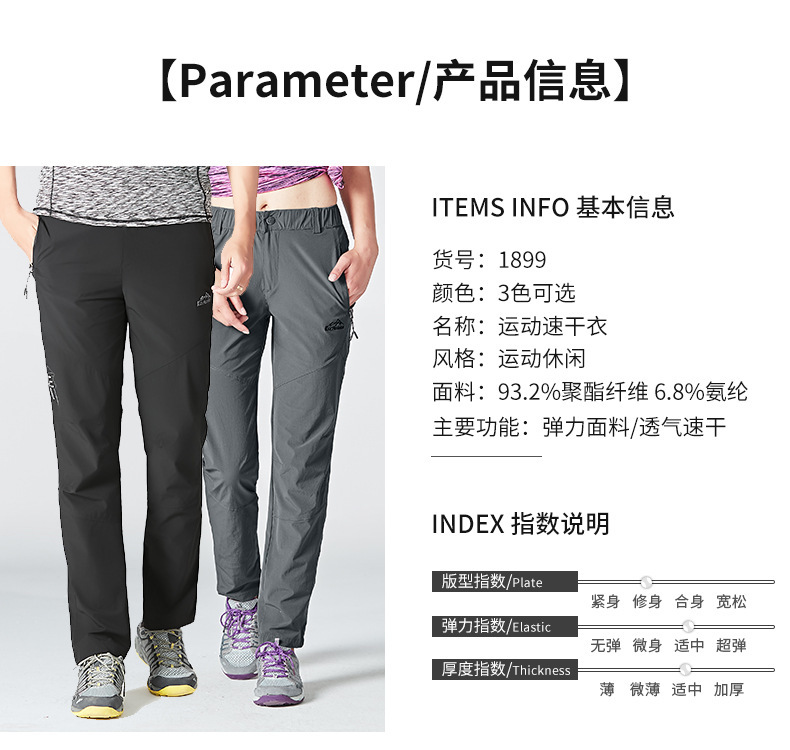 봄과 여름 스포츠 빠른 건조 바지 남성의 시원한 통기성 커플 스포츠 바지 여성의 야외 스트레치 내마모성 바지 여성