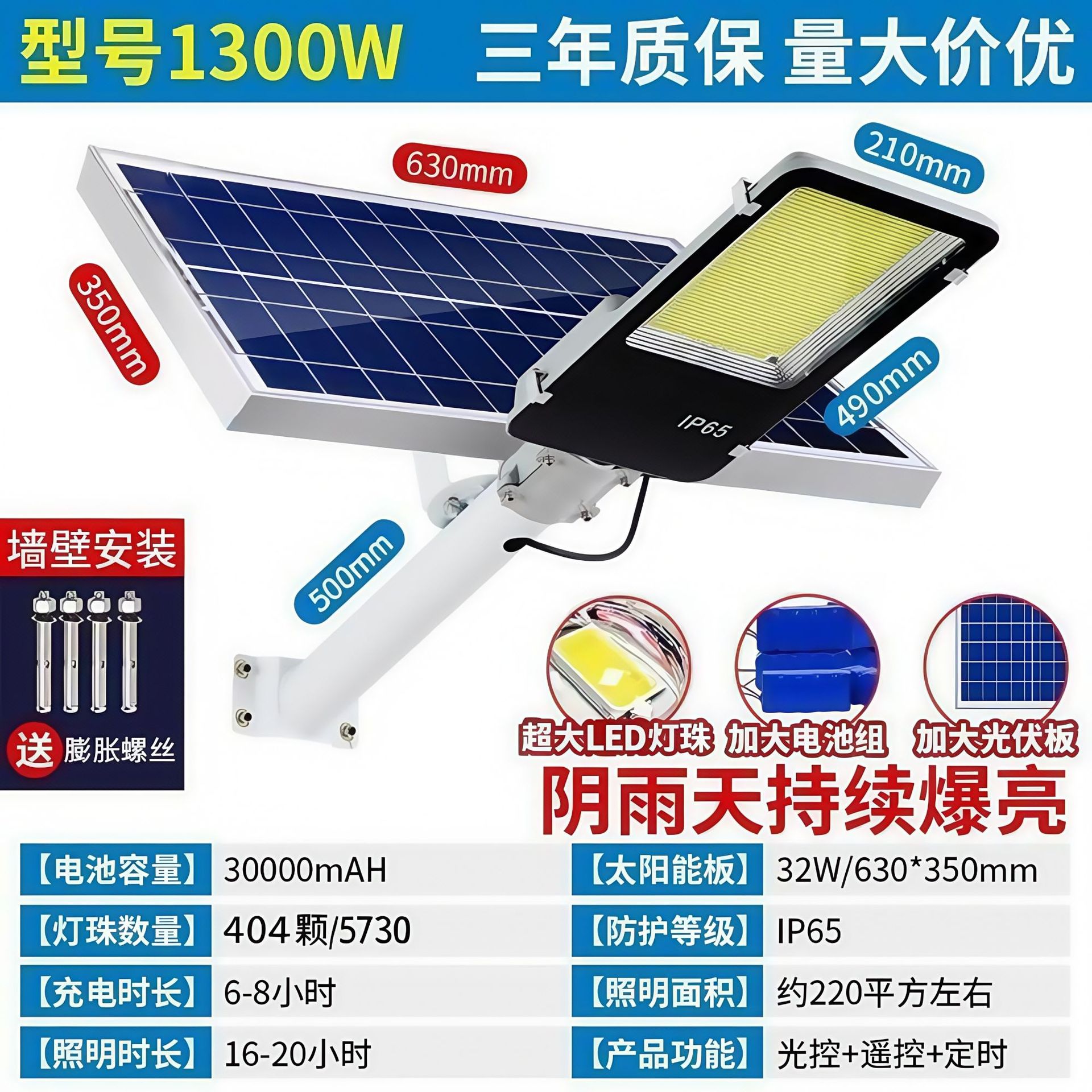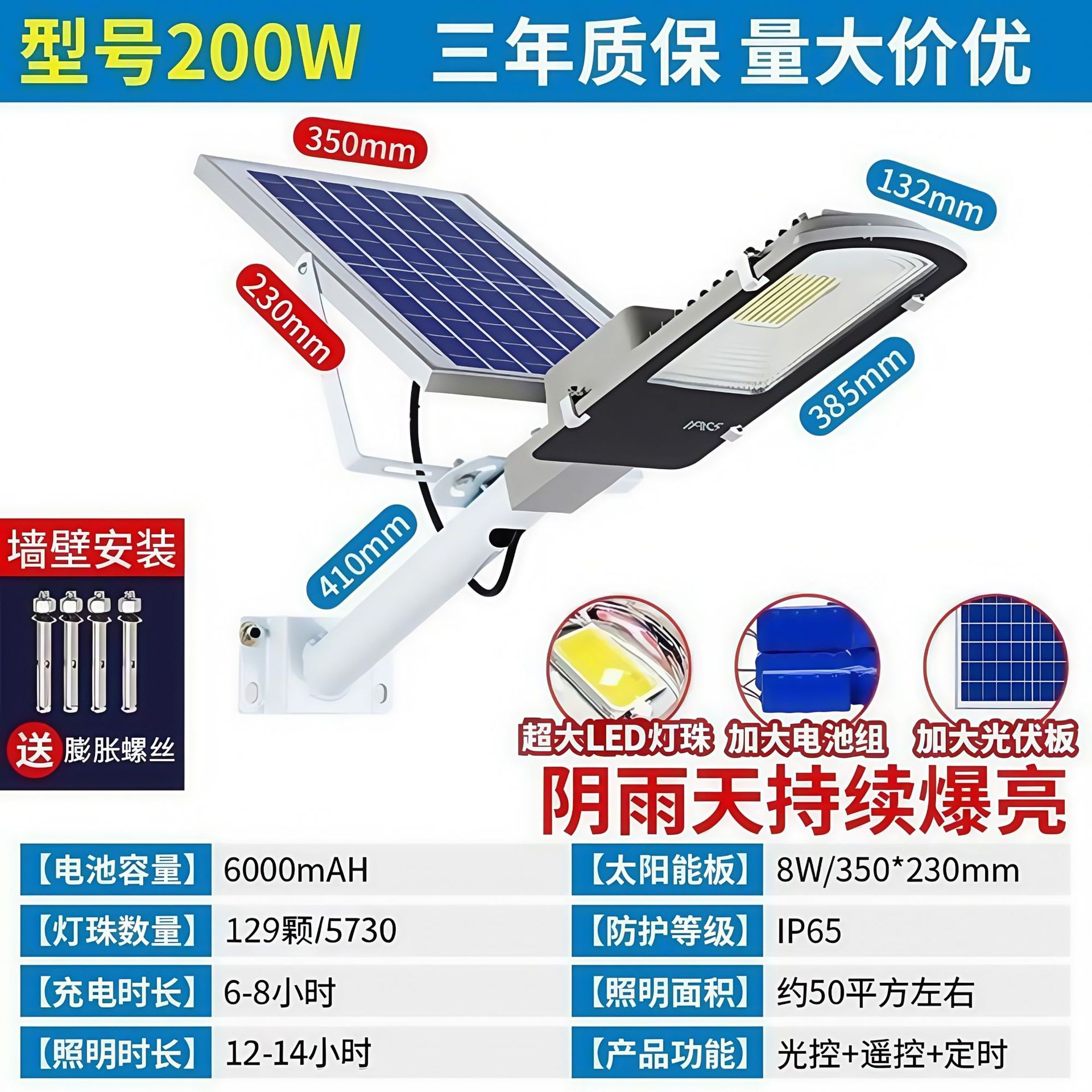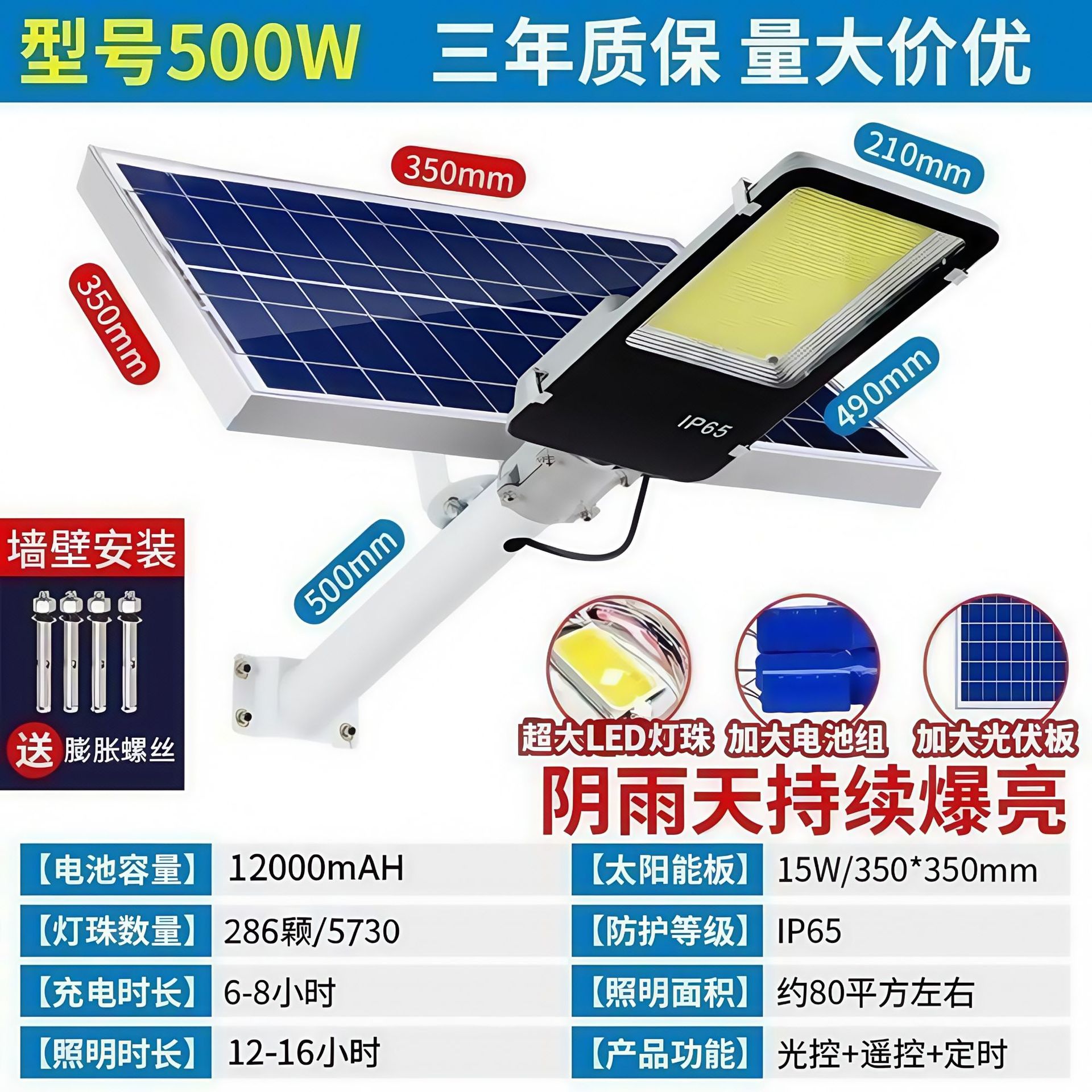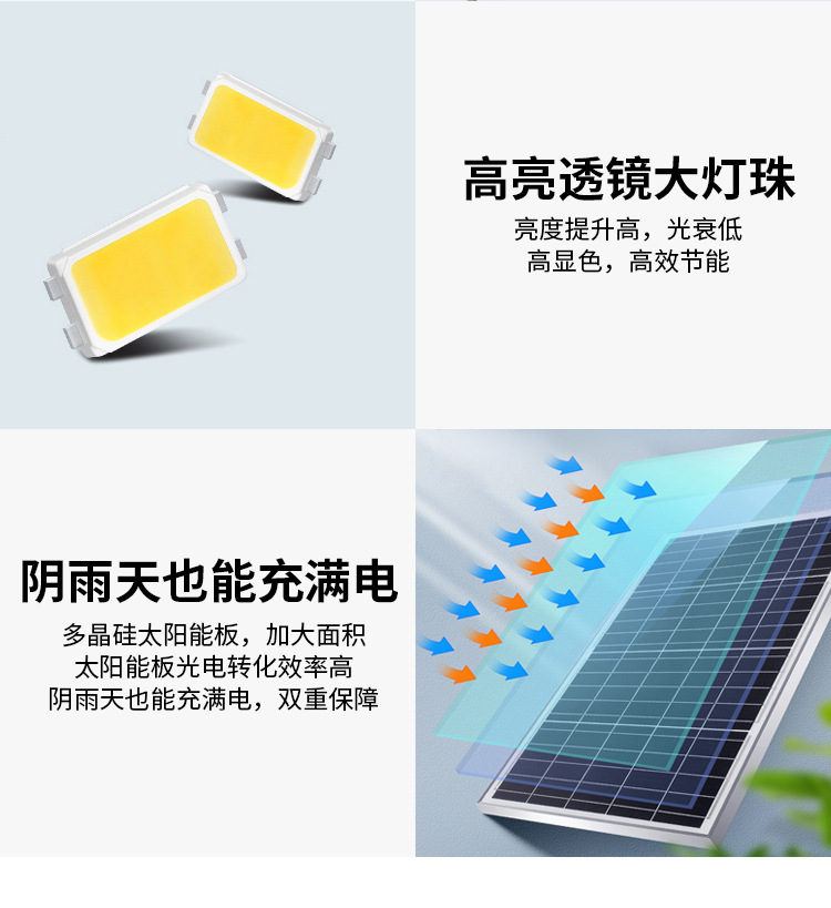매우 밝은 태양광 조명, 야외 정원 조명, 금콩 신농촌 가정용 조명, 벽 조명, 고출력 6m 방향 조명
