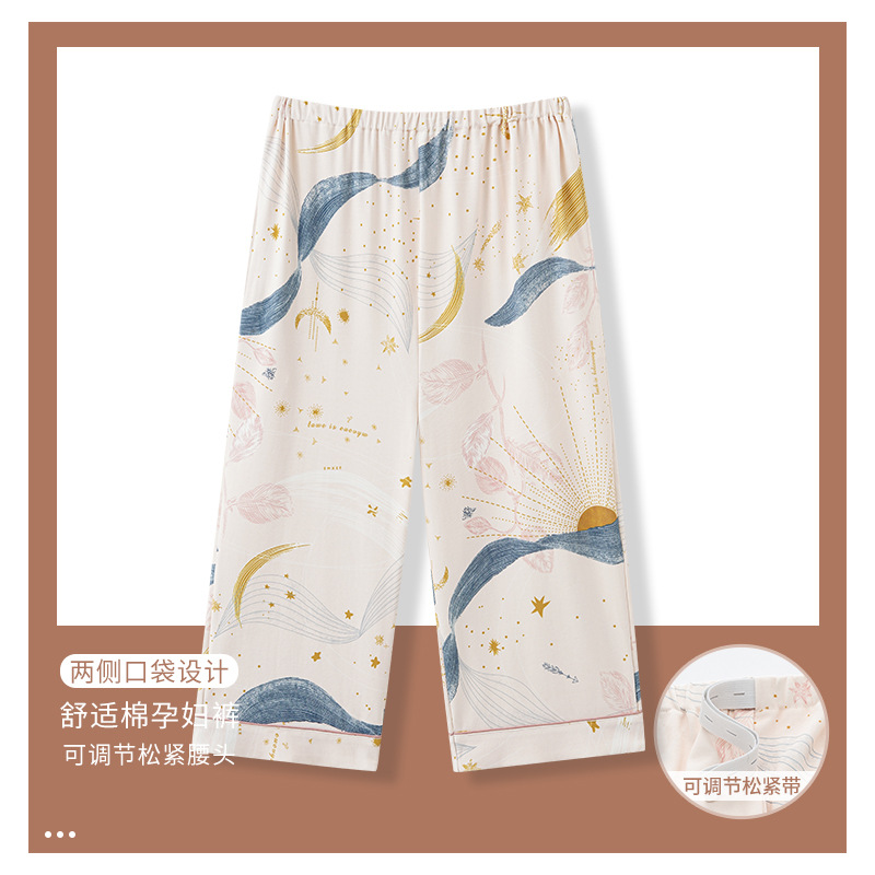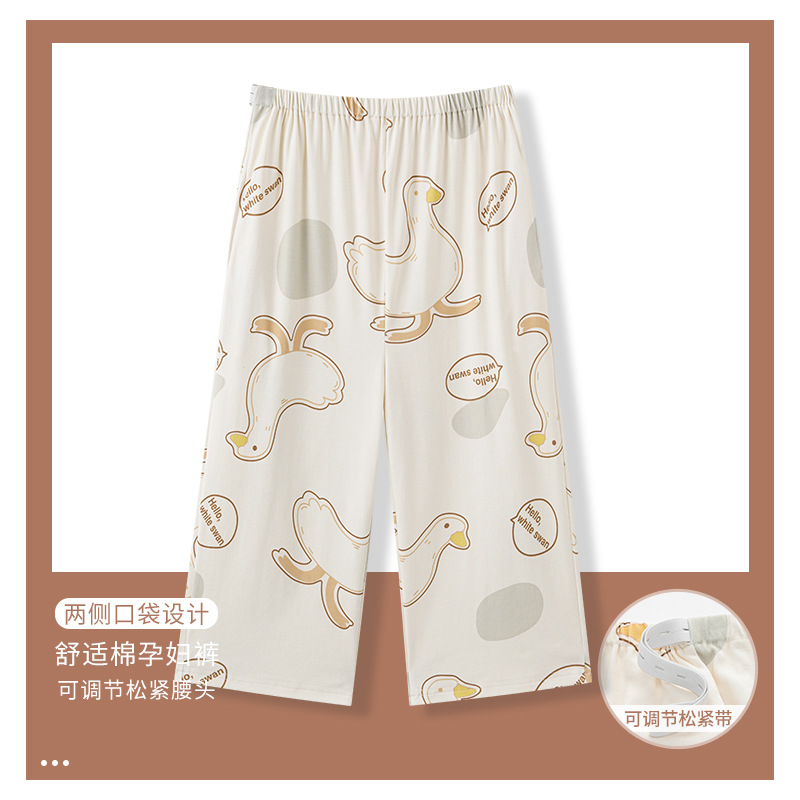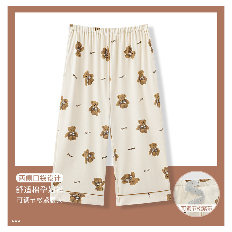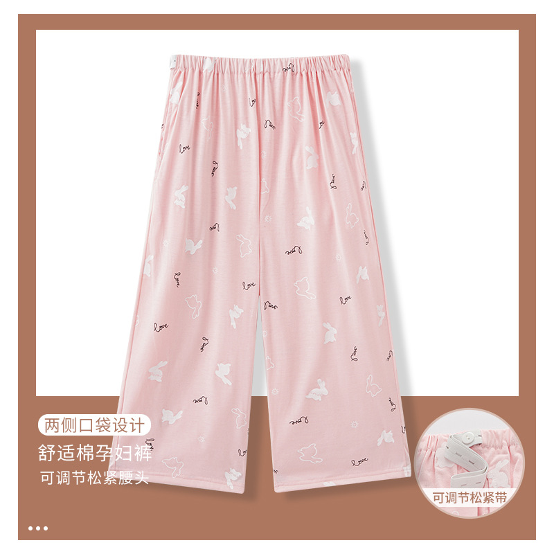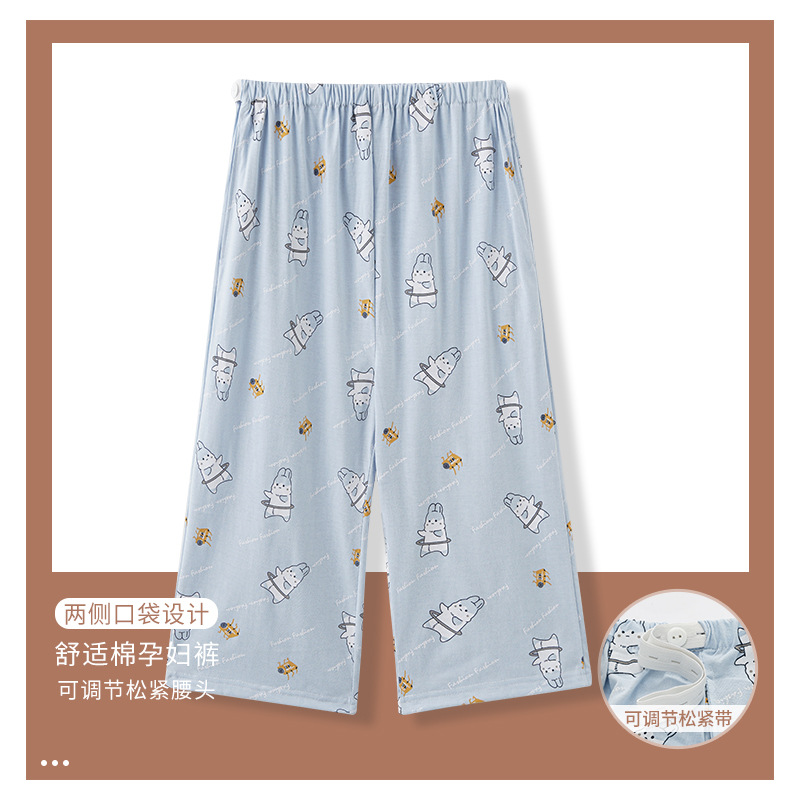 여름 여성 자른 조절 바지 하이 퀄리티 면 만화 간단한 캐주얼 임산부 여름 임산부 자른 바지 구속 바지스토어 가기