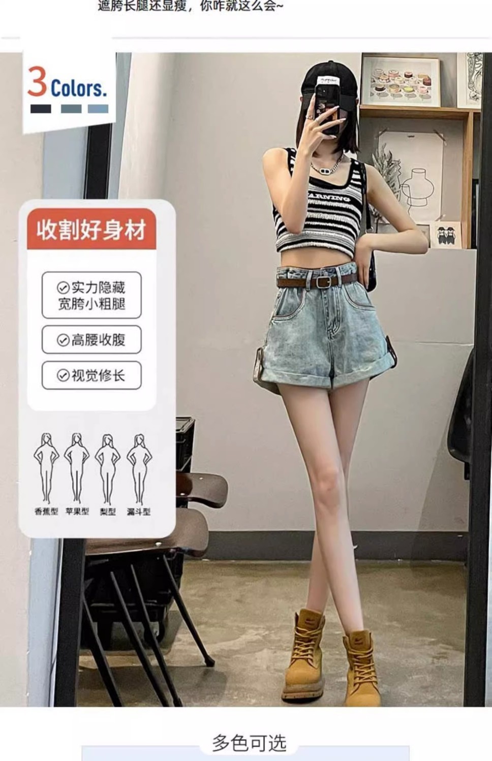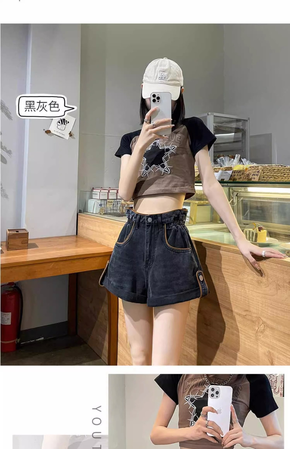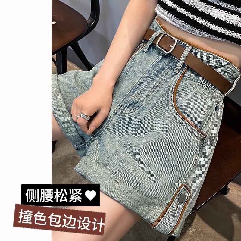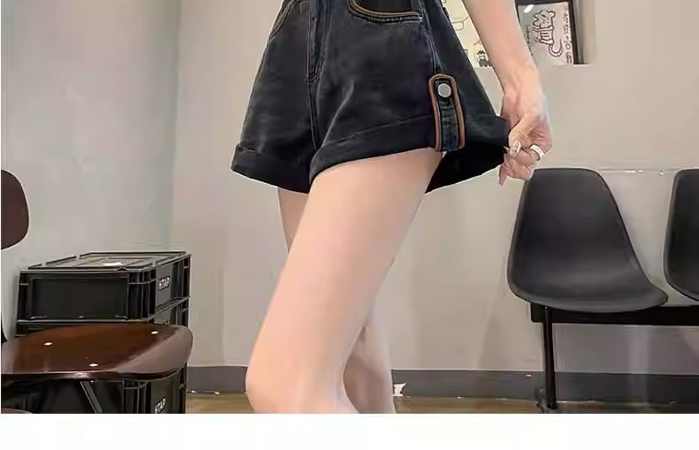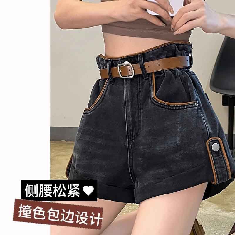 검은 회색 넓은 다리 데님 반바지 여성의 여름 얇은 높은 허리 두꺼운 다리 슬리밍 꽃 봉오리 배스토어 가기