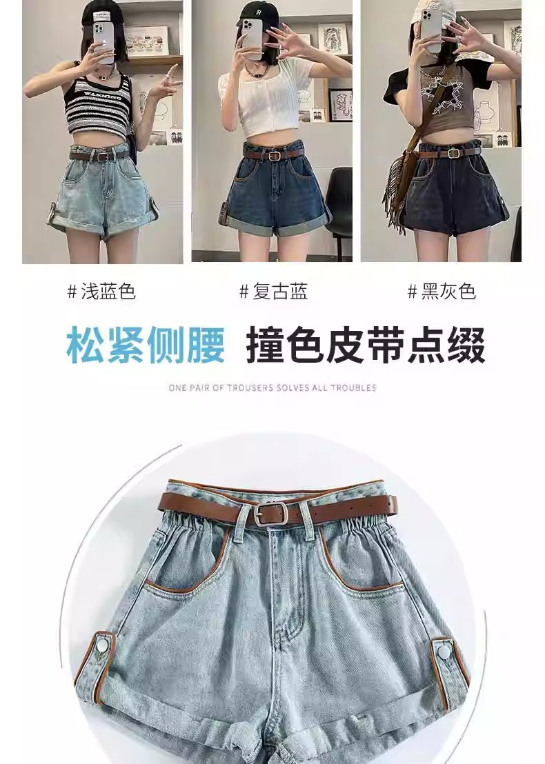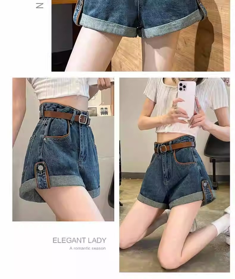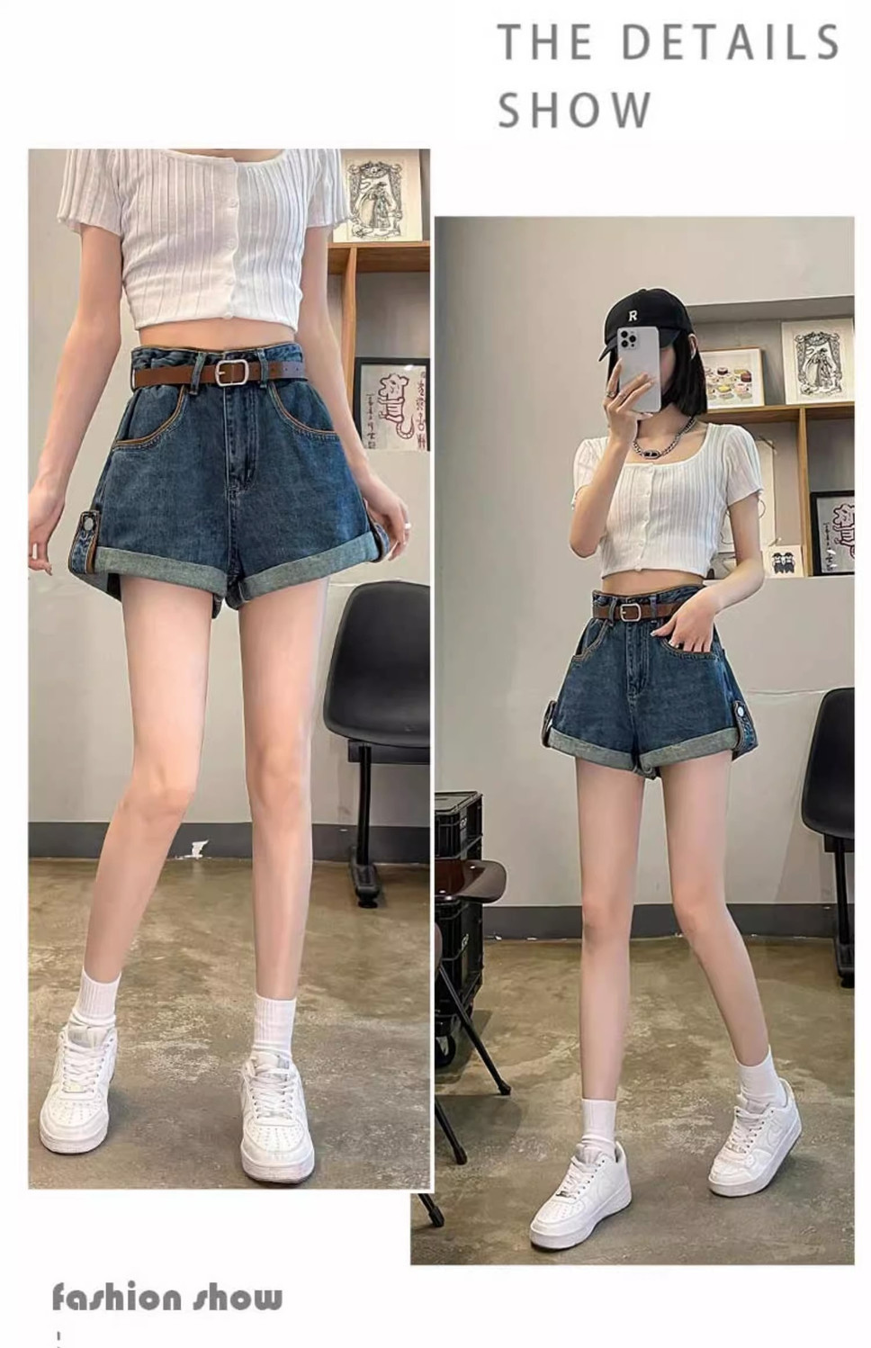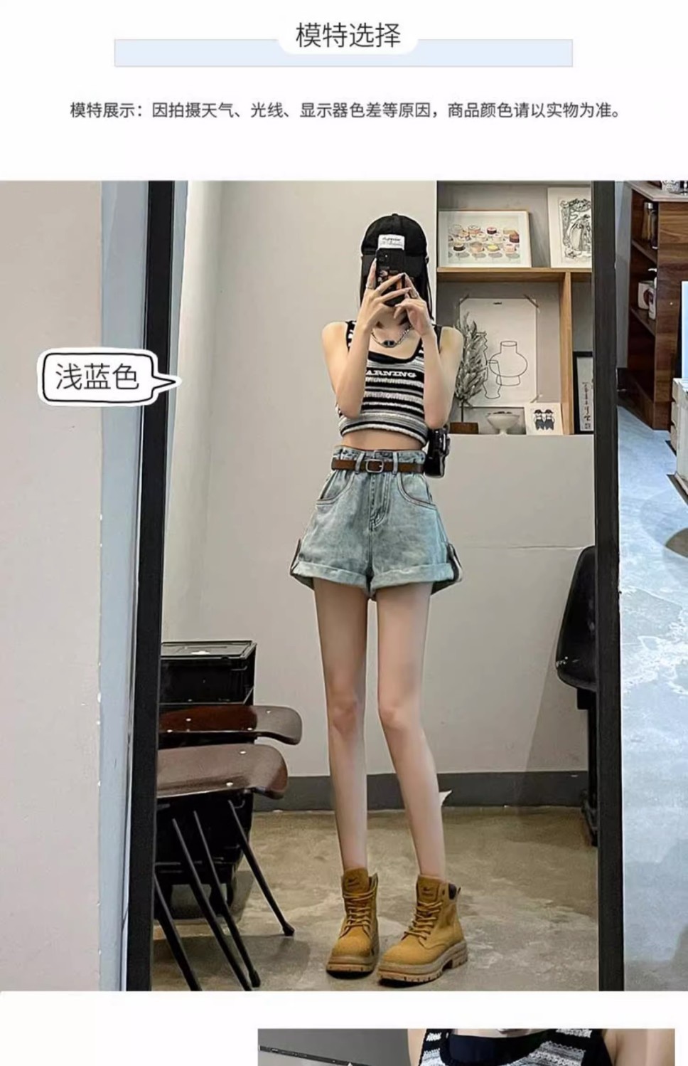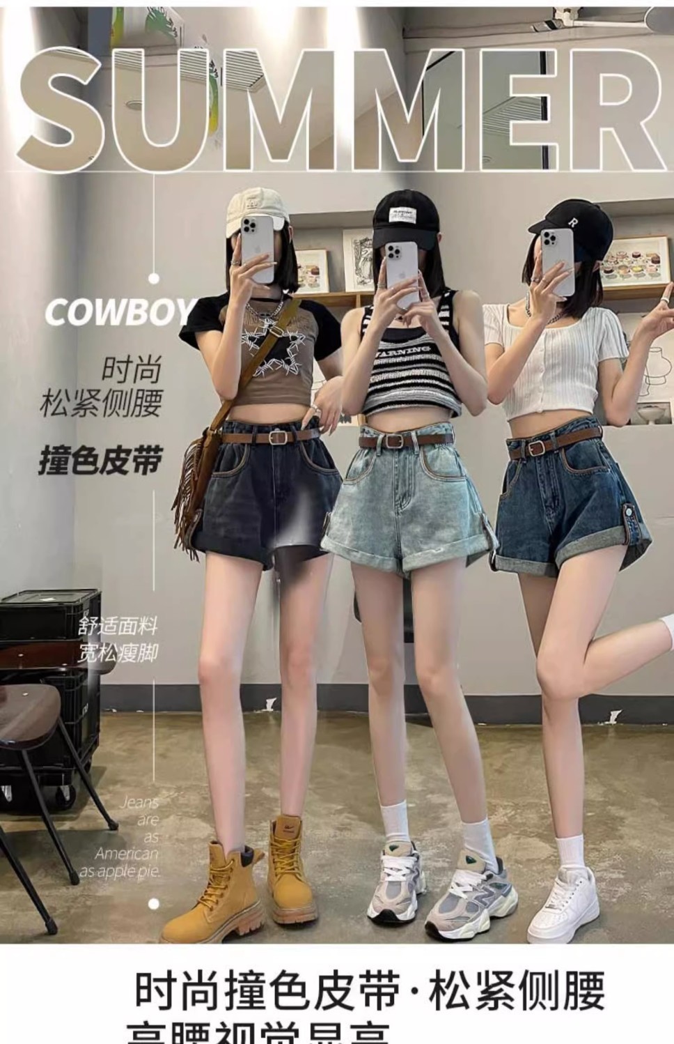 검은 회색 넓은 다리 데님 반바지 여성의 여름 얇은 높은 허리 두꺼운 다리 슬리밍 꽃 봉오리 배스토어 가기