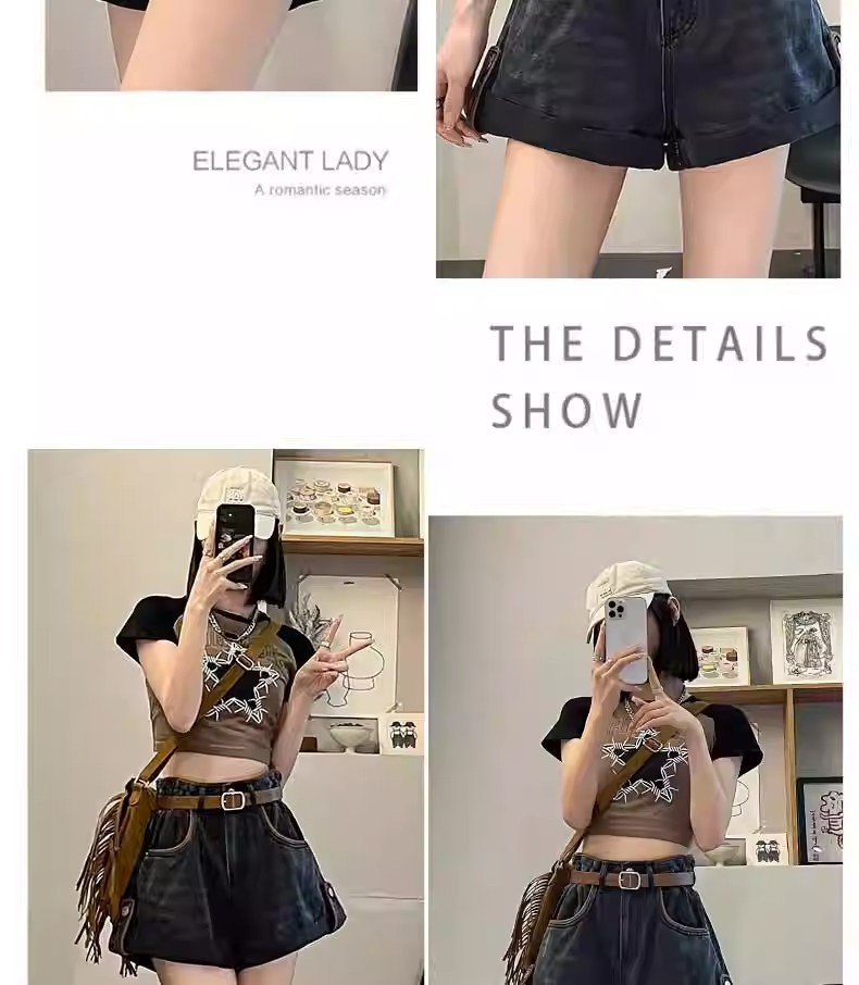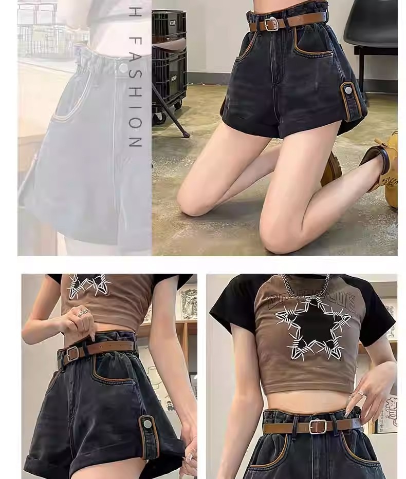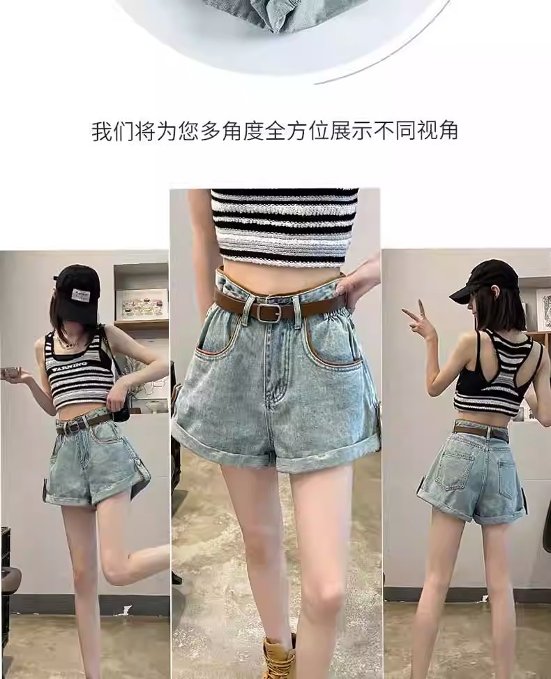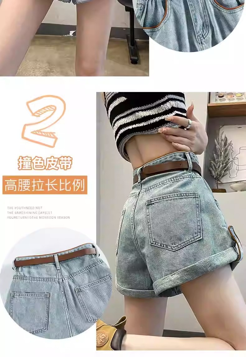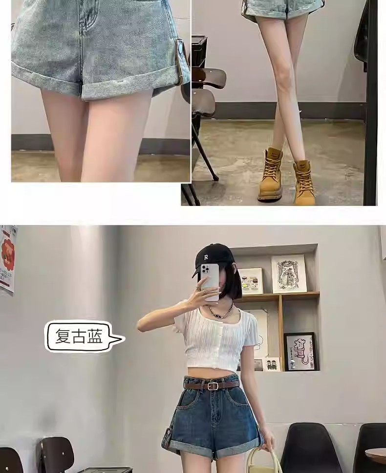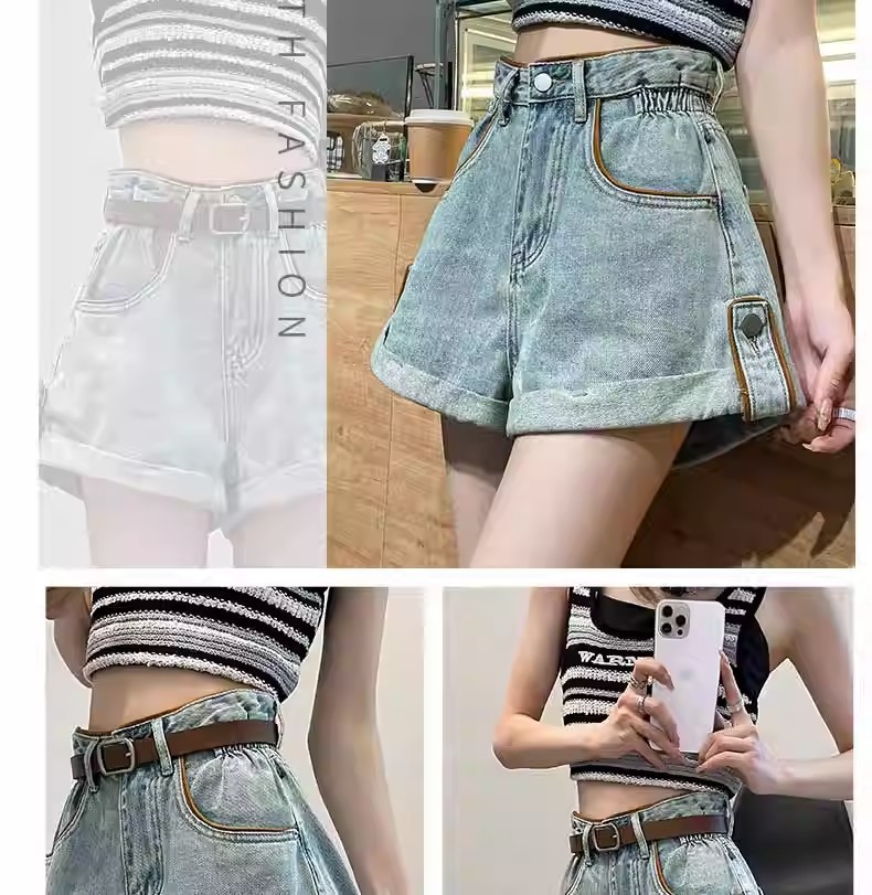 검은 회색 넓은 다리 데님 반바지 여성의 여름 얇은 높은 허리 두꺼운 다리 슬리밍 꽃 봉오리 배스토어 가기