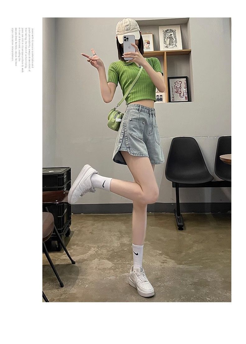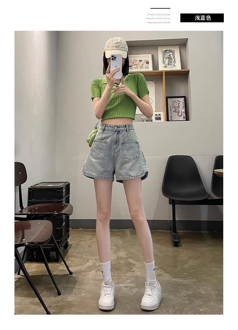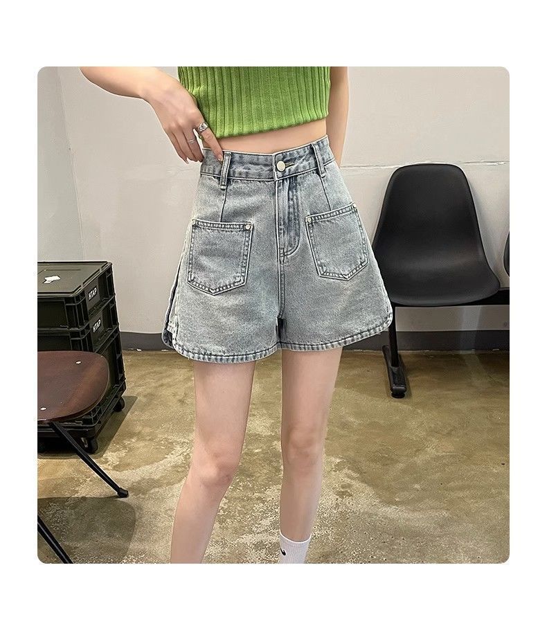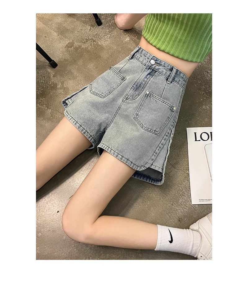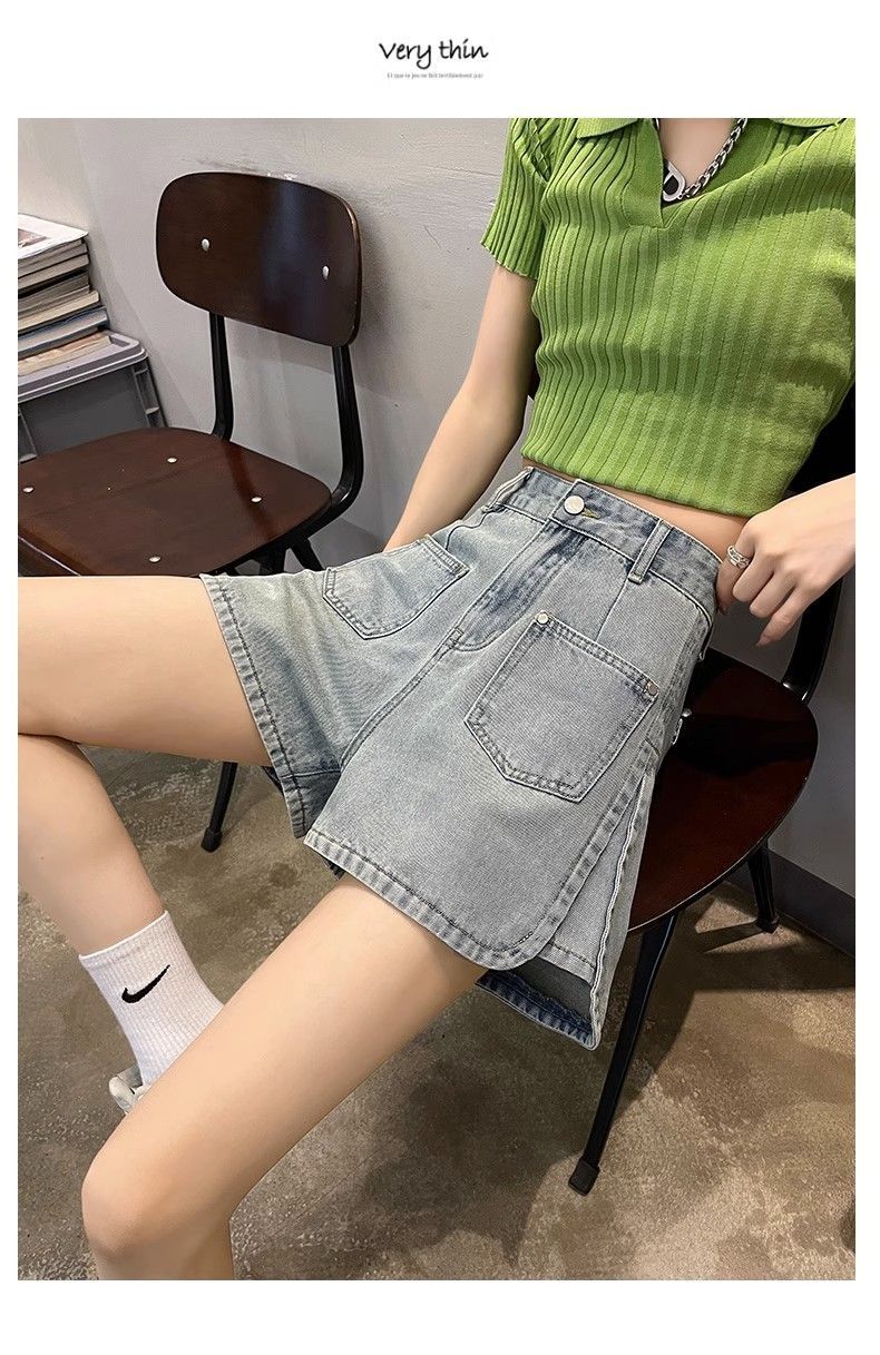 높은 허리 데님 반바지 여성 여름 얇은 2023 새로운 디자인 분할 뜨거운 소녀 플러스 사이즈 슬리밍 반바지스토어 가기