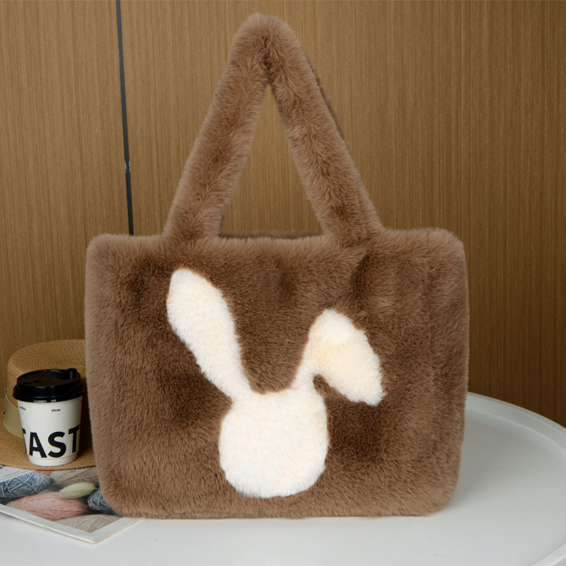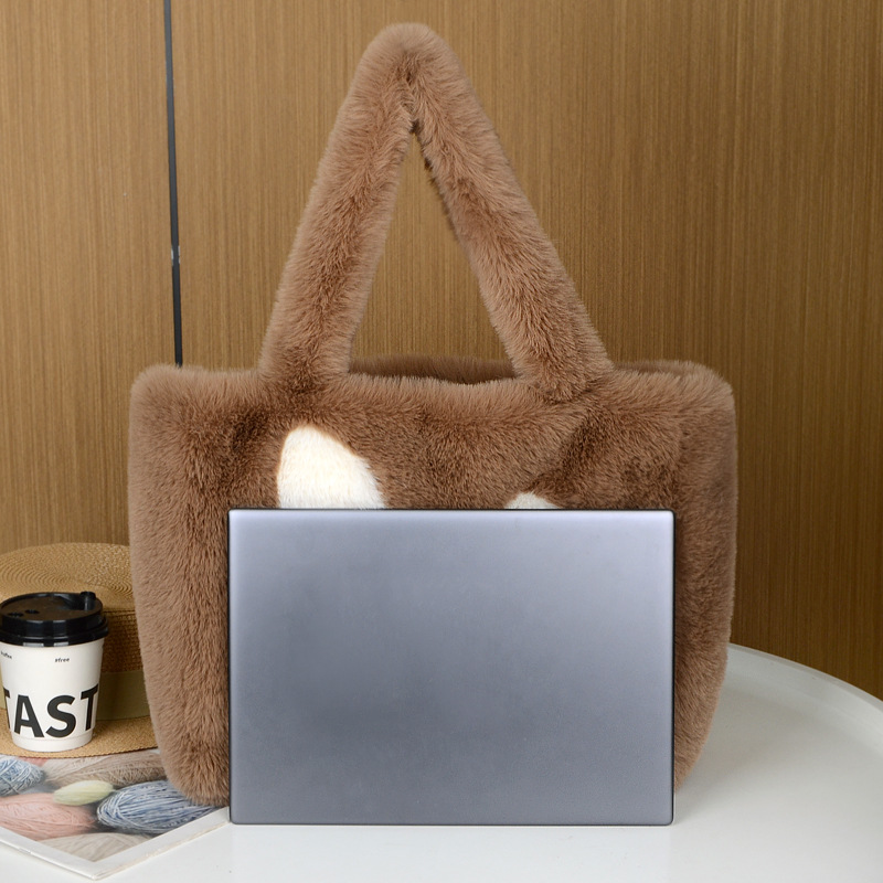 여성용 대용량 2024년 신상 가을 겨울 귀여운 만화 캐릭터 토트백 손가방 플러시백 핸드백 크로스백스토어 가기