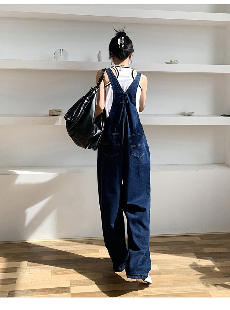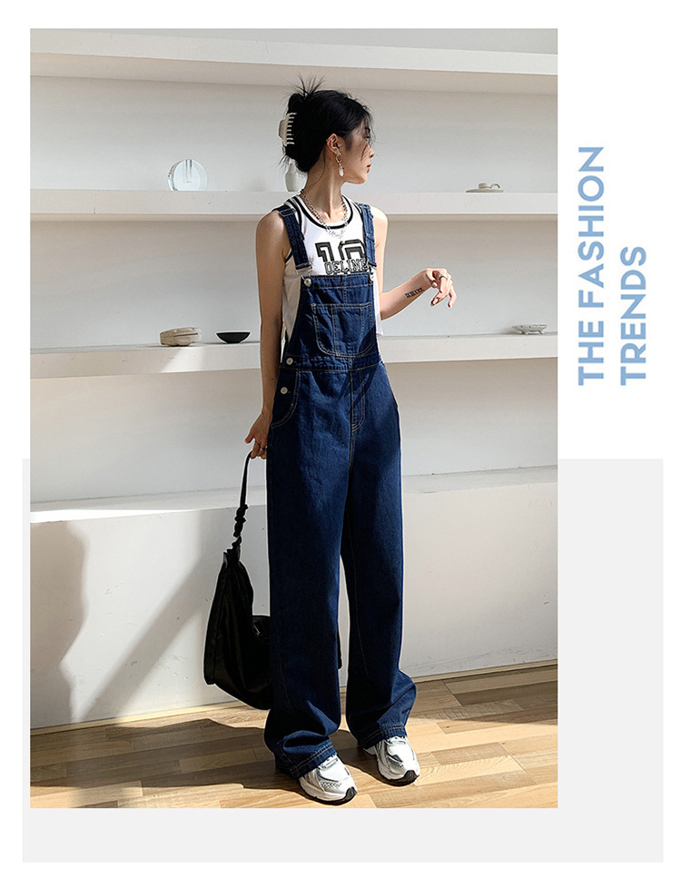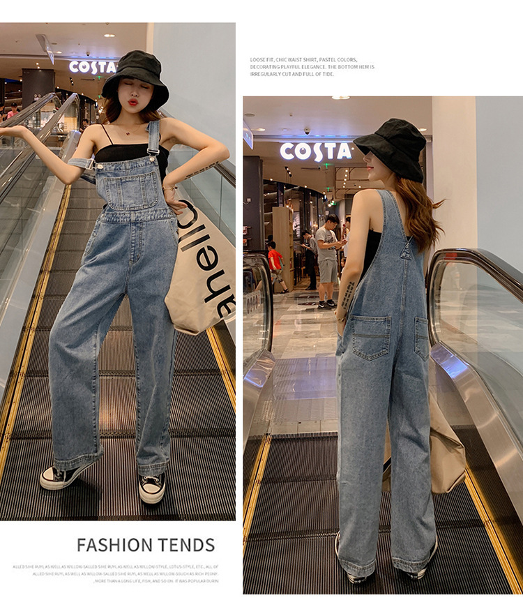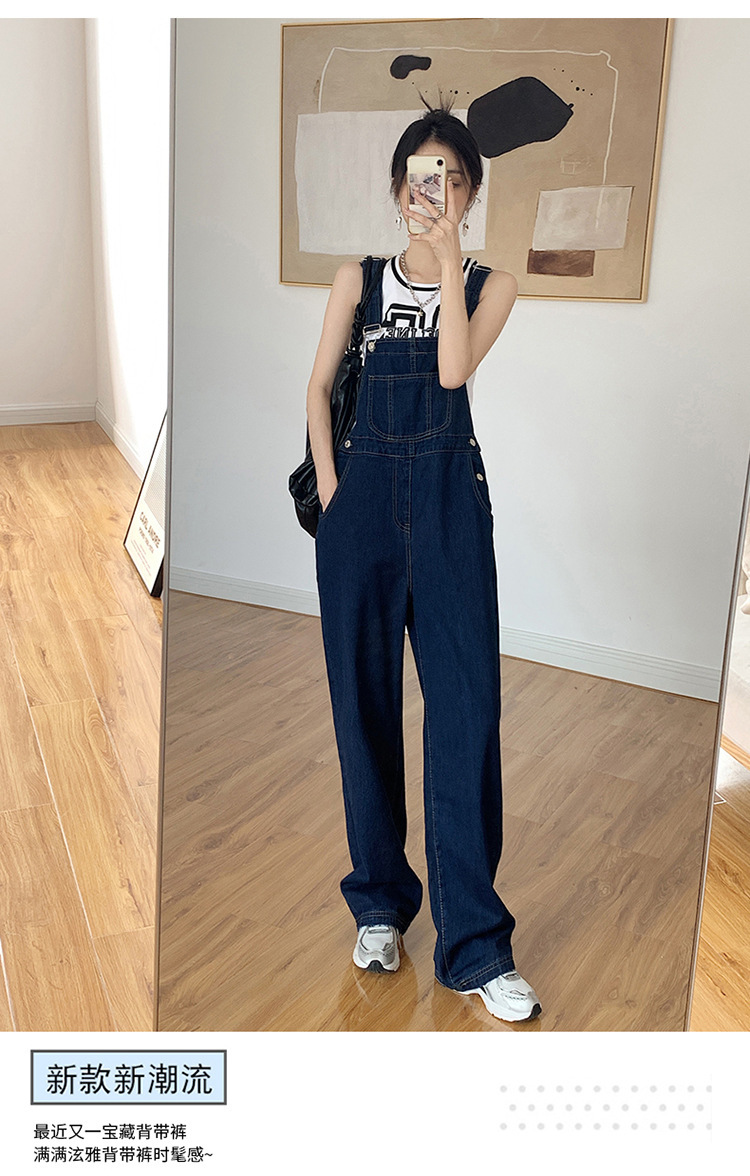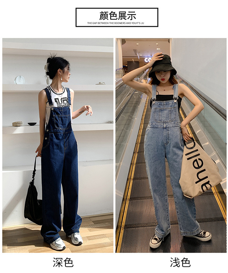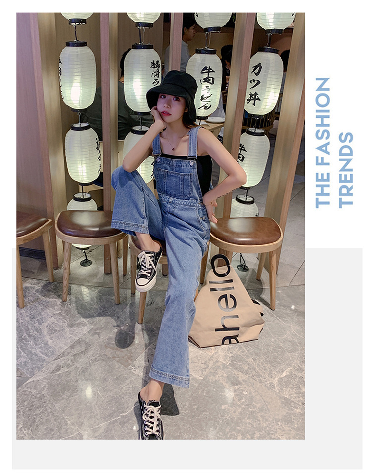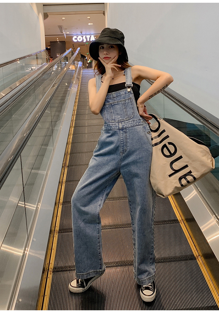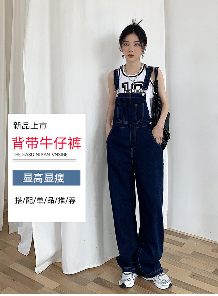 韩版牛仔阔腿背带裤女