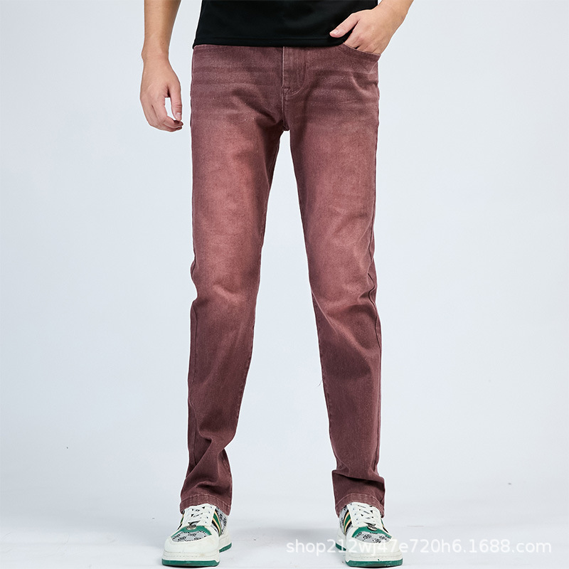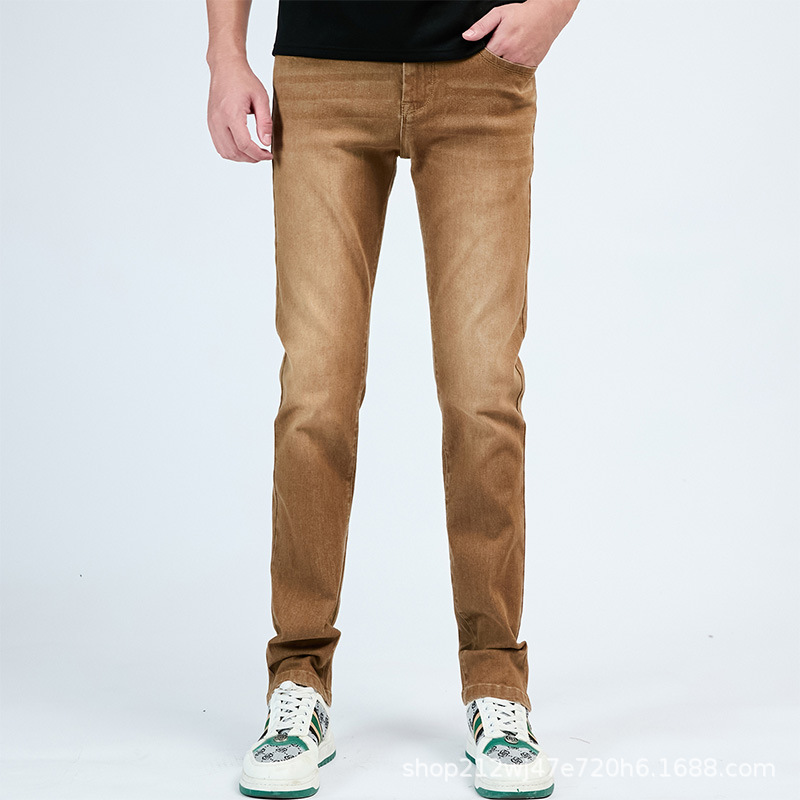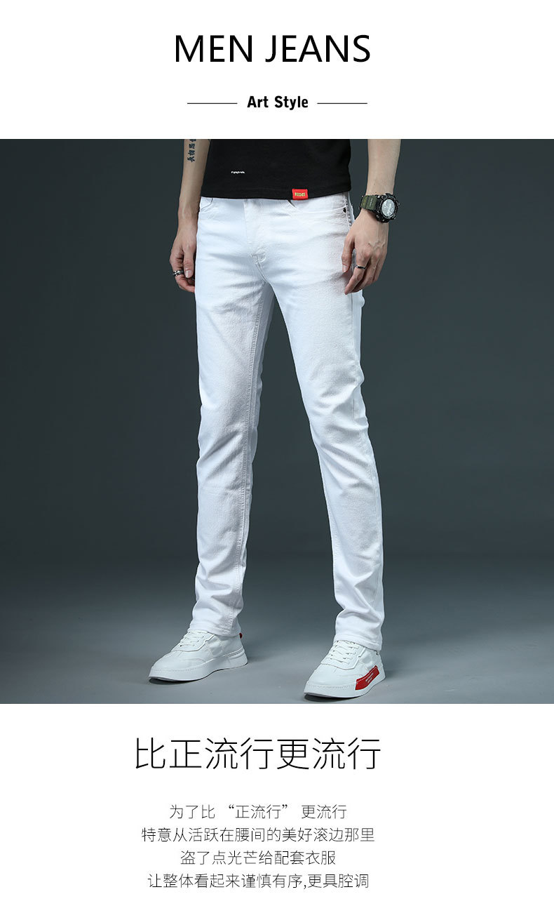 하이 엔드 봄, 가을 새로운 남성 순백색 청바지 트렌드 한국 스타일 멀티 컬러 남성 슬림 청바지 잘 생기고 다재다능함스토어 가기