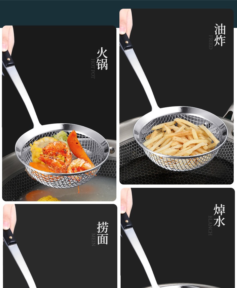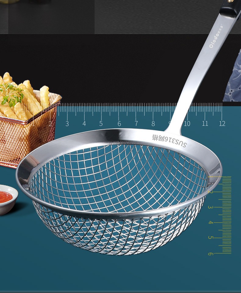 Stainer 316 스테인레스 스틸 소쿠리 필터 그물 낚시 숟가락 튀김 여과기 304 오일 침출 유물 고온 튀김 상업스토어 가기