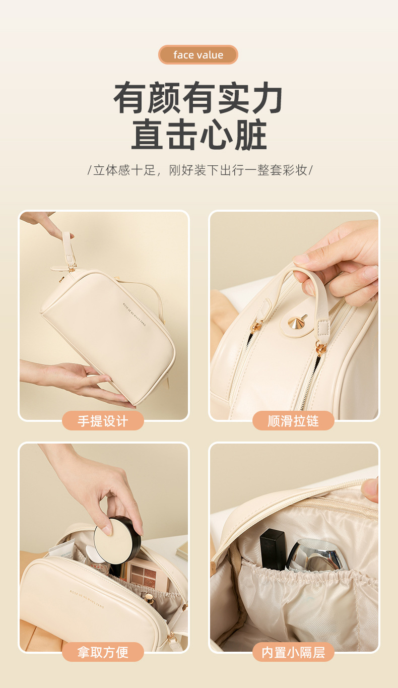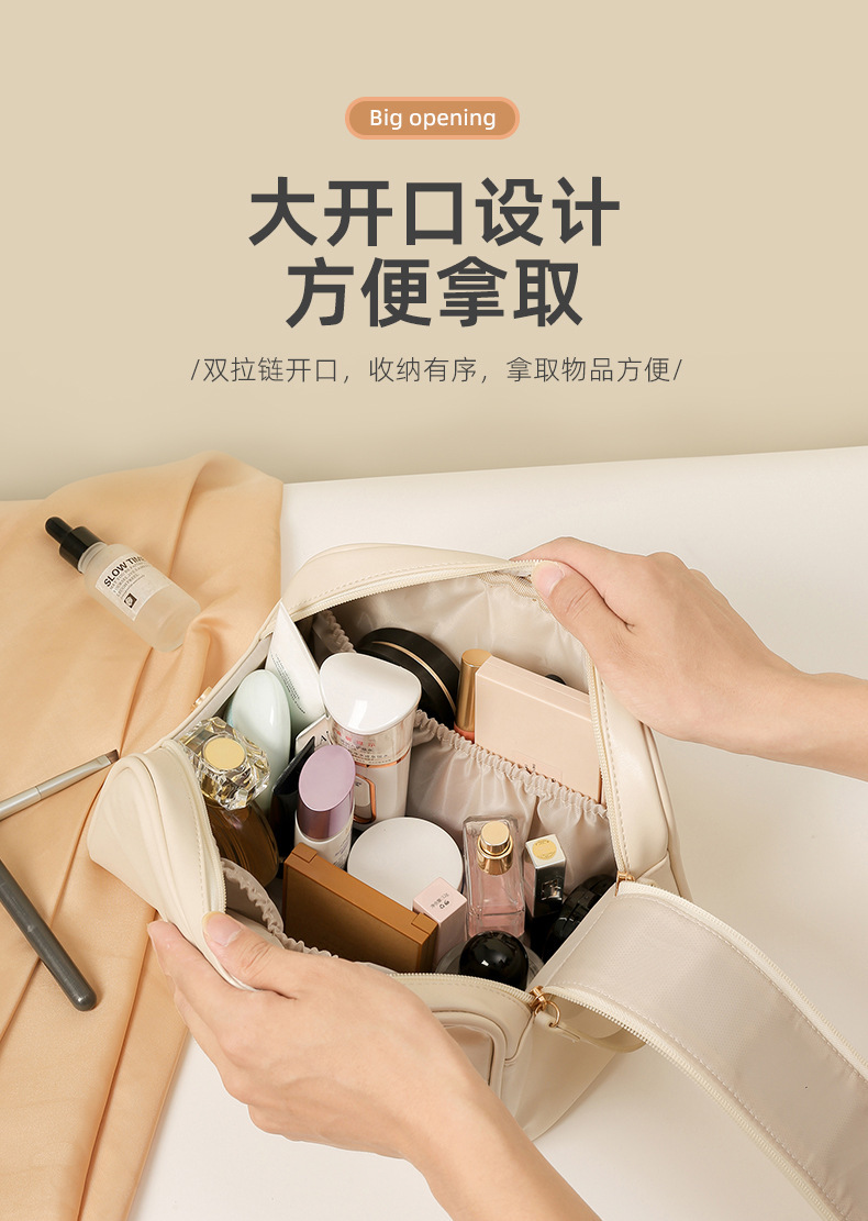 2024 한국형 화장품 가방 대용량 고급스러운 느낌의 더블 지퍼 세면도구 가방 화장품 수납 가방 휴대용 여성용스토어 가기