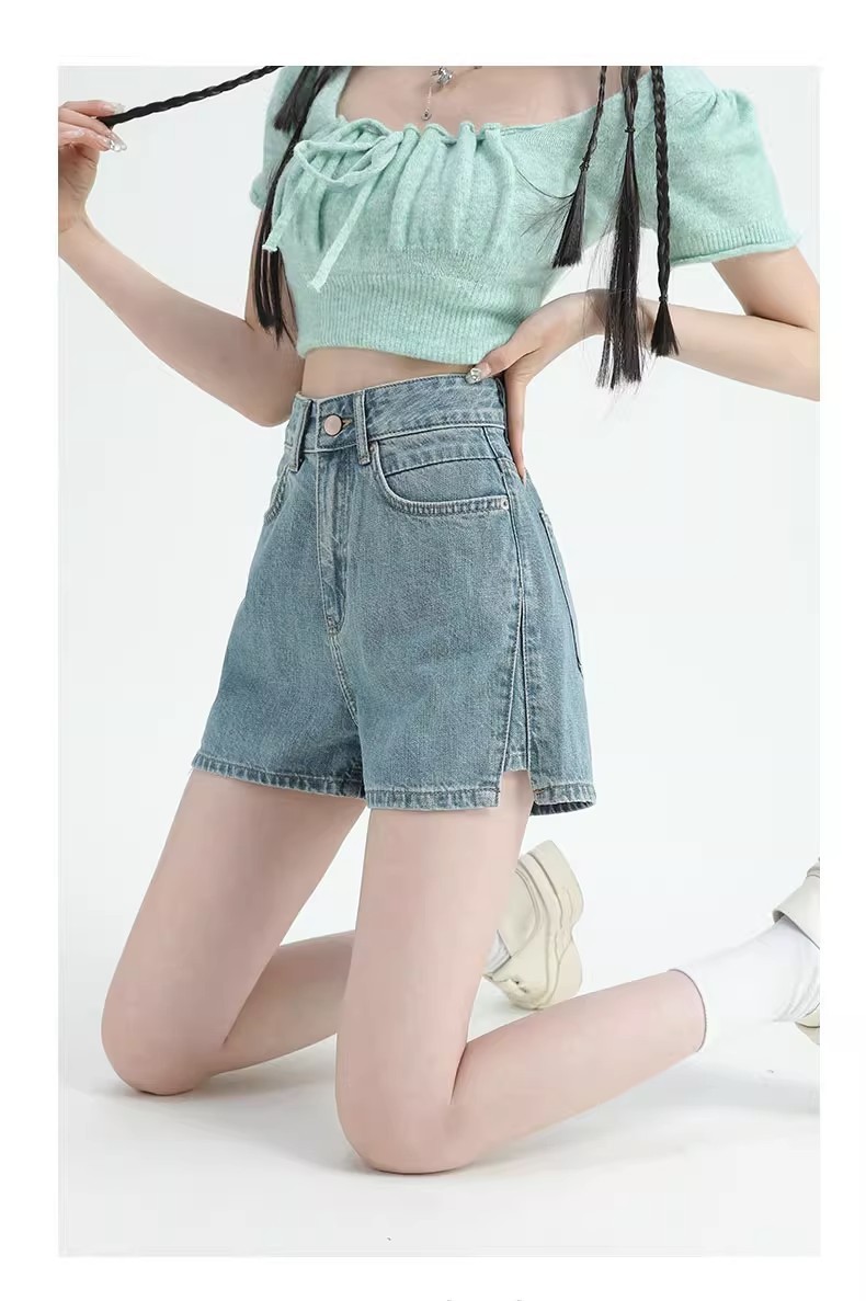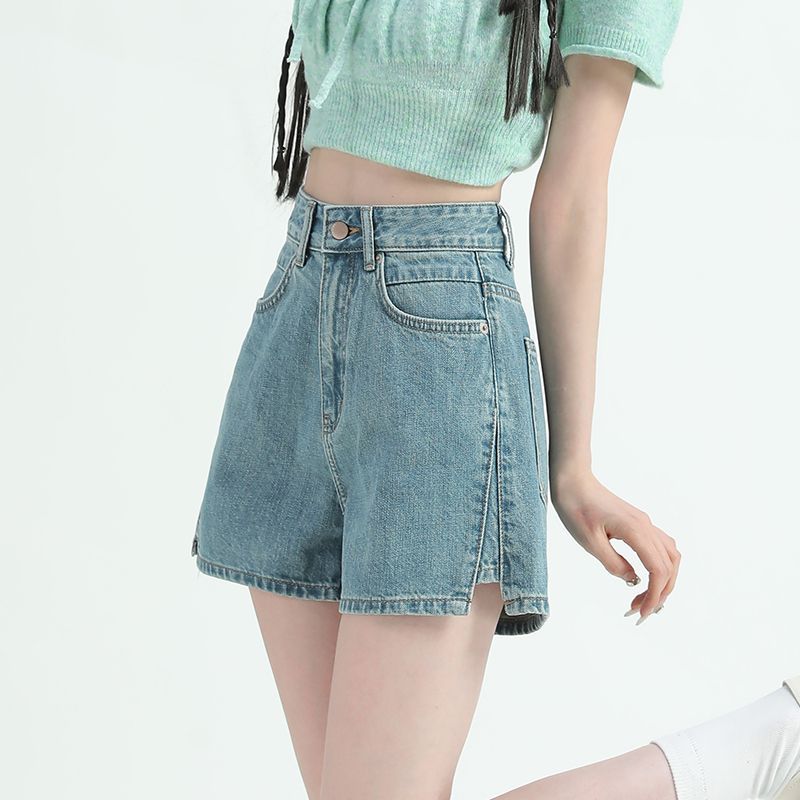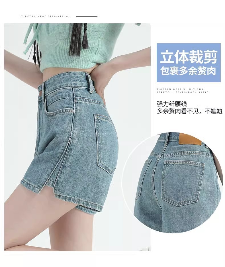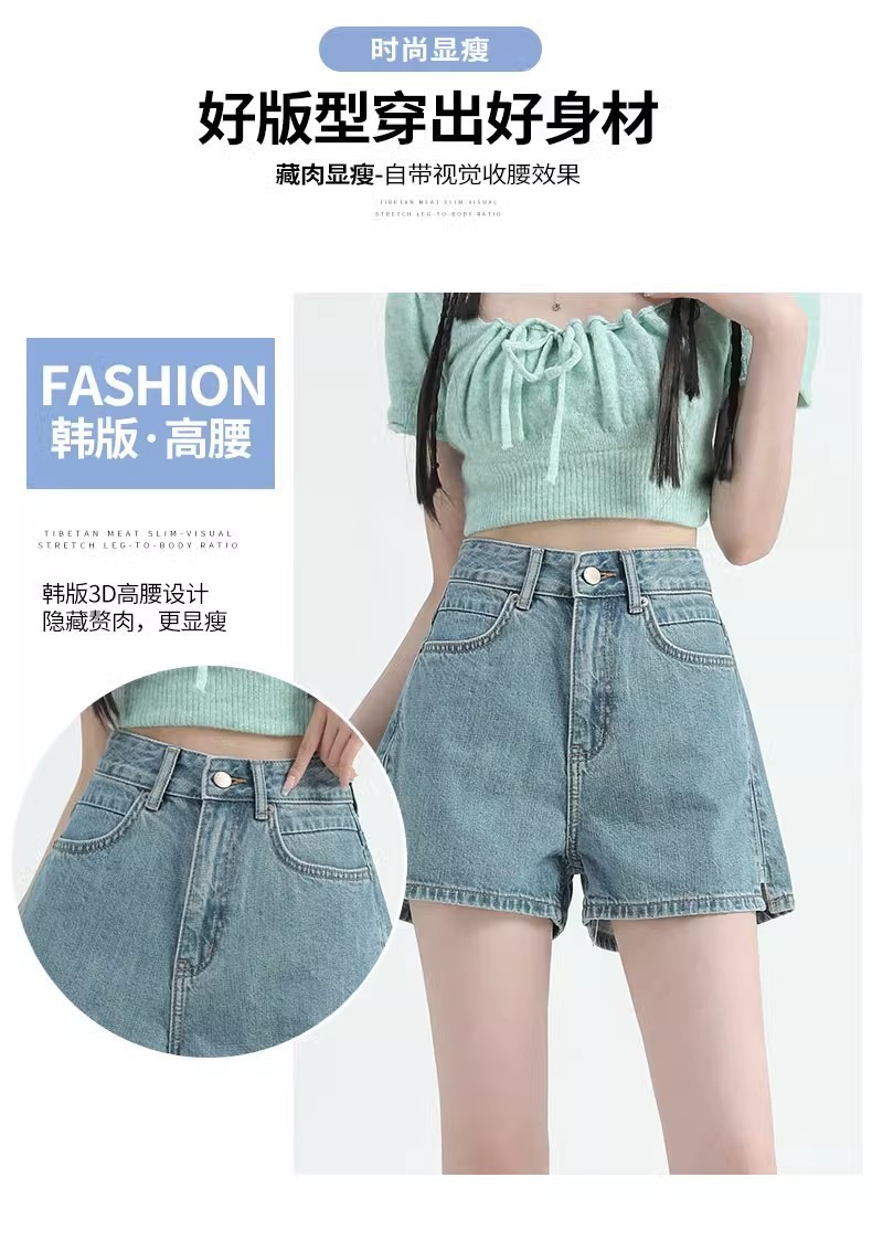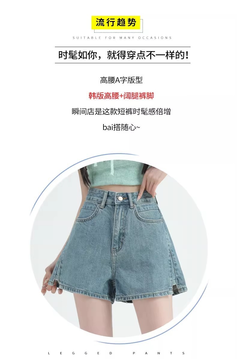 레트로 하이 허리 데님 반바지 여성 여름 얇은 2023 새로운 단어 슬리밍 작은 자른 넓은 다리 핫팬츠스토어 가기