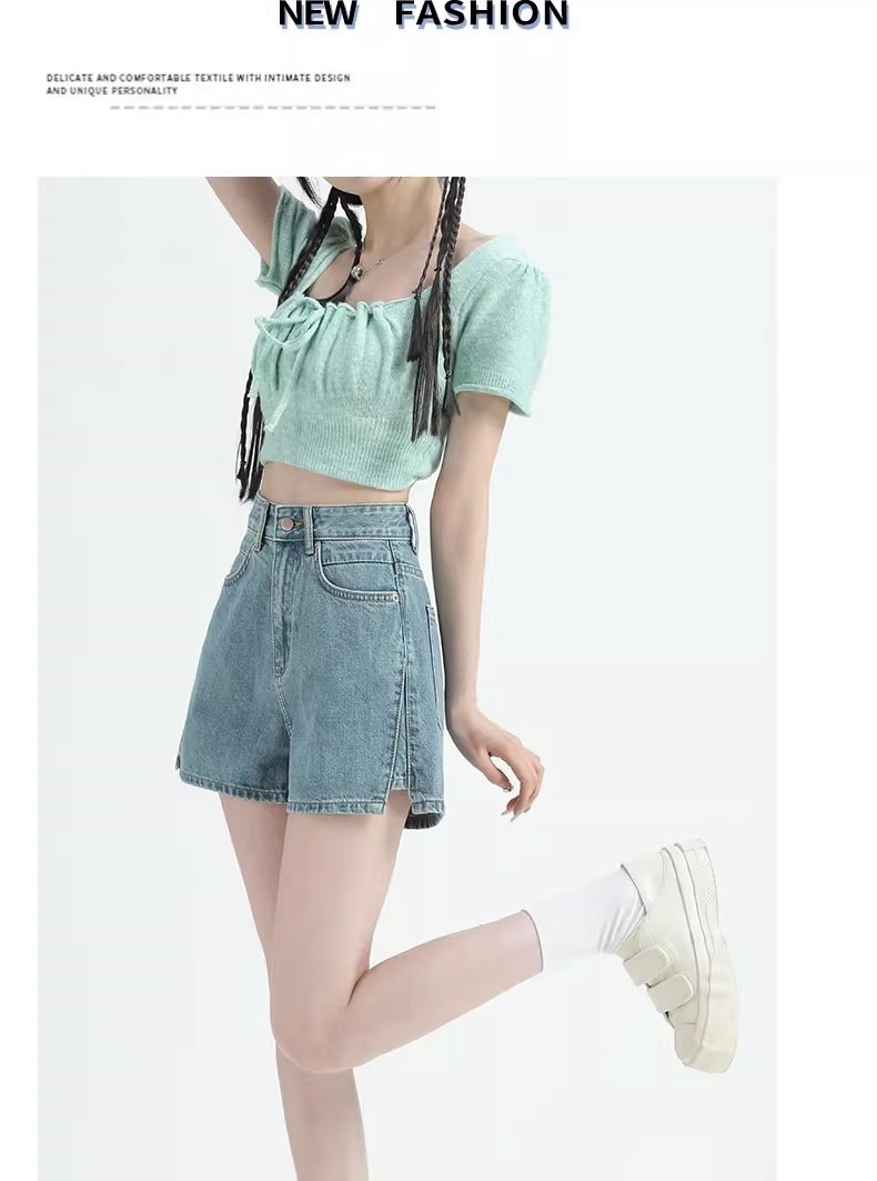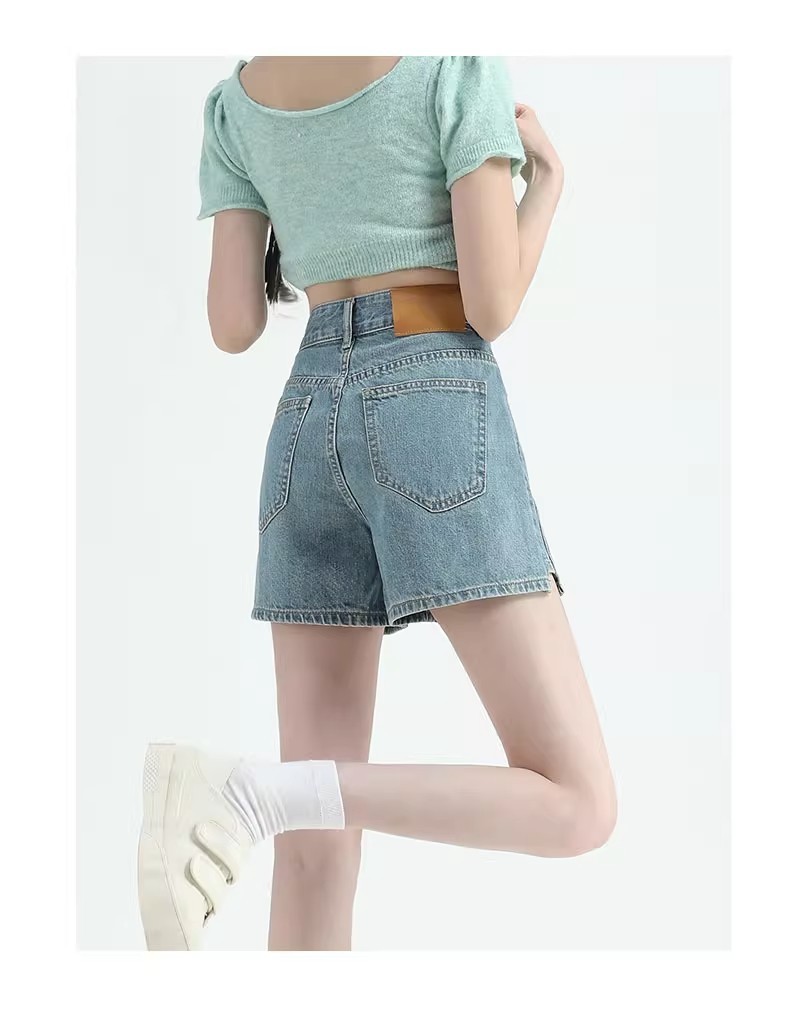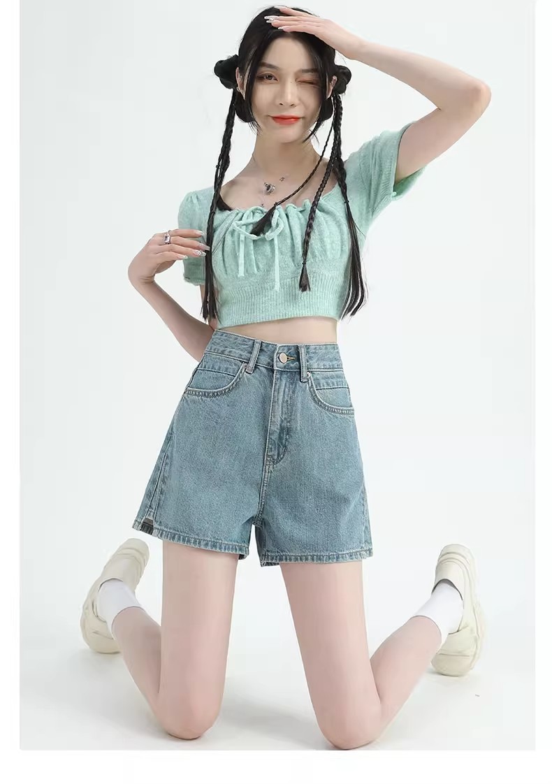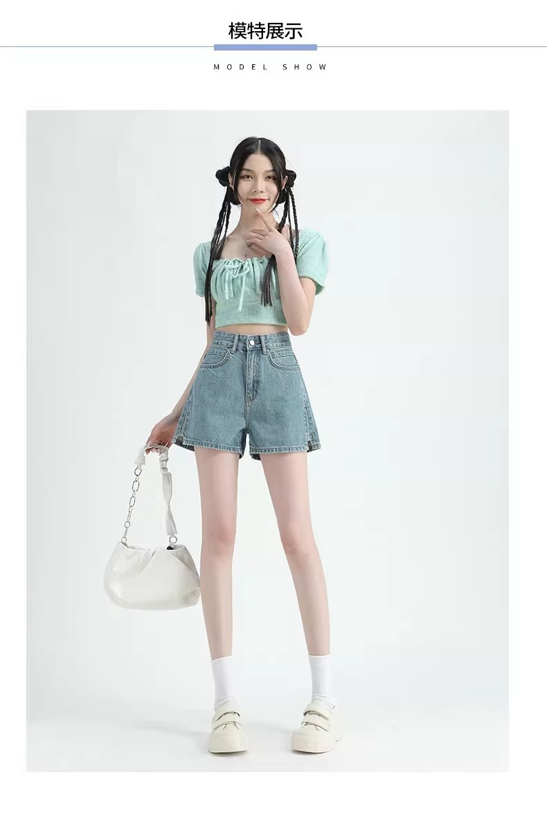 레트로 하이 허리 데님 반바지 여성 여름 얇은 2023 새로운 단어 슬리밍 작은 자른 넓은 다리 핫팬츠스토어 가기