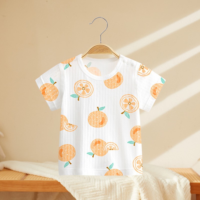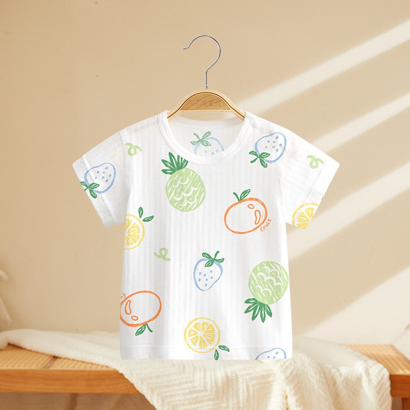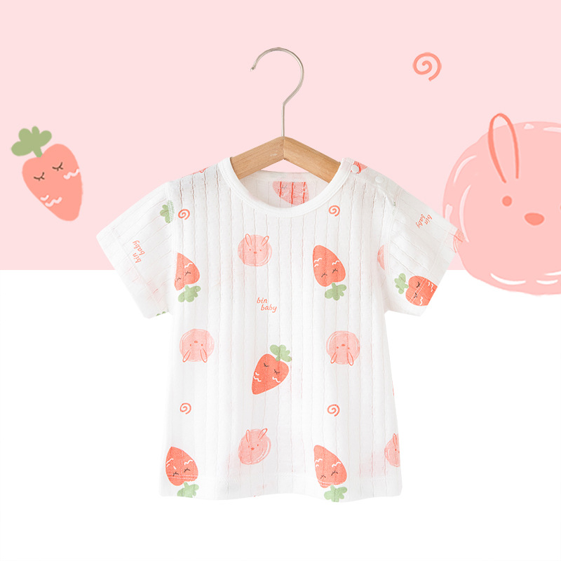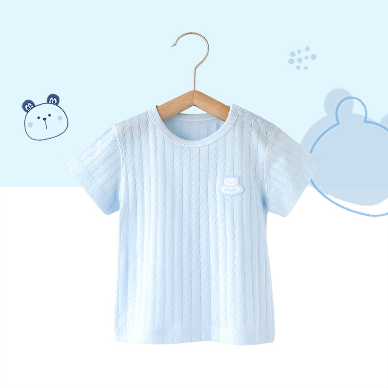 아기 반팔 티셔츠 여름 얇은 여성 아기 원피스 탑 순수한면 겉옷 남성 어린이 여름 착용 내면베이스스토어 가기