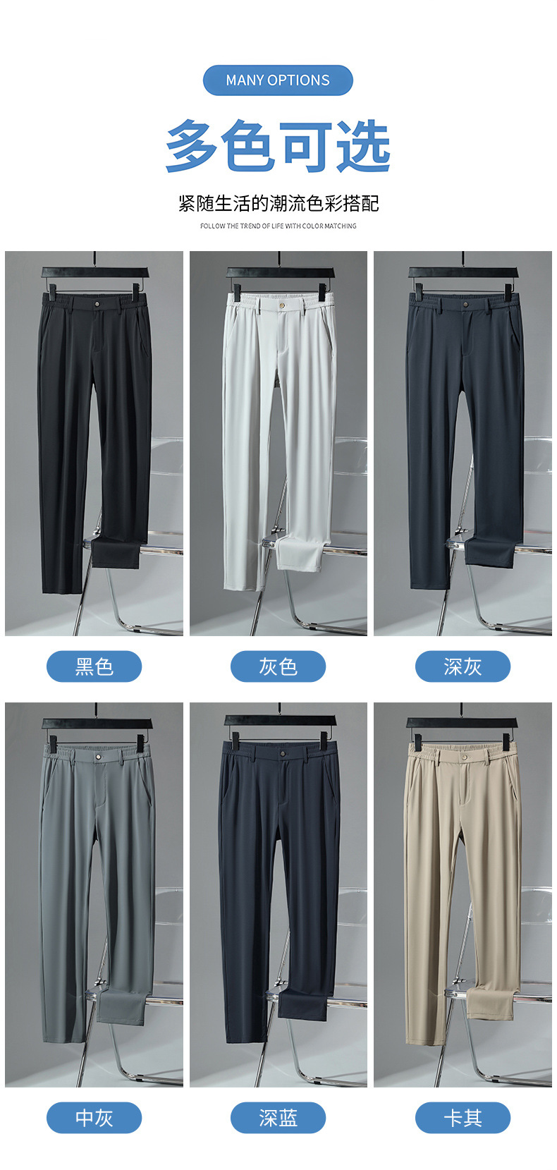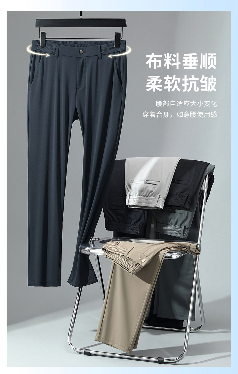 아이스 실크 바지 남성 여름 얇은 스트레치 고급 드레이핑 스트레이트 느슨한 비즈니스 캐주얼 바지 플러스 사이즈 바지 남성스토어 가기