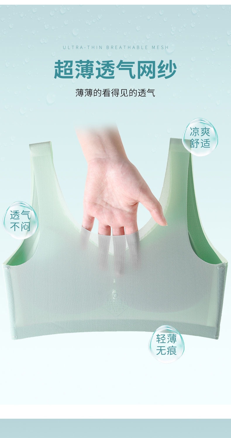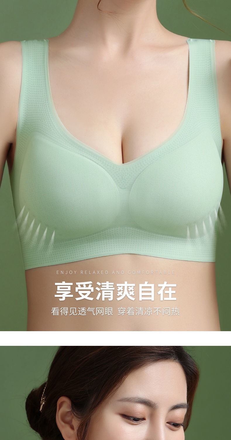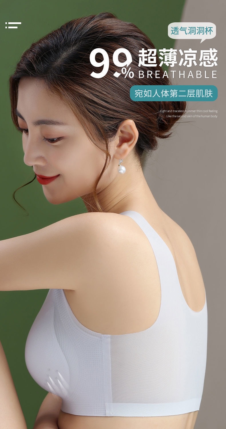 015 # 메쉬 통기성 홀 컵 초박형 원활한 아이스 실크 속옷 여성의 무선 플러스 사이즈 브래지어 작은 가슴을 밀어