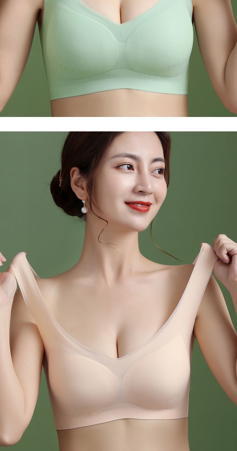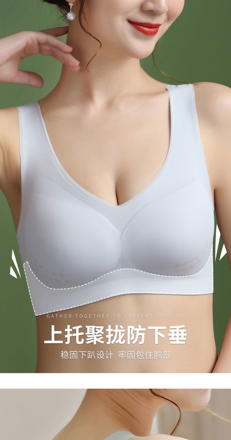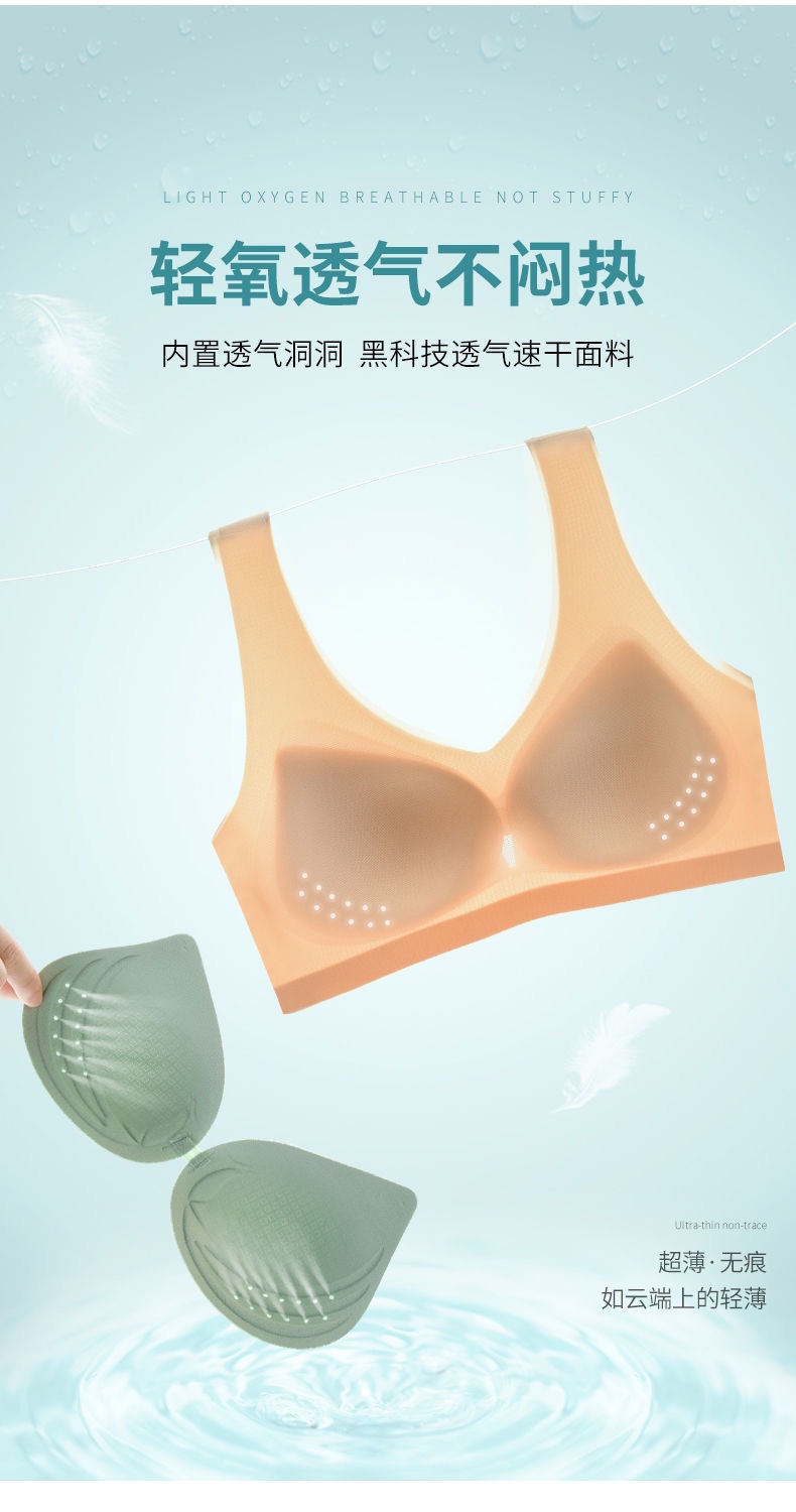 015 # 메쉬 통기성 홀 컵 초박형 원활한 아이스 실크 속옷 여성의 무선 플러스 사이즈 브래지어 작은 가슴을 밀어