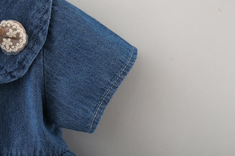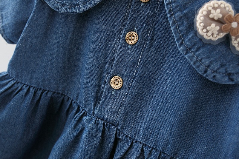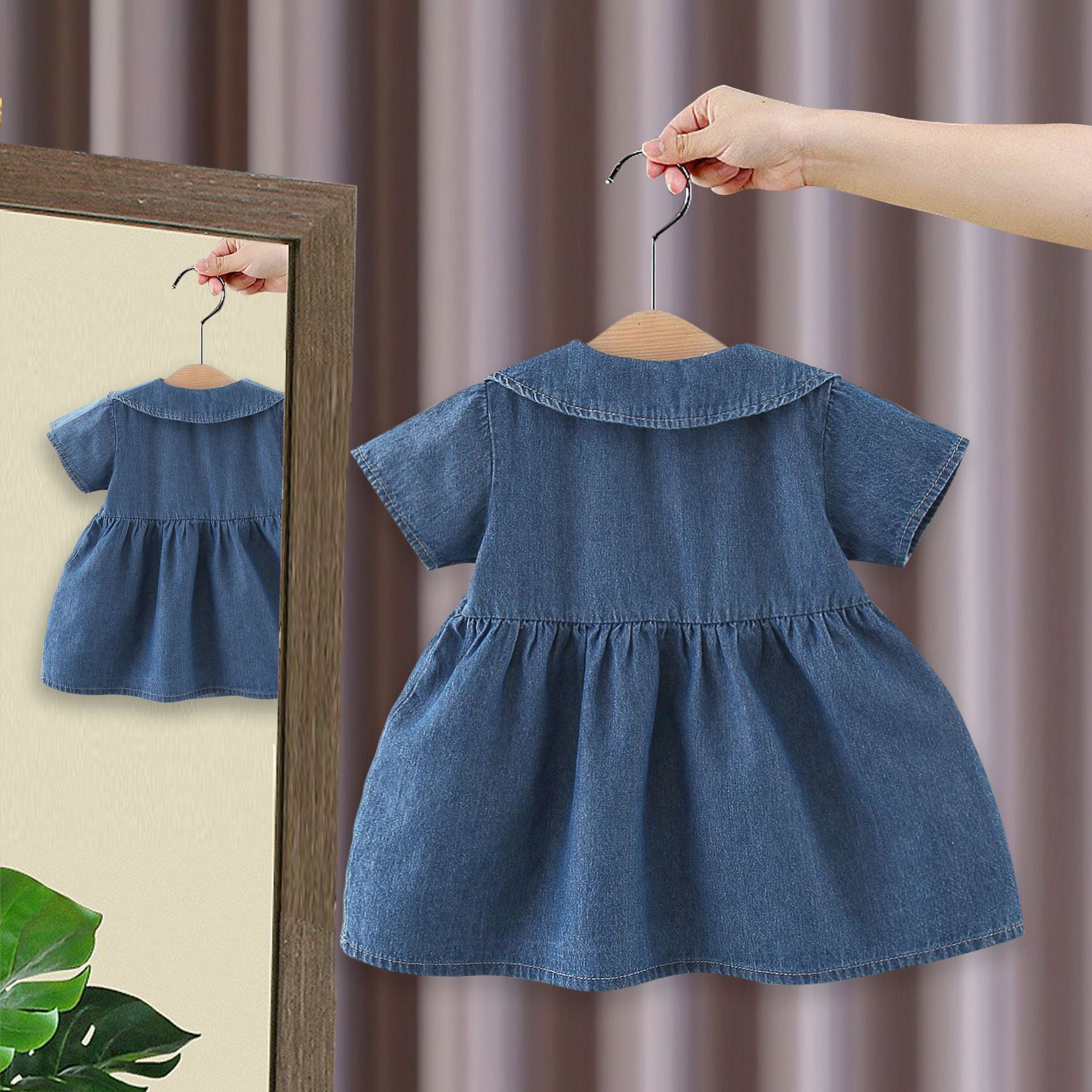 아동 의류 여름 공주 드레스 소녀 반팔 보우 칼라 데님 드레스 베이비 스타일 스커트 dropshipping 4599