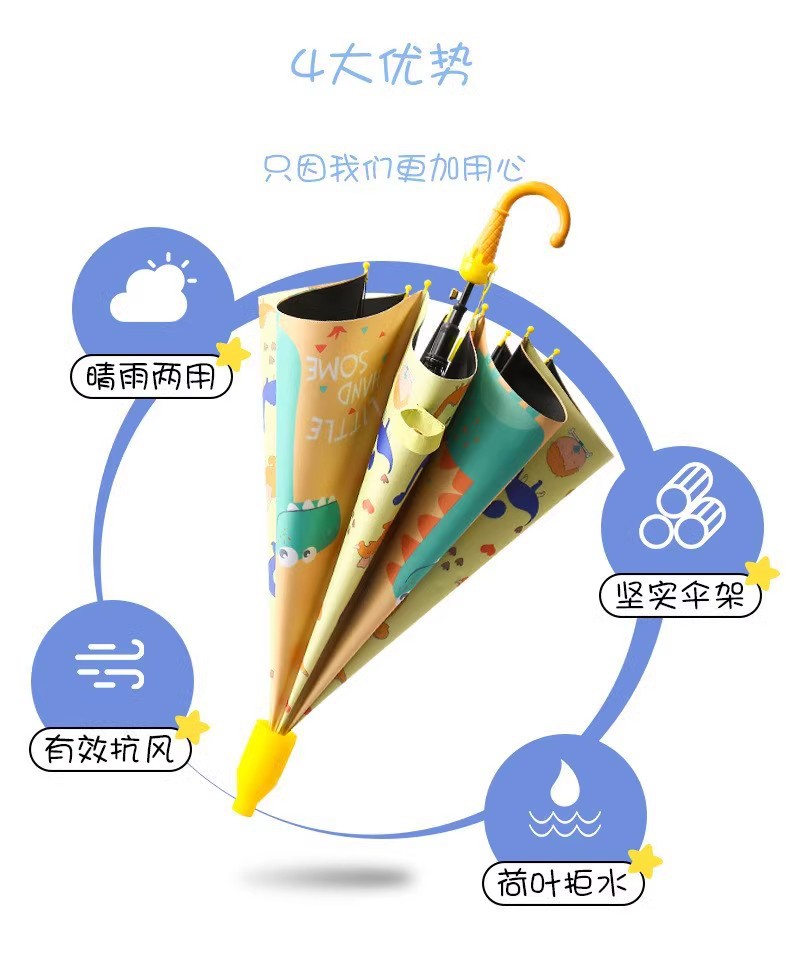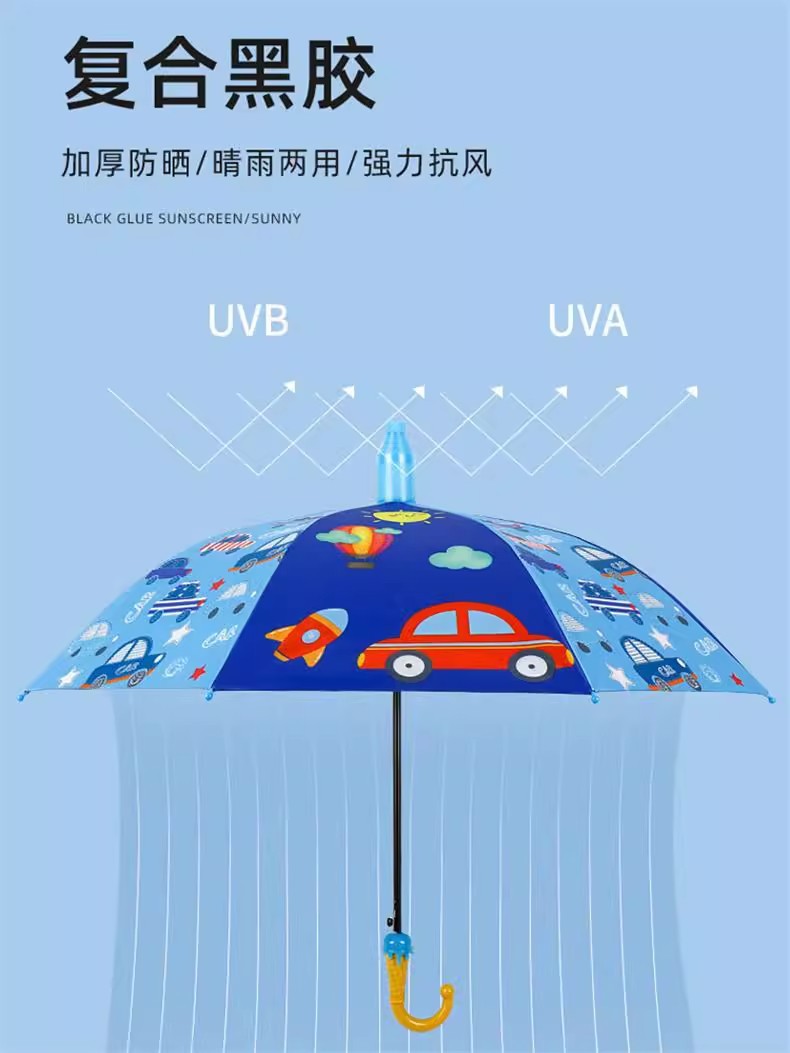 자동 어린이 우산 만화 완전 자동 우산 유치원 초등학생 검은 접착제 차양 우산 긴 손잡이 어린이 우산