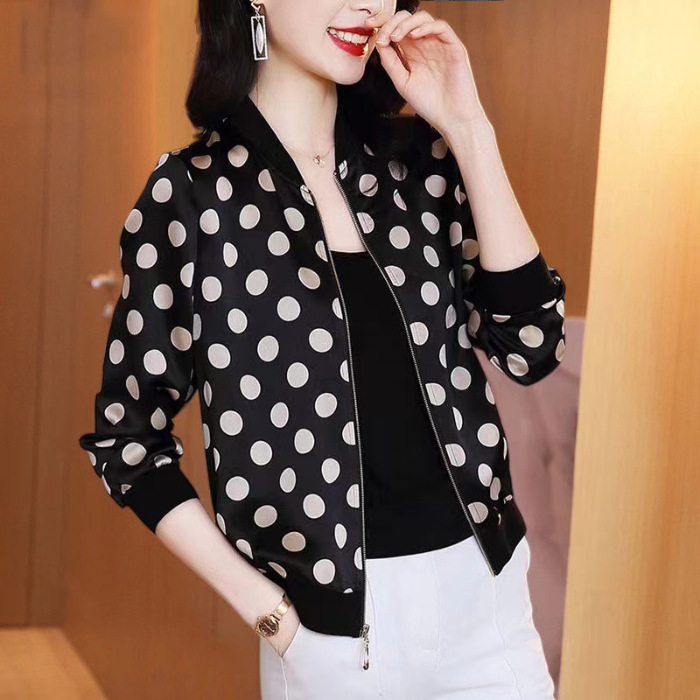 폴카 도트 짧은 선 스크린 재킷 여성 여름 한국 스타일 2024 새로운 느슨한 재킷 긴 소매 우아한 재킷