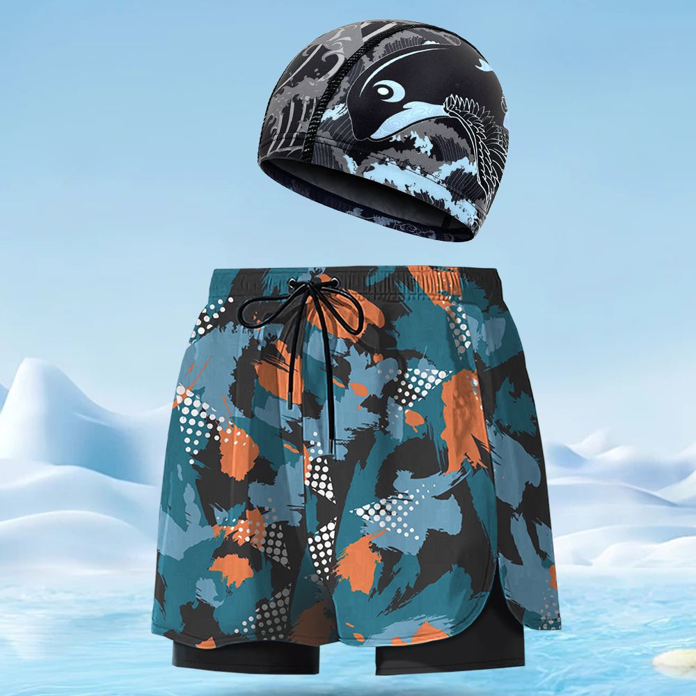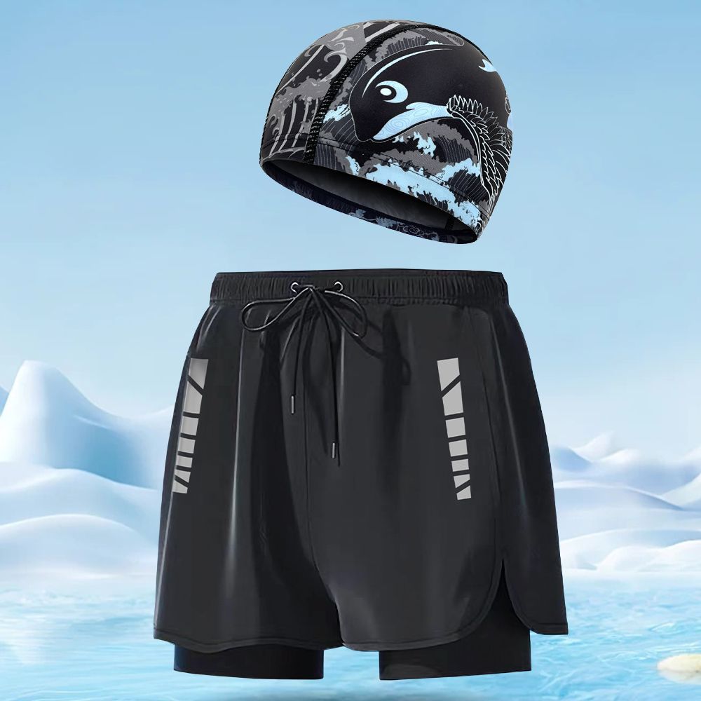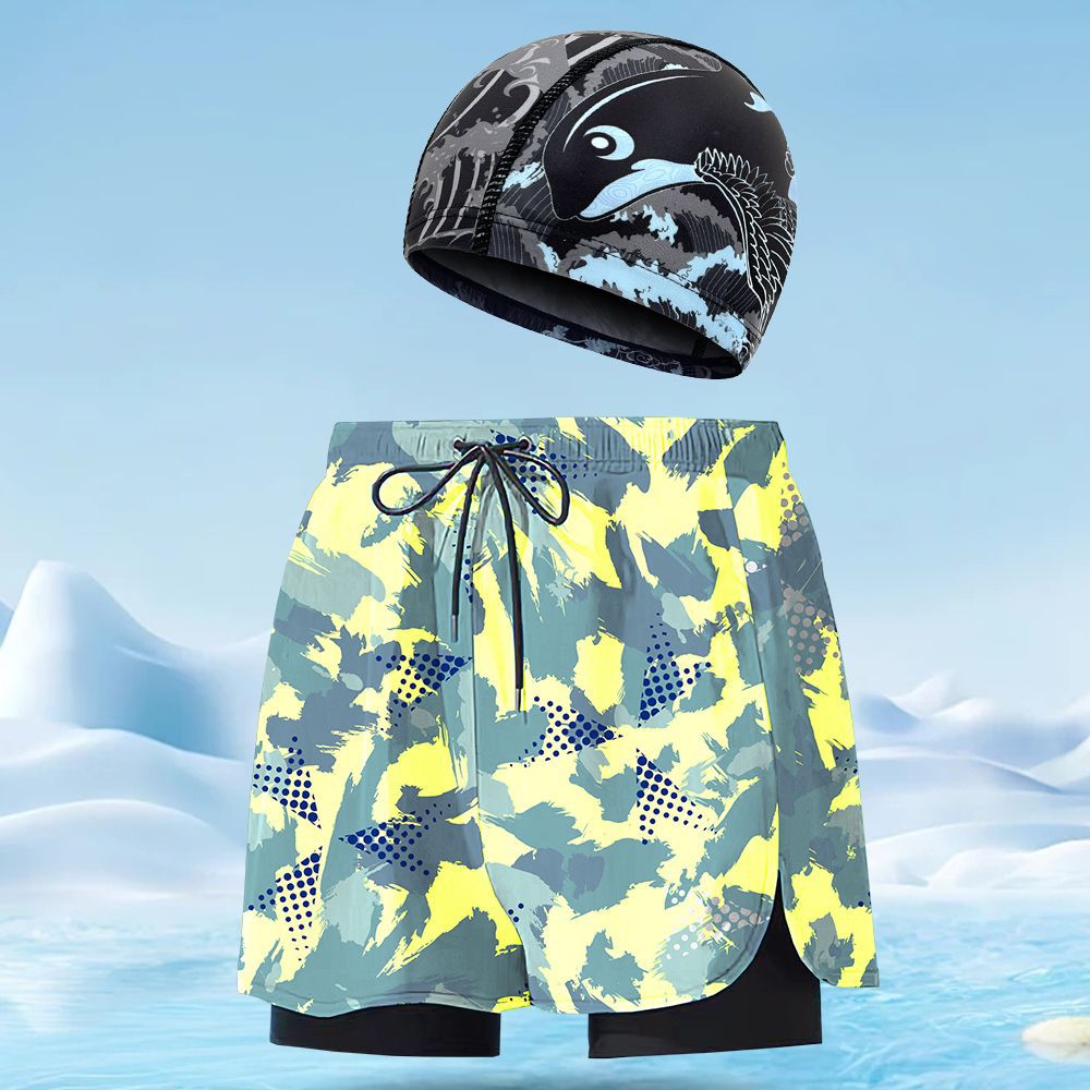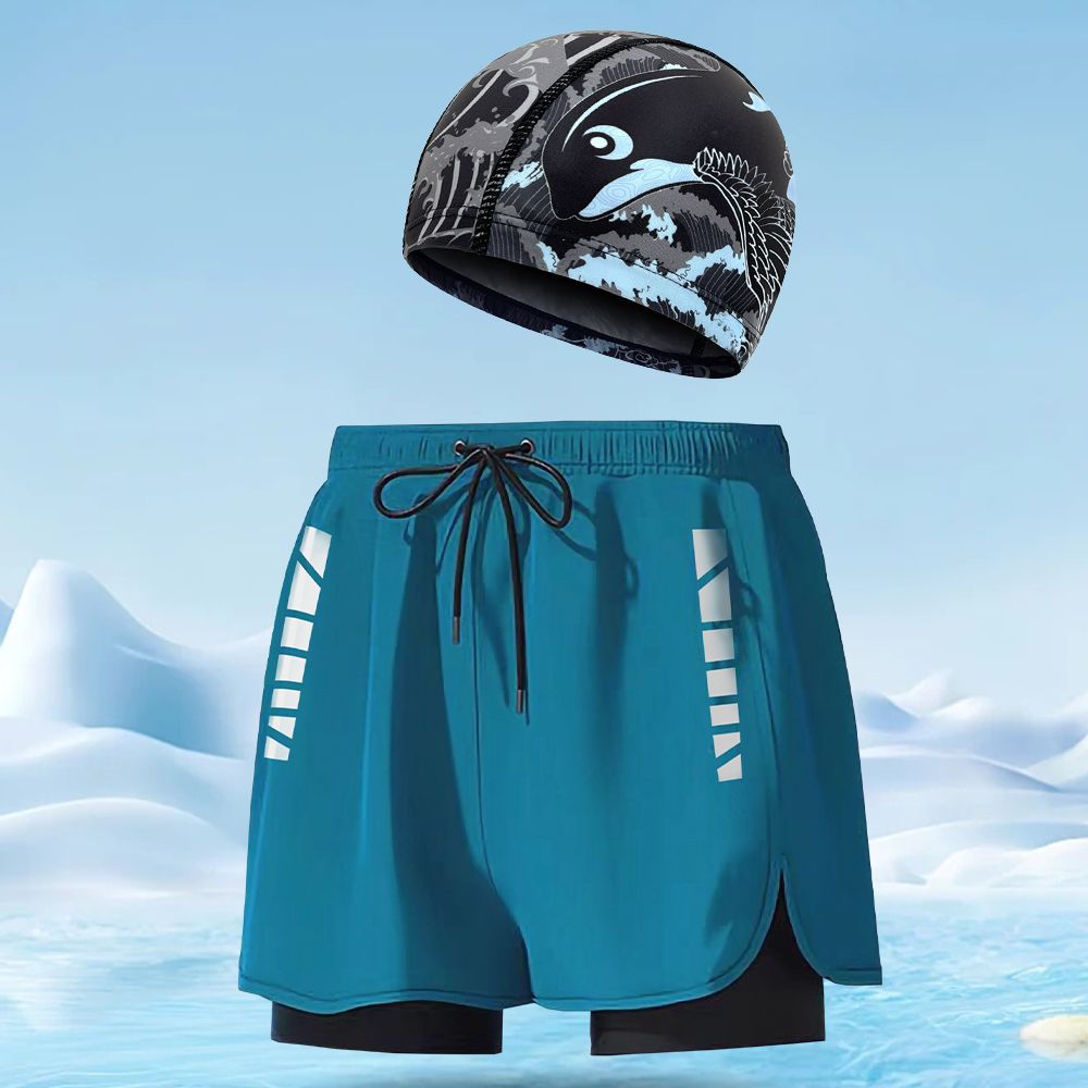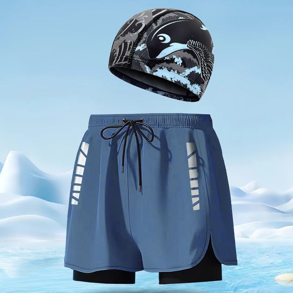수영 트렁크 남자의 통기성 느슨한 빠른 건조 남자 수영 트렁크 수영 모자 세트 비치 바지 온천과 대형 수영 트렁크 도매스토어 가기
