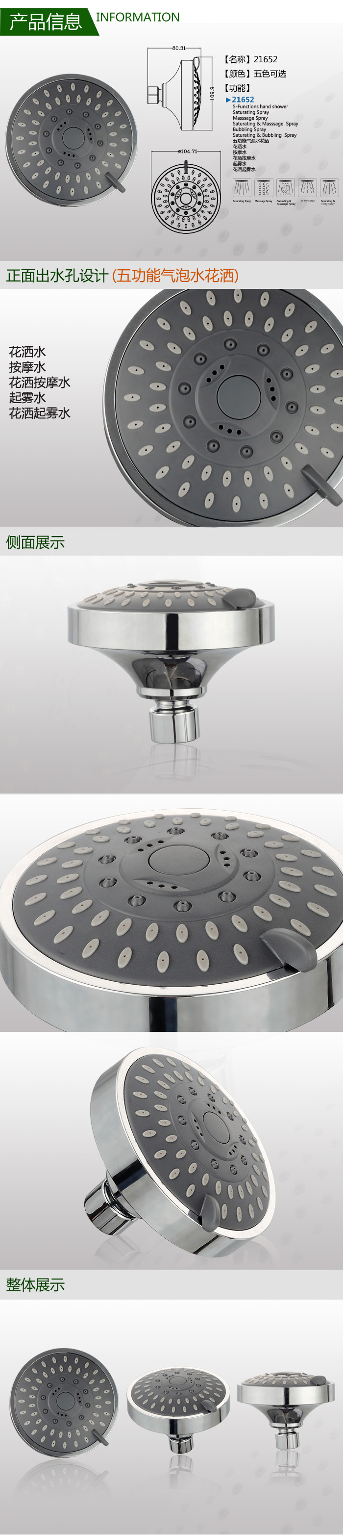 Cross-Border American 4 인치 숨겨진 5 기어 물 절약 소형 탑 스프레이 샤워 헤드 목욕탕 호텔 샤워 노즐 도매