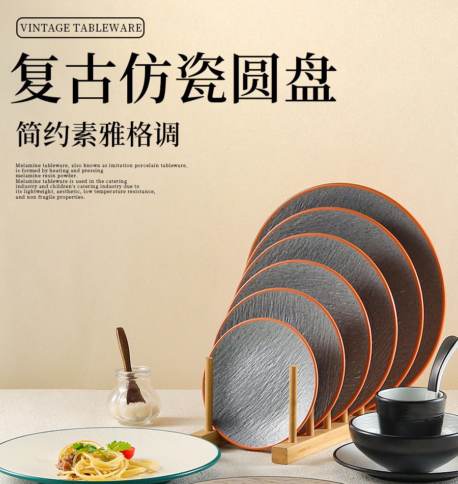 멜라민 플레이트 일본 식기 상업 플라스틱 디스크 도자기 빈티지 냄비 접시 창조적 인 접시 바베큐 접시스토어 가기