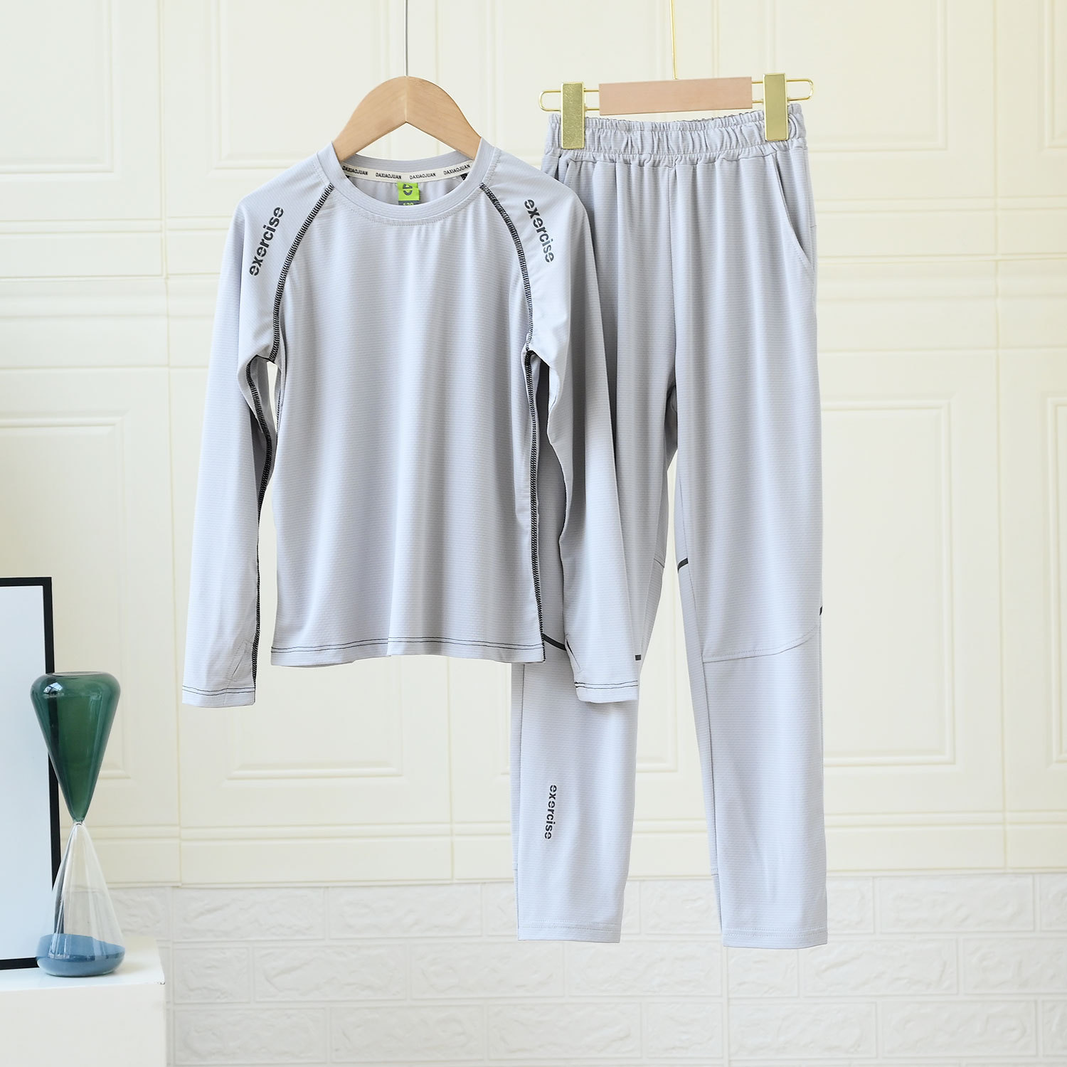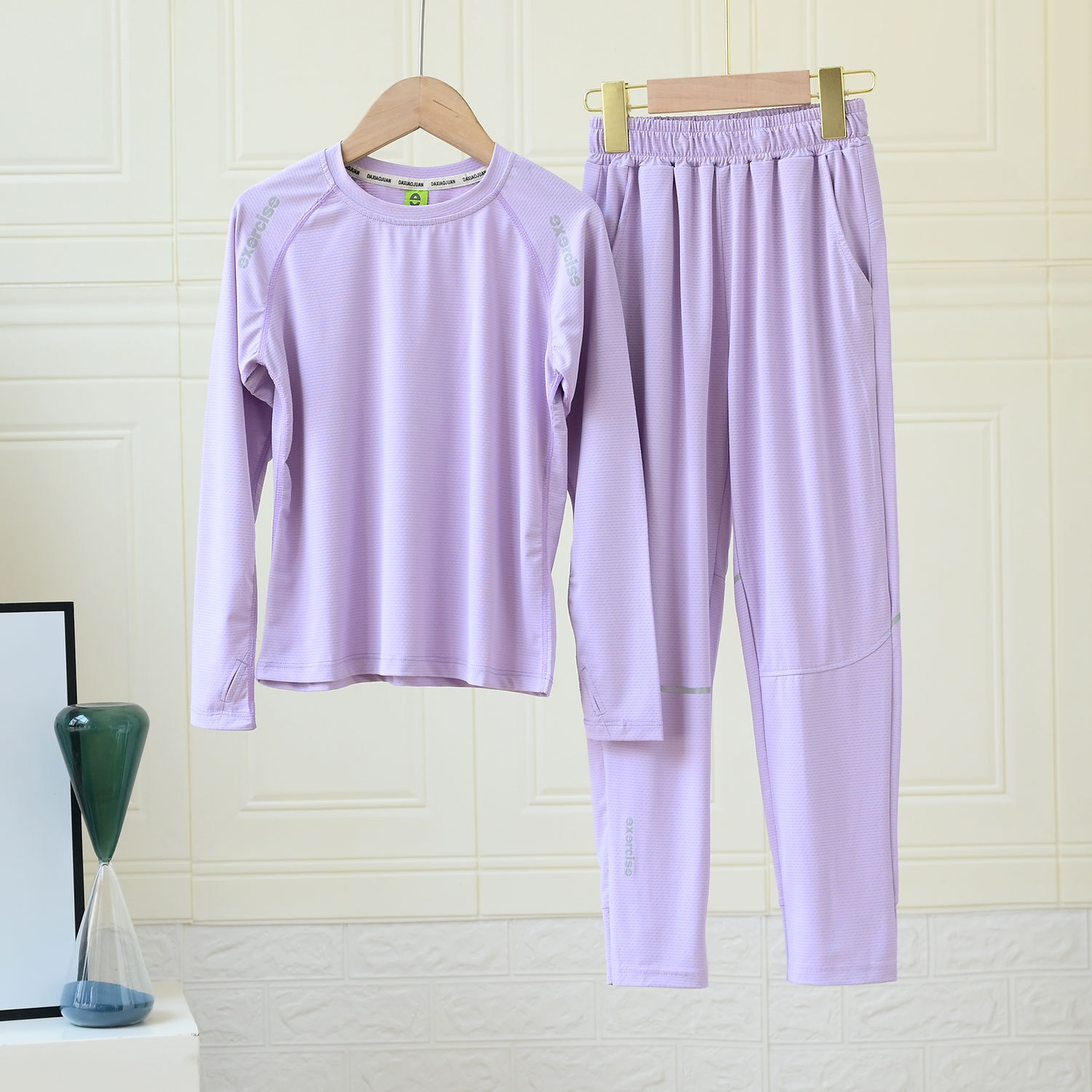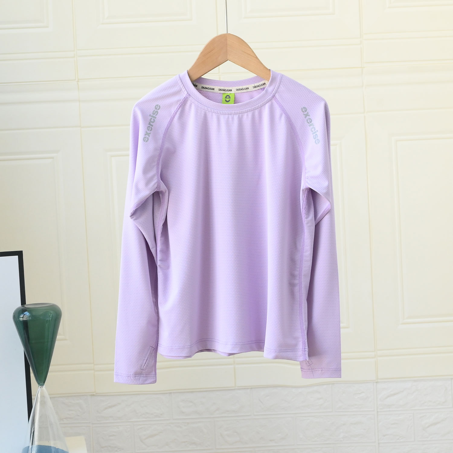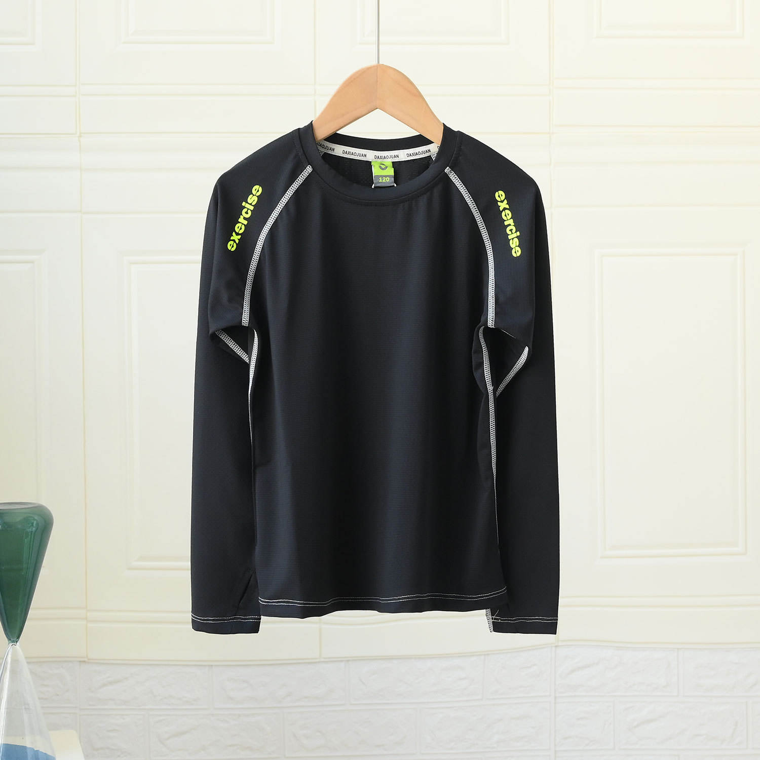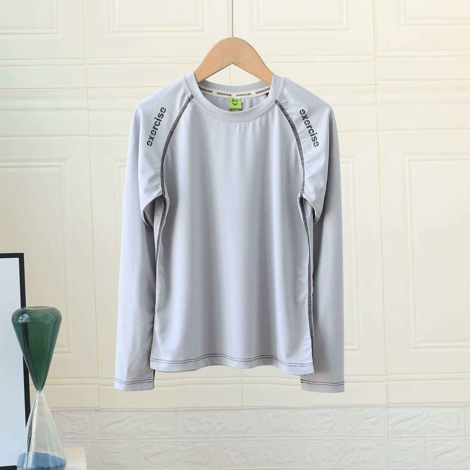봄과 여름 소년 둥근 목 티셔츠 소녀 엄지 버클 태양 보호 의류 빠른 건조 옷 어린이 야외 훈련 운동복