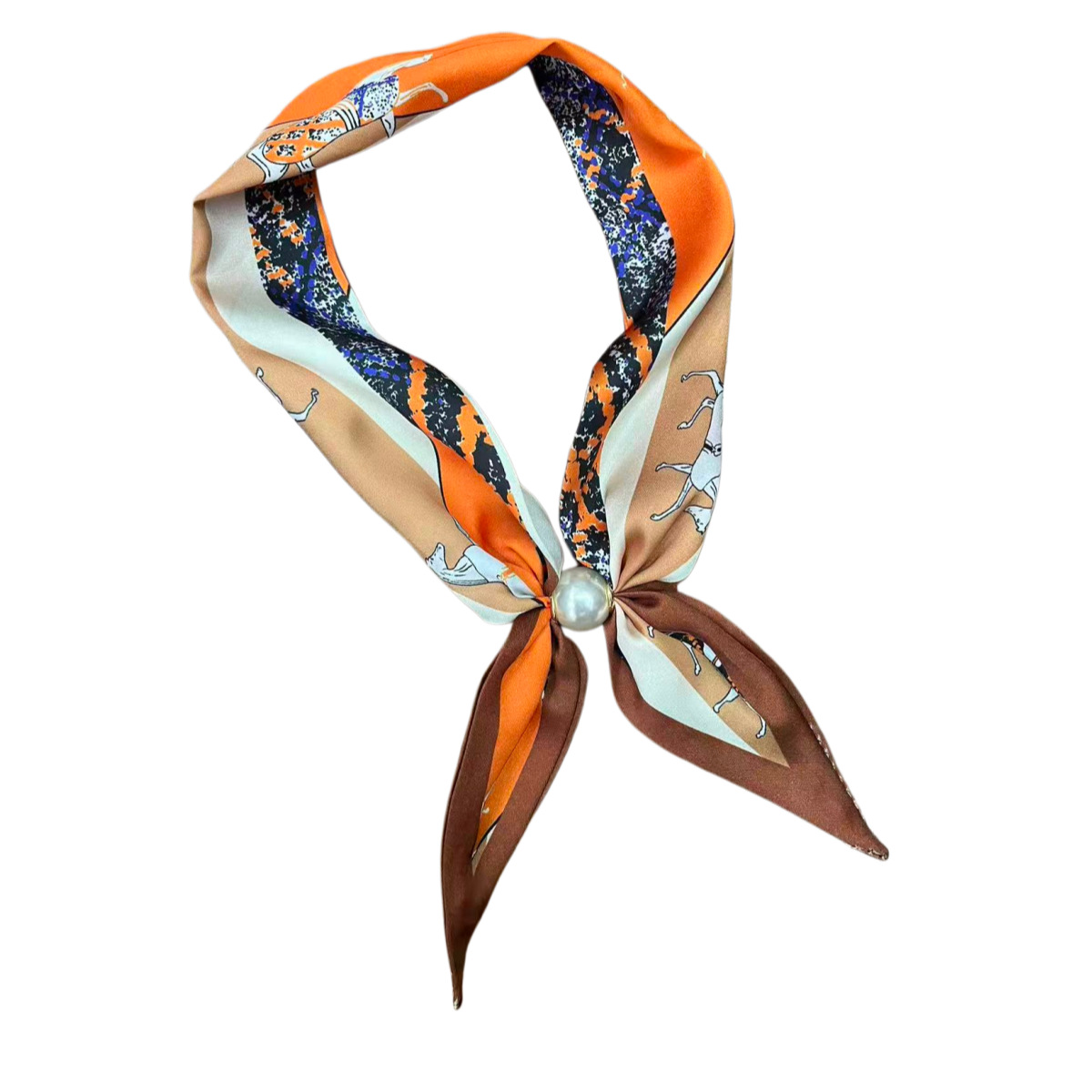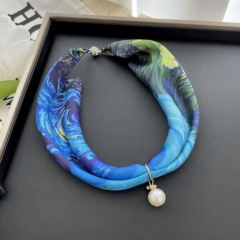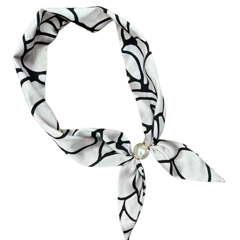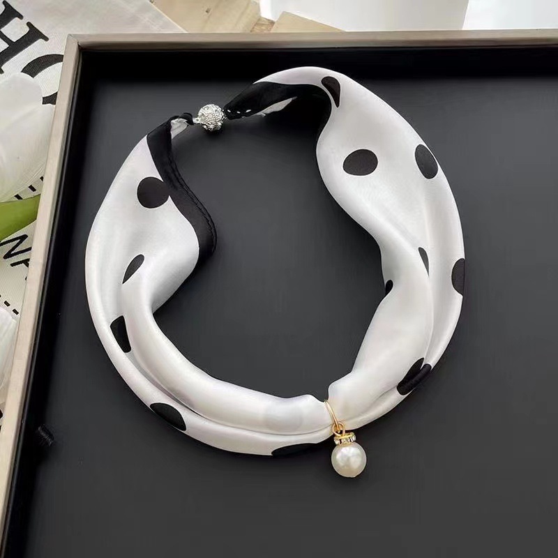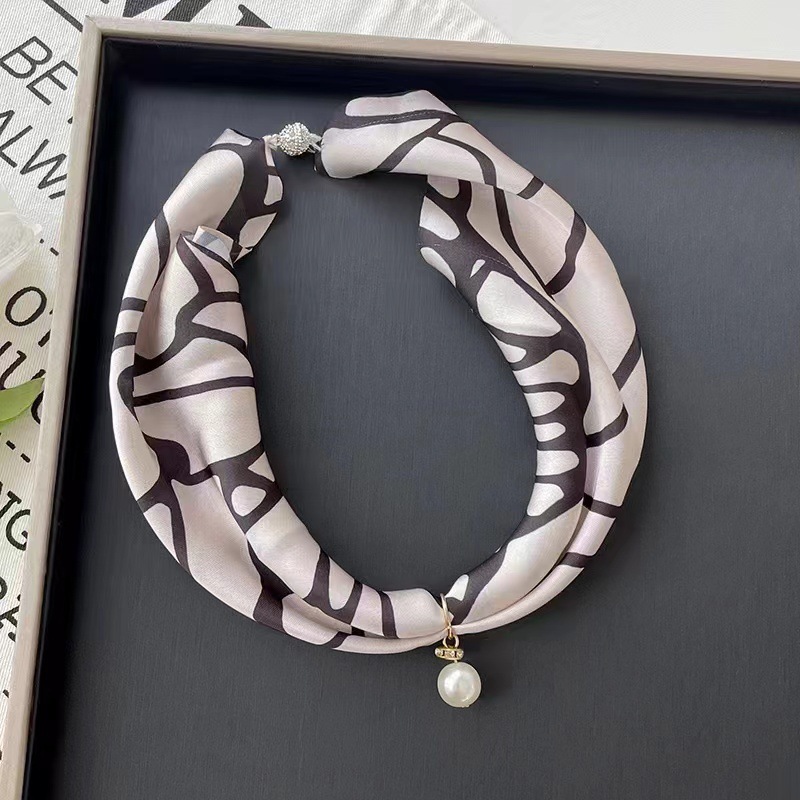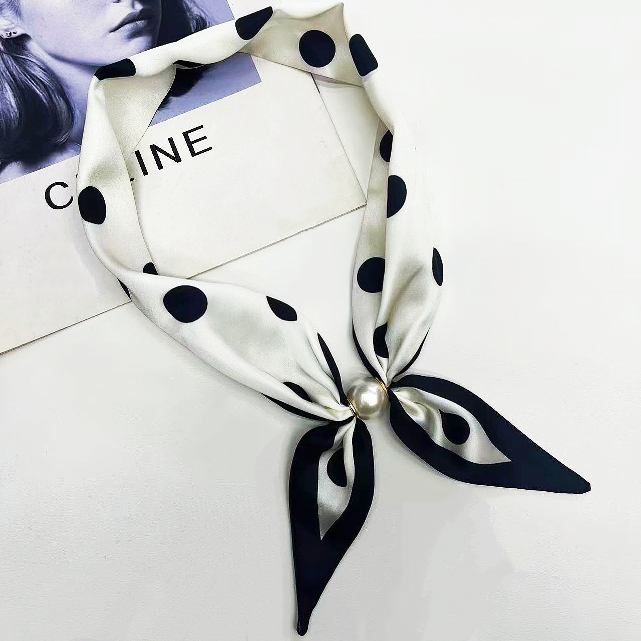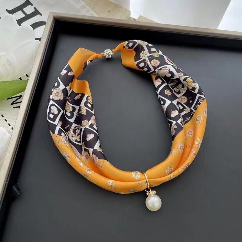 여름 얇은 한국 스타일 작은 스카프, 모조 실크 프린트, 여성용 다양한 작은 스카프, 진주 펜던트 목걸이, 게으른 실크 스카프스토어 가기