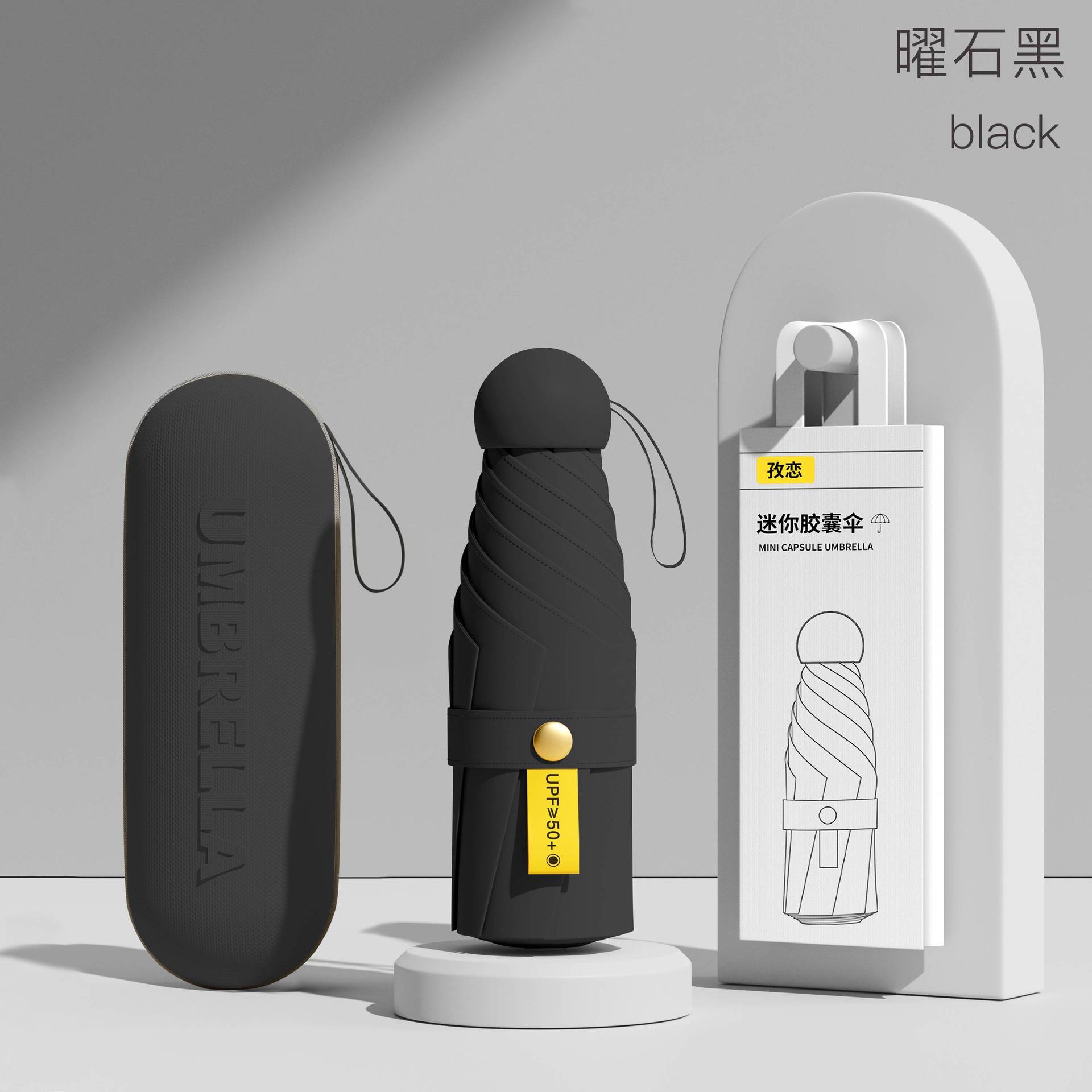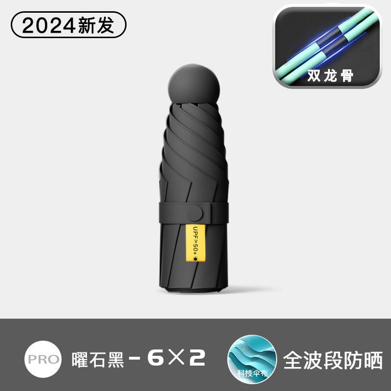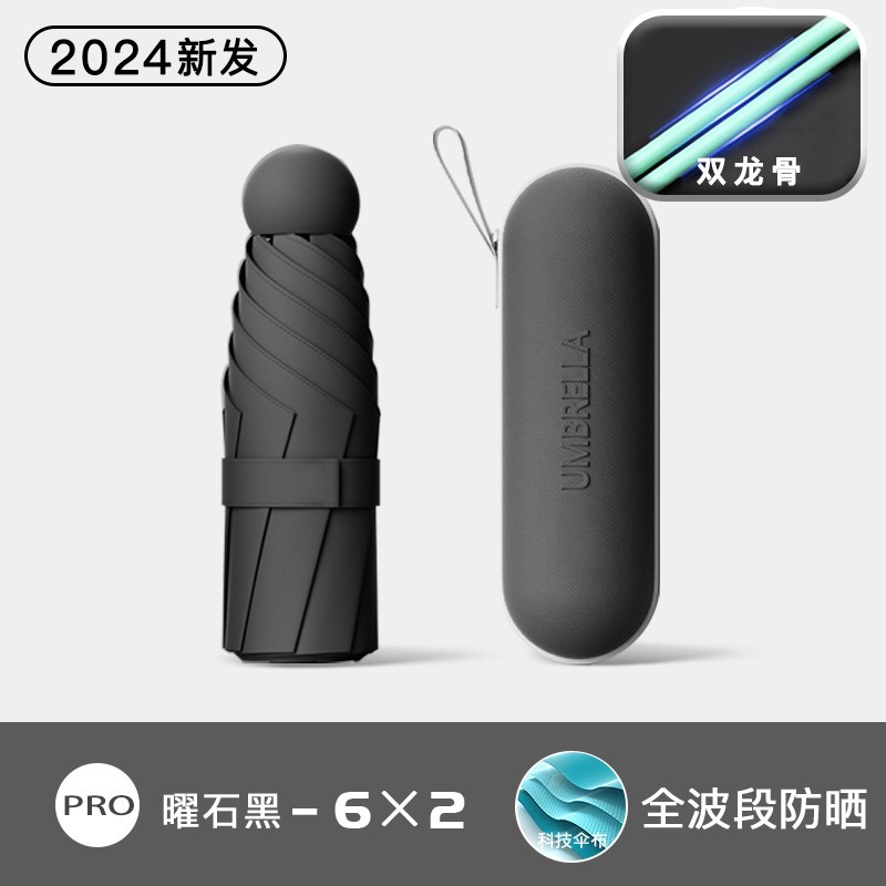 • 6 뼈-두꺼운 우산 뼈 + 캡슐 상자]-돌 블랙