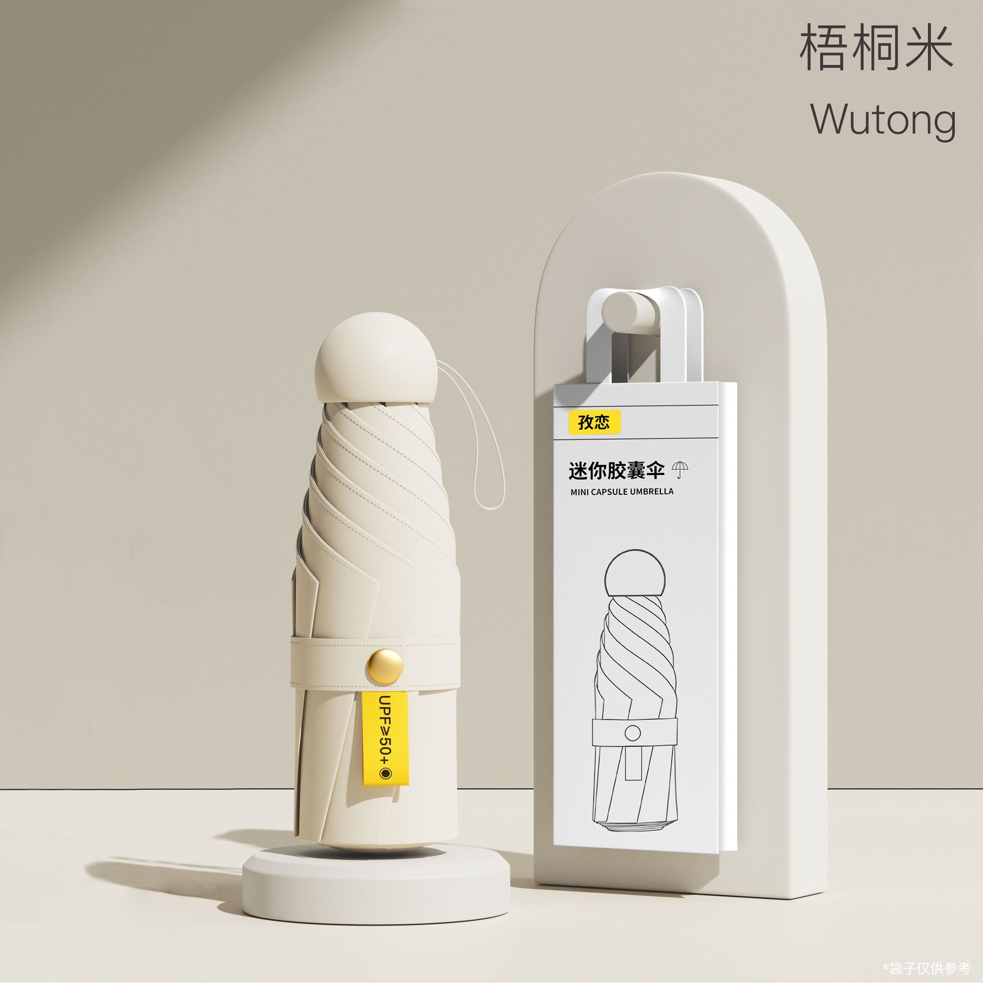 • 6 뼈-두꺼운 우산 뼈 + 캡슐 상자]-밝은 베이지
