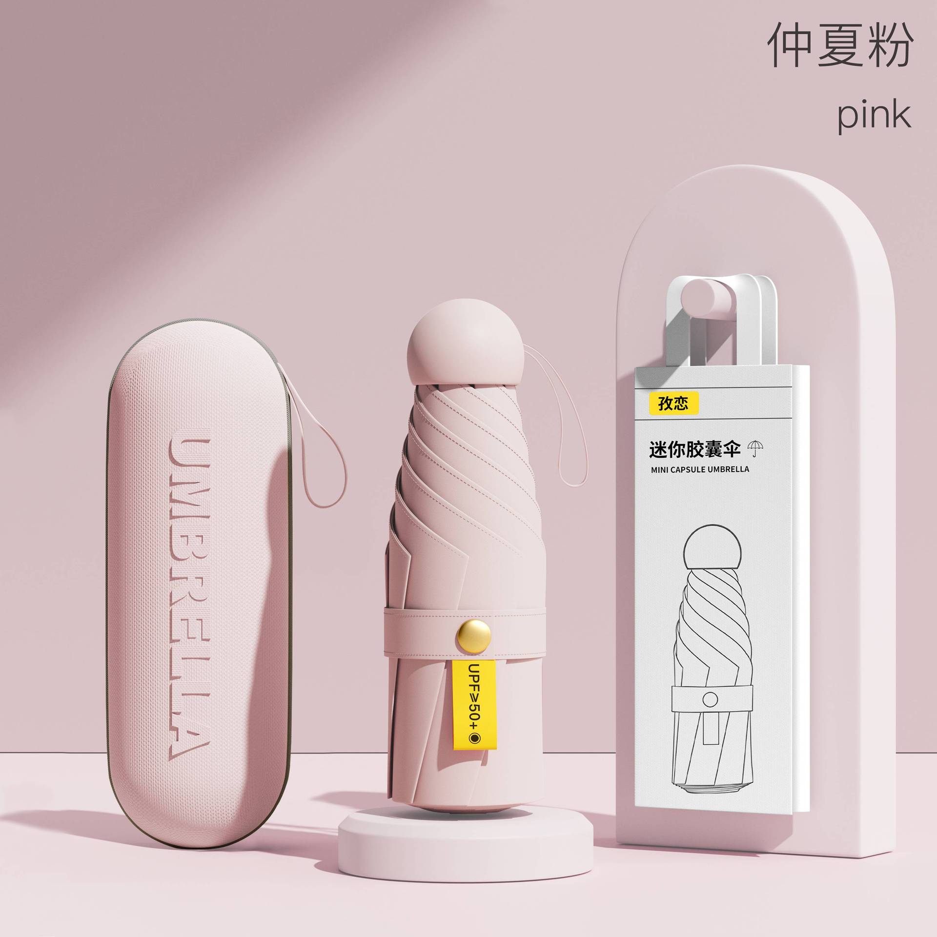 • 6 뼈-두꺼운 우산 뼈 + 캡슐 상자]-한여름 핑크