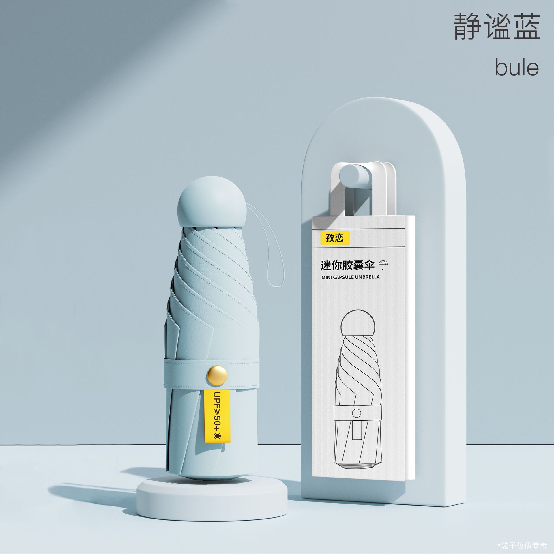 • 6 개의 뼈-두꺼운 우산 뼈 + 캡슐 상자]-라이트 블루