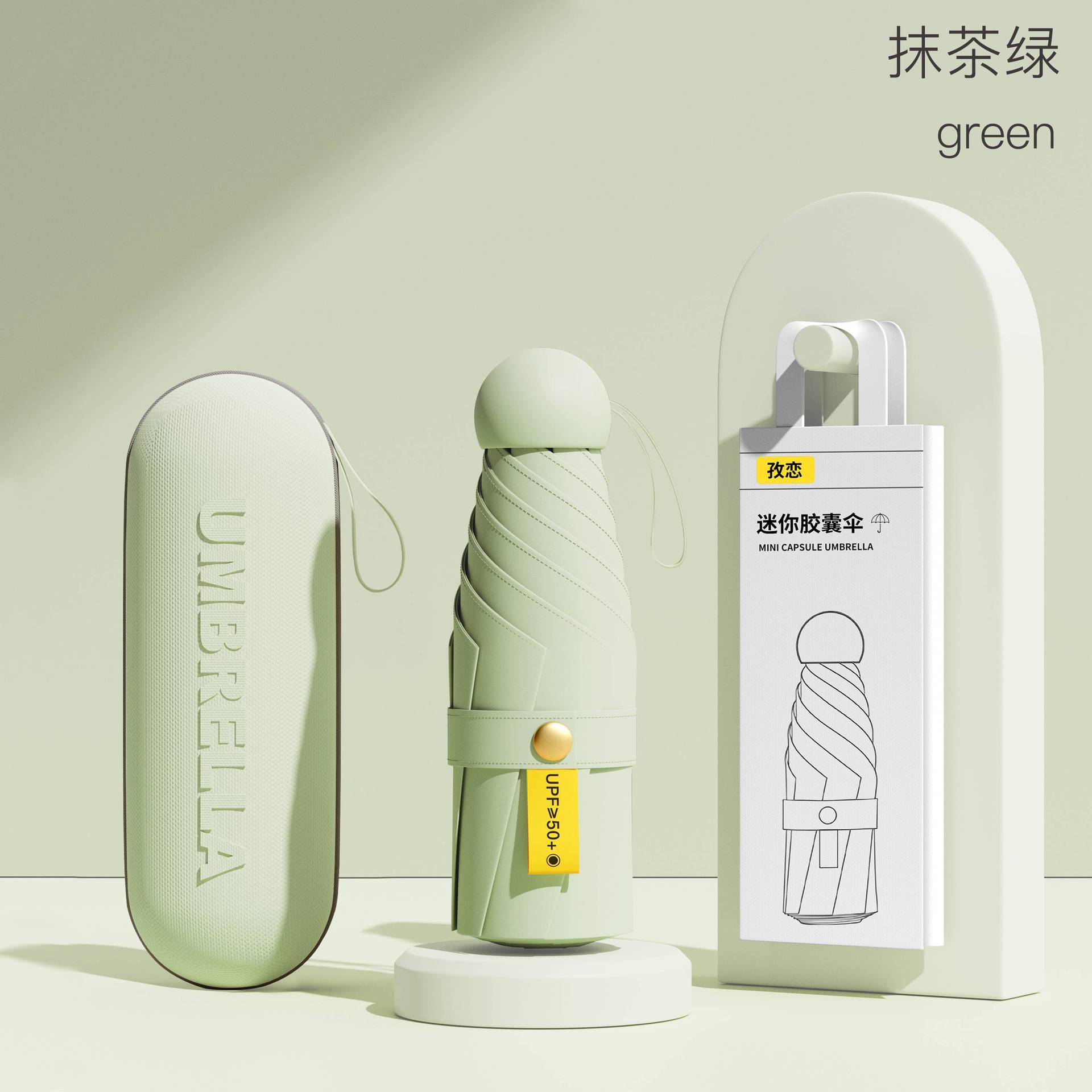 • 6 뼈-두꺼운 우산 뼈 + 캡슐 상자]-말차 그린