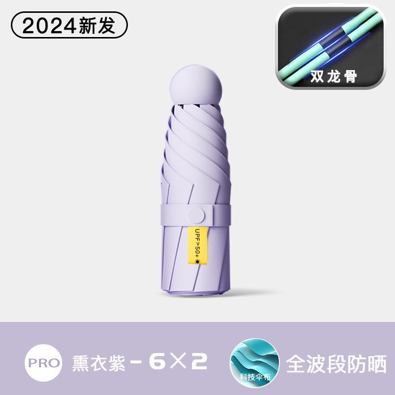 • 6 뼈-두꺼운 우산 뼈 + 캡슐 상자]-훈제 보라색