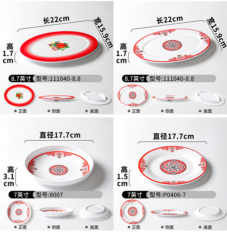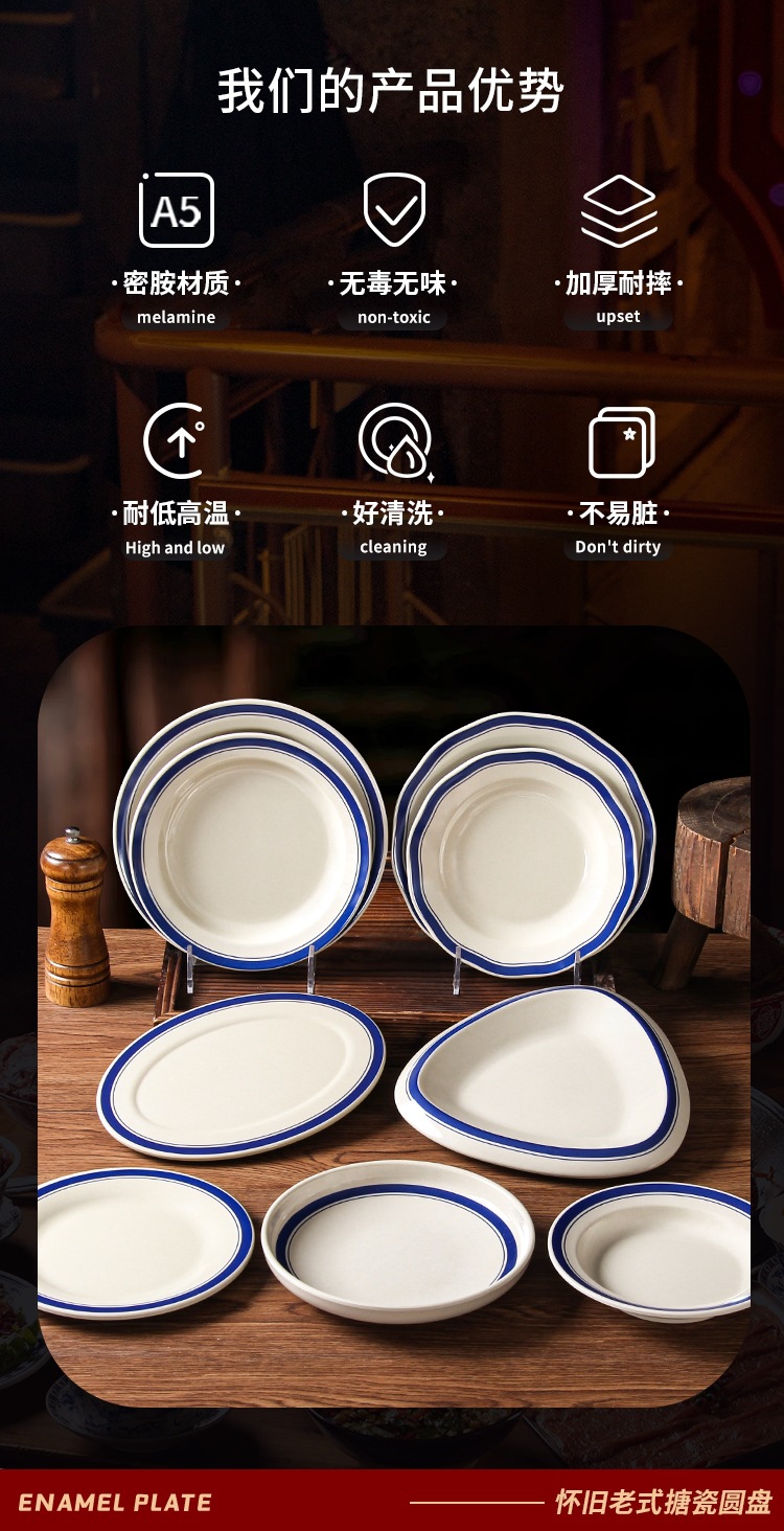 멜라민 식기 빈티지 플레이트 호텔 레스토랑 창조적 인 접시 상업 접시 식품 플레이트 플라스틱 중국 접시스토어 가기