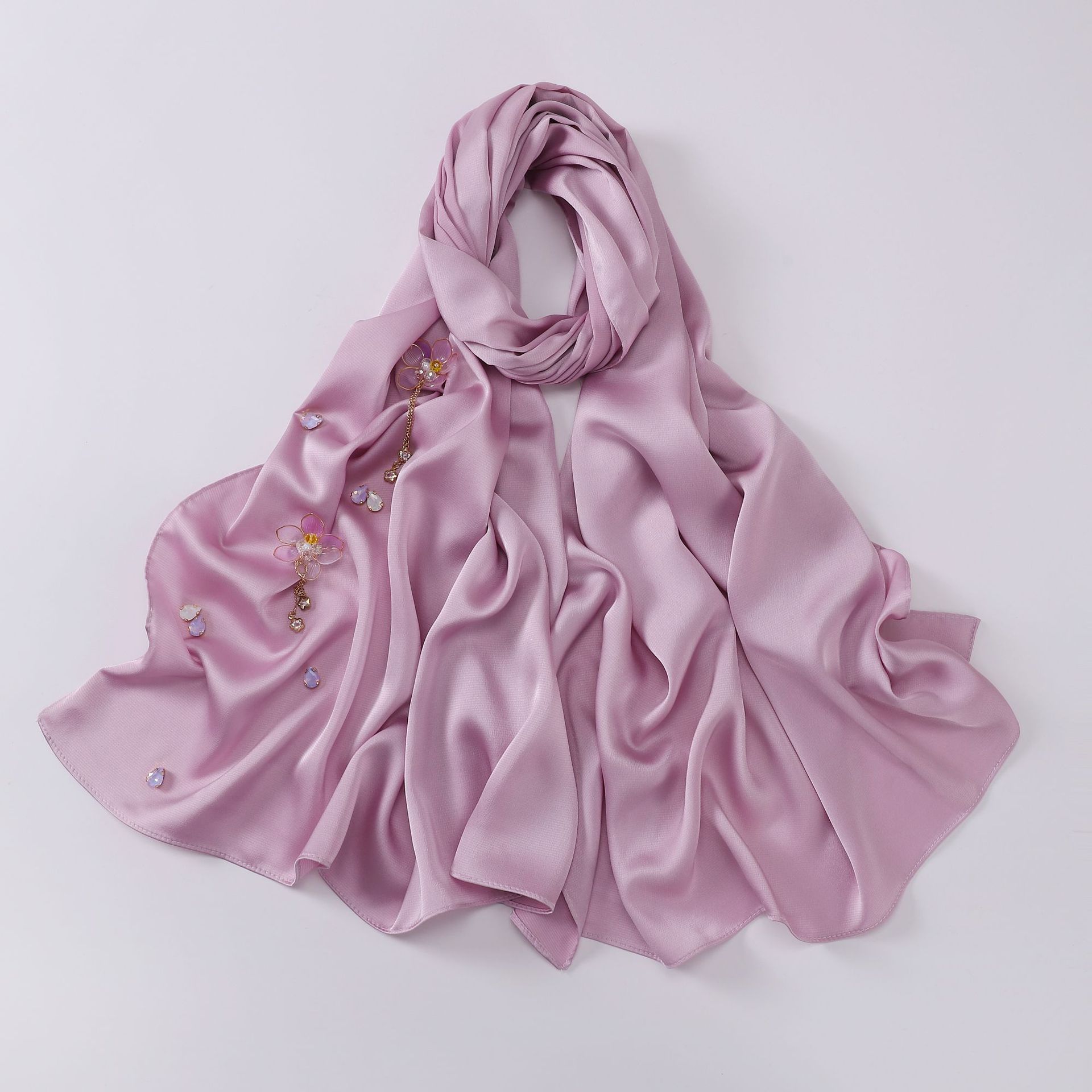 새로운 버블 쉬폰 중국 스타일 스카프 손으로 꿰매는 로터스 포인트 다이아몬드 후이 스카프 말레이시아 스카프 히잡
