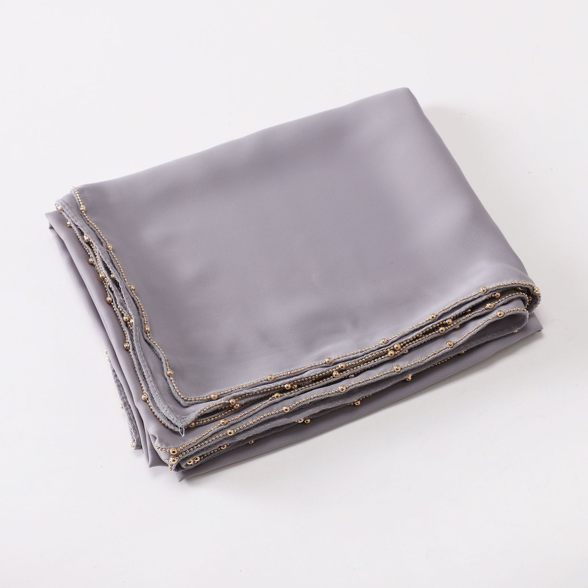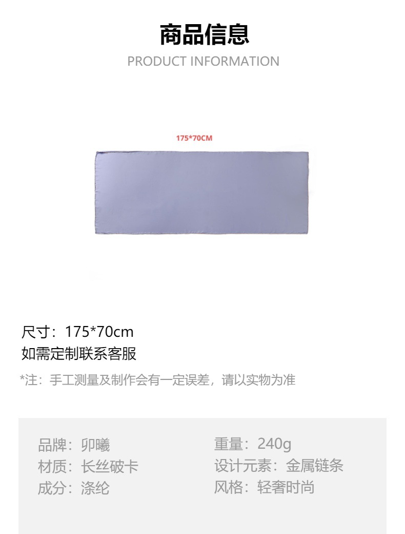 새로운 크로스 보더 순수 컬러 실크 같은 필라멘트 찢어진 금속 체인 긴 스카프 후이 거즈 스카프 말레이 스카프 히잡스토어 가기