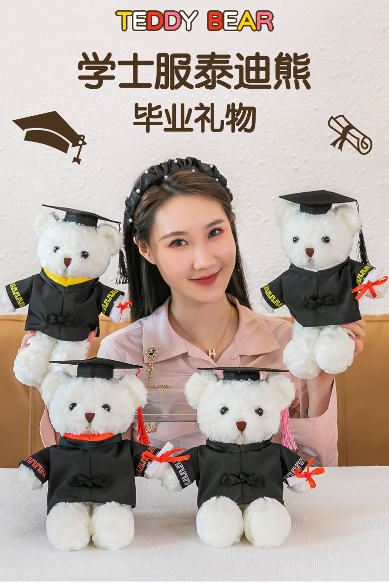 졸업 시즌 의사 모자 곰 봉제 장난감 인형 테디 베어 인형 총각 마스터 의류 기념 선물 로고스토어 가기