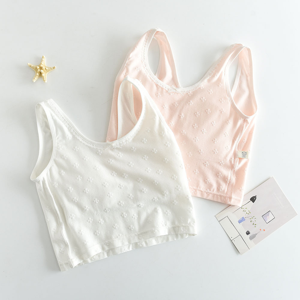 뷰티 백 소녀 브라 순수 코튼 큰 어린이 속옷 기본 조끼 청소년 개발 기간 가슴 패드로 충돌 방지 노출