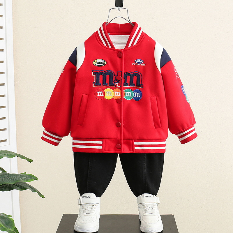 소년 봄과 가을 MM 오토바이 야구 유니폼 2024 봄 새 어린이 소년 대외 무역 아동복 베이비 코트